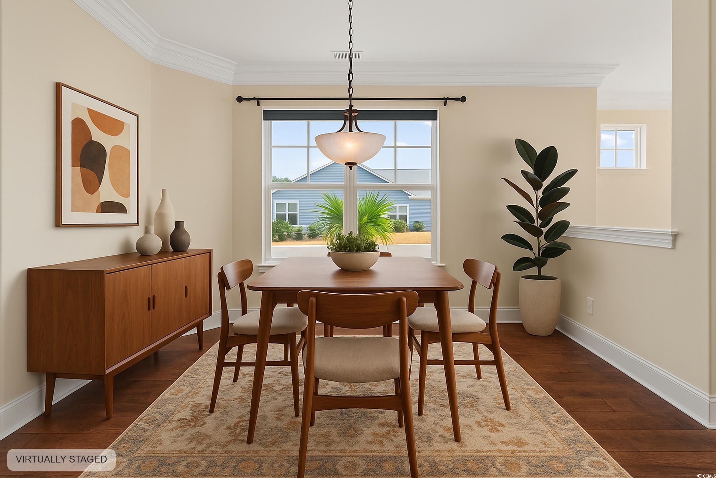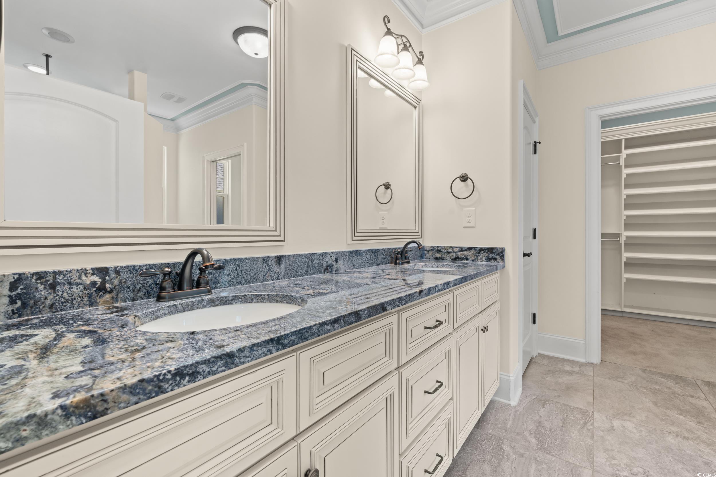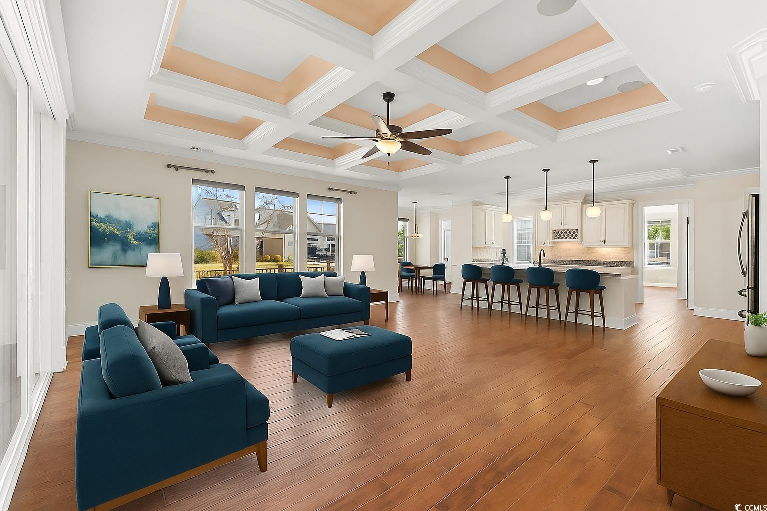 YOU'VE BEEN WAITING FOR THIS!!! Reintroduced with a fresh look and compelling new price, this stunning 5-bedroom, 4-bath home in the sought-after Waterbridge community combines craftsmanship, comfort, and community in perfect harmony. The newly painted interior and new photos highlight details like hardwood floors, coffered and tray ceilings, custom moldings, and sun-filled spaces. A welcoming front porch, stone accents, and wide L-shaped driveway set the stage for quality that continues inside. The gourmet kitchen features exotic Blue Bahia granite from Brazil, double ovens, pot filler, arabesque tile backsplash, and soft-close cabinetry flowing seamlessly into open living and dining areas and an expansive sunroom overlooking the fenced yard and wooded backdrop. The FIRST-FLOOR owner’s suite offers a tray ceiling with ambient lighting, sunroom access, and a spa-inspired ensuite with a zero-entry dual shower and custom California-style closet. Another main-level bedroom and full bath offer flexibility for guests or a home office. Upstairs includes two bedrooms, a full bath, and a large bonus room with ensuite—ideal as a SECONDARY SUITE or game room. Practical touches include a large laundry room, finished garage with epoxy flooring and built-in storage, irrigation system, and solar lighting. Waterbridge residents enjoy exceptional amenities including a resort-style pool with swim-up refreshment area, 24-hour fitness center, clubhouse, walking trails, and lakes for kayaking or paddleboarding - all just minutes from Carolina Forest shopping, dining, golf, and Myrtle Beach’s shoreline. Beautifully maintained and move-in ready, this home offers luxury living and lasting value. Schedule your private showing TODAY!