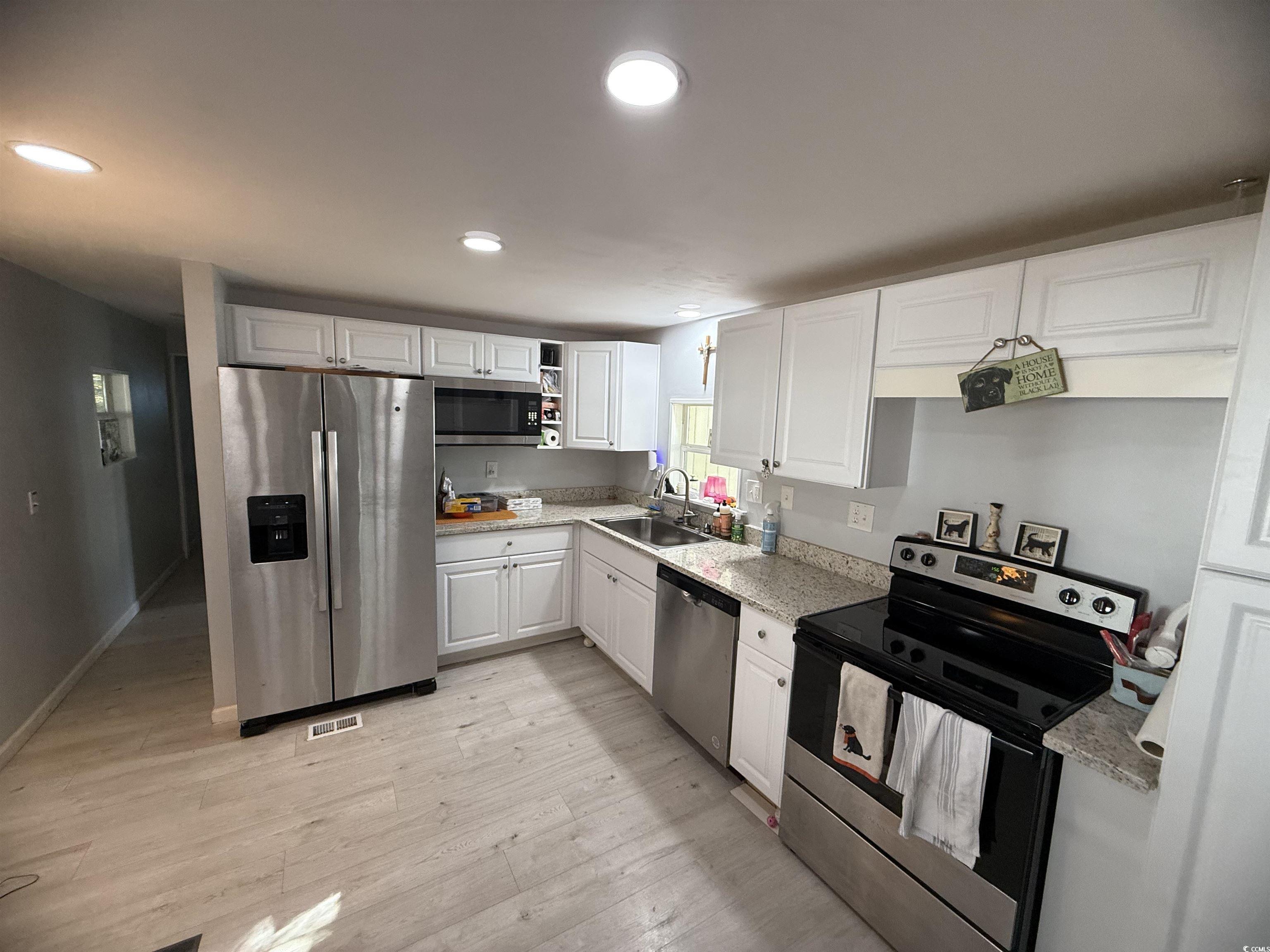 Welcome to Ocean Pines a highly sought after over 55 community, just a short golf cart ride to Garden City beach and pier. This is cute home was totally renovated in 2023 featuring a NEW HVAC, NEW HOTWATER HEATER, NEW STAINLESS STEEL APPLIANCES, NEW KITCHEN CABINETS WITH GRANITE COUNTERS, NEW LVP FLOORING, NEW ROOF, NEW WINDOWS, FRESH NEUTRAL PAINT, NEW DOUBLE SINK,VANITY, WALK IN SHOWER.. Ocean pines is a true golf cart community with a host of amenities, two swimming pools, two club houses, an indoor gym, pool table, bocce ball court ,cornhole hole set up, and planned activities throughout the year. Come take a look at this cute little gem in Ocean Pines!