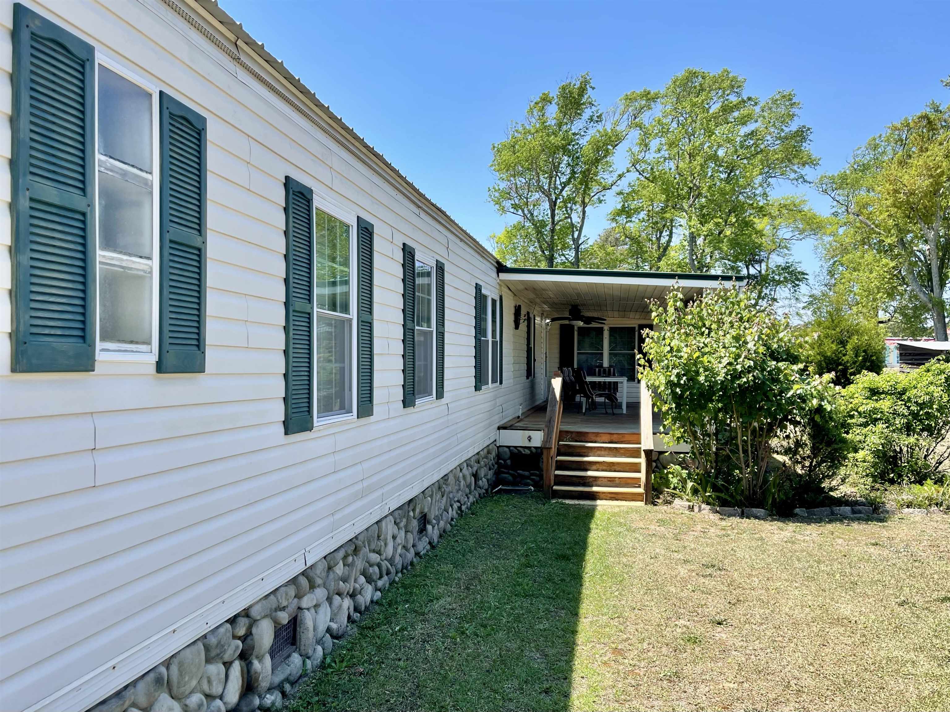This home is a 2 bedroom manufactured home with two add-on addition's that present nicely as a spacious 3 bedroom property. The additions include additional a additional Bedroom space on front and spacious Bonus room on the rear. Being just minutes to the Holden Beach area this home could be your primary home or a local beach getaway. Located on a spacious double size lot, this property allows plenty of room to enjoy the outdoors, future growth opportunities, or as your primary or secondary home. The interior features laminate and tile flooring, large primary bedroom with fully tiled walk-in style shower, roomy eat-in kitchen dining room combo and entryway desk area. The exterior enjoys the double lot and large front covered deck to enjoy the outdoor space as well as multiple storage buildings.
