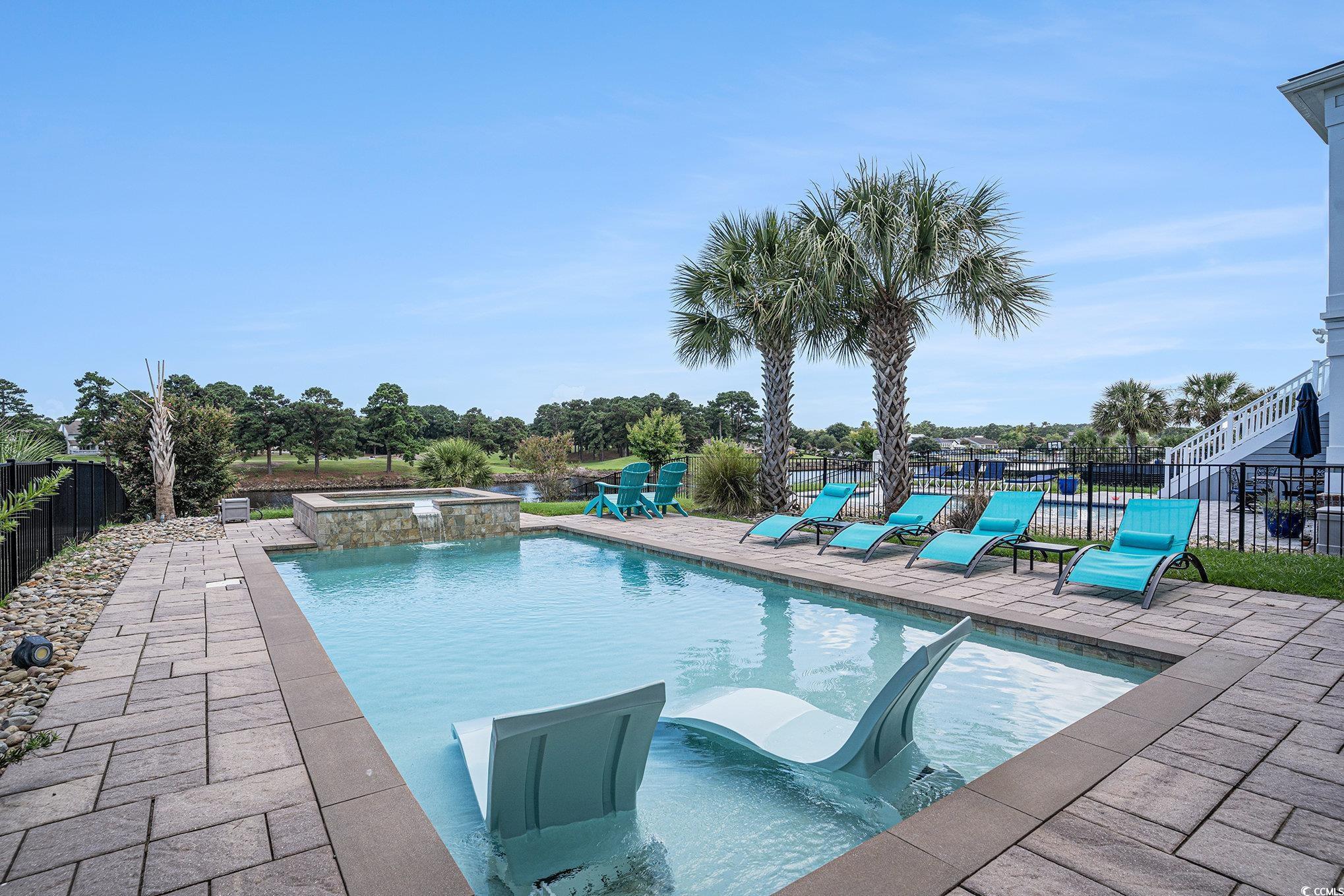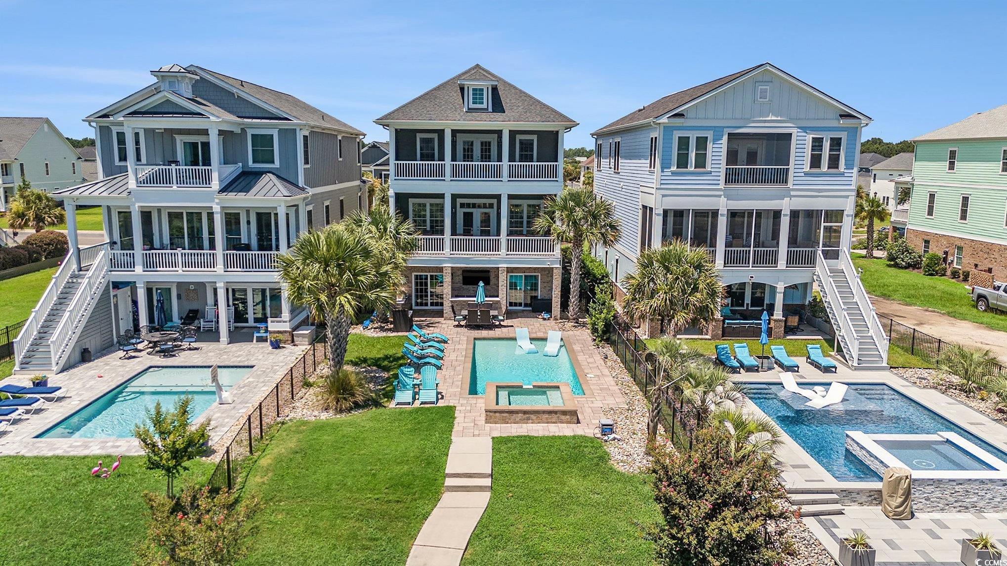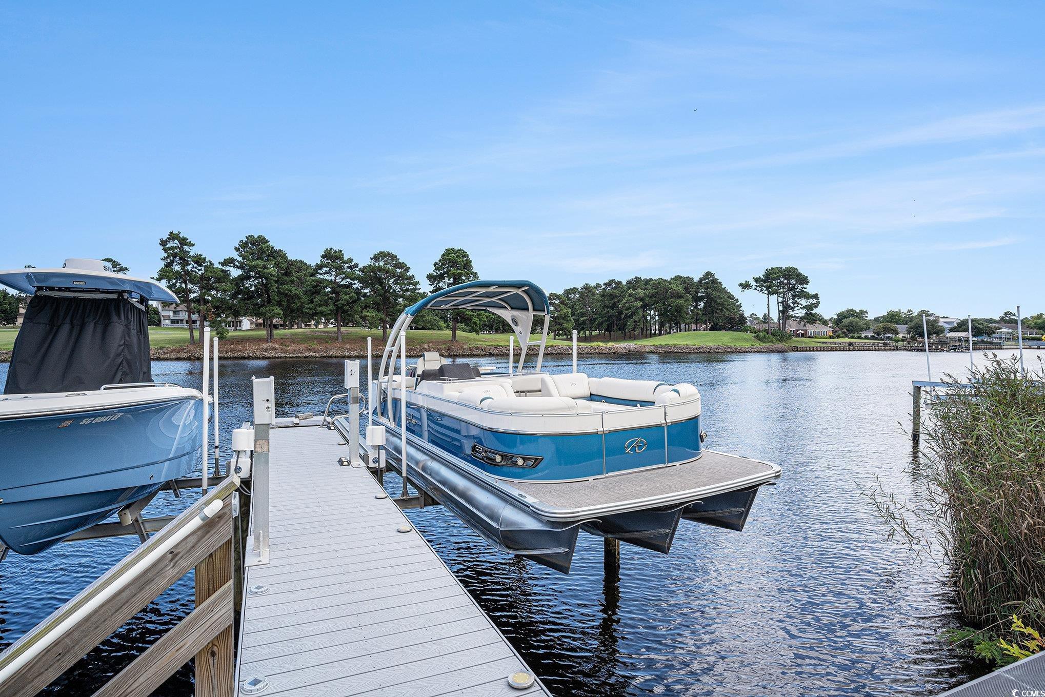 A stunning home situated directly on the Intracoastal Waterway, located in the prestigious community of Waterway Palms Plantation, a gated community. This residence offers panoramic views of both the waterway and the Myrtlewood Golf Course. Custom built home offering 4 bedrooms, 4 full bathrooms, spans 3,800 heated square feet, with a total of 5,600 square feet. Features include a private elevator connecting all three floors, providing convenience and accessibility. The spacious primary suite includes a spa-like bathroom with a soaking jetted tub, walk-in shower, double vanities, custom walk-in closet and second closet. Additional features include crown molding and wainscoting, granite kitchen countertops with tiled backsplash, stainless steel appliances, soft close custom cabinets, under cabinet lighting, pendant light fixtures, French 4 door refrigerator with AI family hub, AI vision inside, double ice maker trays, beverage center with internal dispenser and built in auto fill pitcher. Entertain guests in the formal dining room, located on the main floor, which flows seamlessly to the living room, eat in kitchen and expansive balcony with panoramic views. Entertaining continues on the 1st floor with game room, recreational/movie room, double sliding glass doors that lead to the beautiful outdoor backyard. Outdoors features include a heated saltwater pool, integrated spa, built in grill, quartz bar top with seating, tv and covered patio. The beautiful backyard overlooks the water and includes a private dock complete with a boat lift. Waterway Palms Plantation offers an array of exclusive amenities designed to enrich your lifestyle, including a luxurious clubhouse, expansive pool, tennis courts, basketball courts, gym, playground, and boat storage. Call now to schedule a showing!