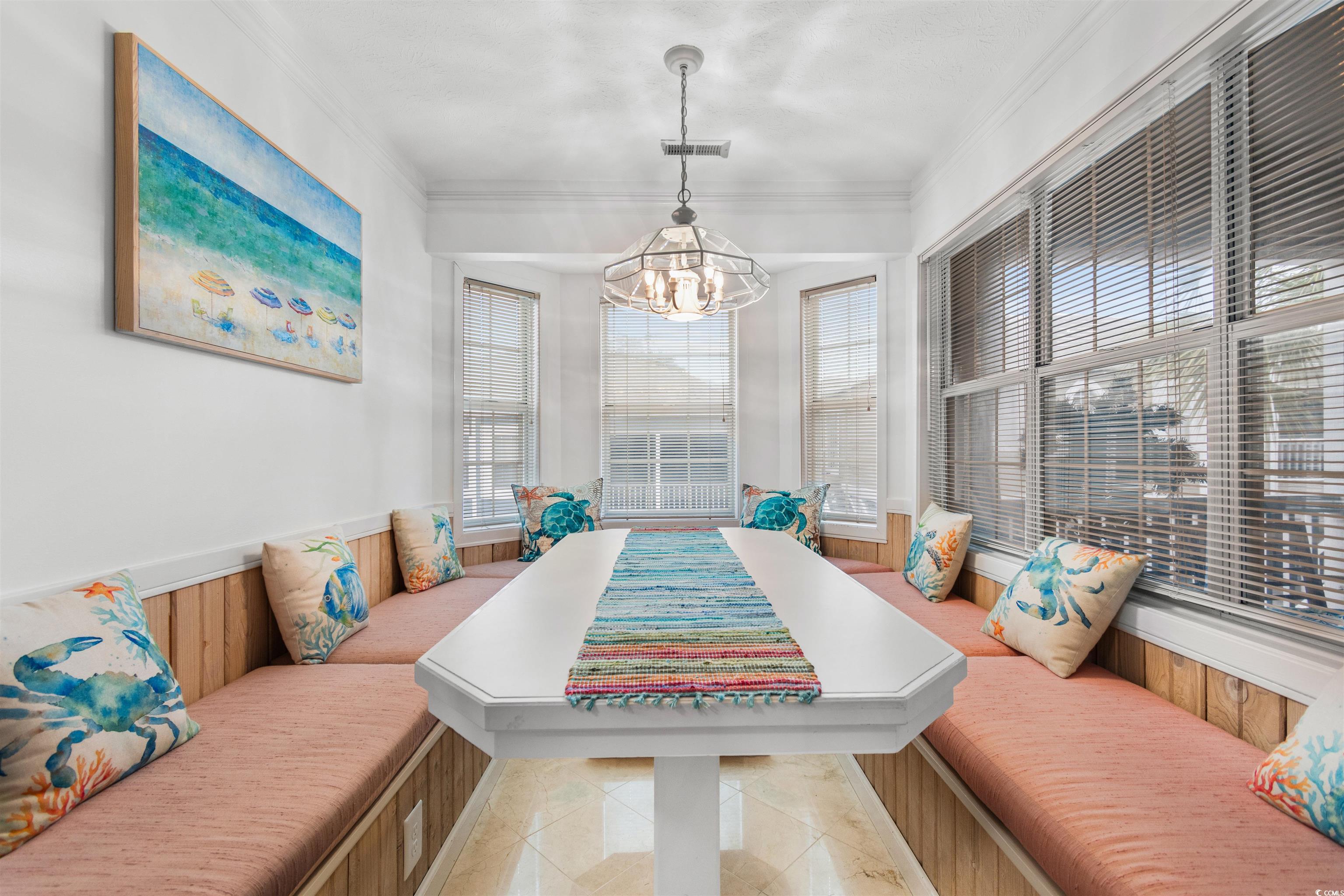 Welcome to your dream coastal retreat! This stunning furnished 4-bedroom, 3-bath, raised beach house is ideally just a short stroll from the sparkling sands and the radiant Atlantic Ocean! Perfect for families, vacationers/investment, or anyone looking to embrace the beach lifestyle, this home offers the perfect blend of comfort, location and coastal charm. The open-concept living and dining areas provide ample space for relaxation and entertaining, featuring large windows that flood the space with natural light. The modern kitchen with brand new stainless steel appliances, solid surface countertops and plenty of cabinet space for a chef's delight. The luxurious master bedroom has a brand new ceramic walk-in shower and double vanity sink, as well as two other full baths for guest convenience. This beach home has it all for a vacation home; enclosed sitting area for morning coffee, eight window natural light dining area. A spacious four-car park under the home, with an outdoor sitting area, shower, foosball table, climate control storage rooms, grilling and room for corn hole! Location is walking distance to the ocean, world glass golf courses nearby, Tanger outlets, shopping and restaurants. HVAC was replaced in 2024, water heater in 2020,exterior of home painted 2023 , new roof completed in 2024. Don't miss out on this stunning raised beach home! **ALL SHOWINGS MUST BEACCOMPANIED BY ACTIVE SC REAL ESTATE LICENSEE.**
