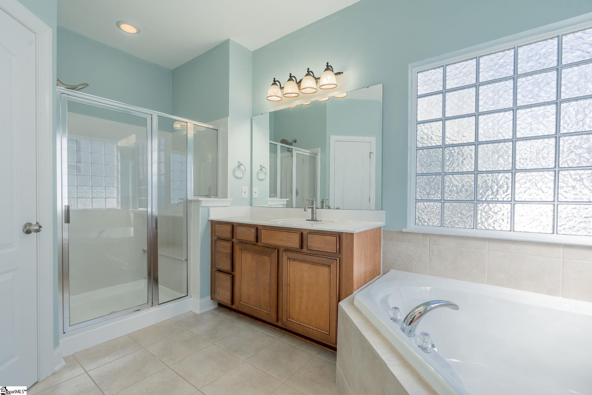 Fabulous floor plan in Five Forks! Harrison Cove is located within walking distance to Monarch Elementary and in the heart of Five Forks, convenient to local shopping, Bridgeway Station & just 15 min from downtown Greenville via 385. This home is built for just about anyone with 2 full bedrooms and baths on the main level, an additional two bedrooms and large rec room upstairs! Open and bright great room has vaulted ceilings, accented by a cozy gas fireplace. Yards of granite countertops grace the kitchen that opens up to the great room, featuring stainless appliances, gas range and full size double ovens. Formal dining room is perfect for entertaining. Large primary suite on main level has spa-like bathroom with double sinks, garden tub and walk in closet. Additional bedroom and full bath on this level, perfect for your guests or for a convenient office space. Private screened porch looks over the fenced yard that is backed by a wooded area. Cul-de-sac is perfect for the kids to play and keeps neighborhood traffic low. Courtyard entry garage! Super schools include Monarch Elem and Mauldin High. Don’t miss this opportunity to own this special home today