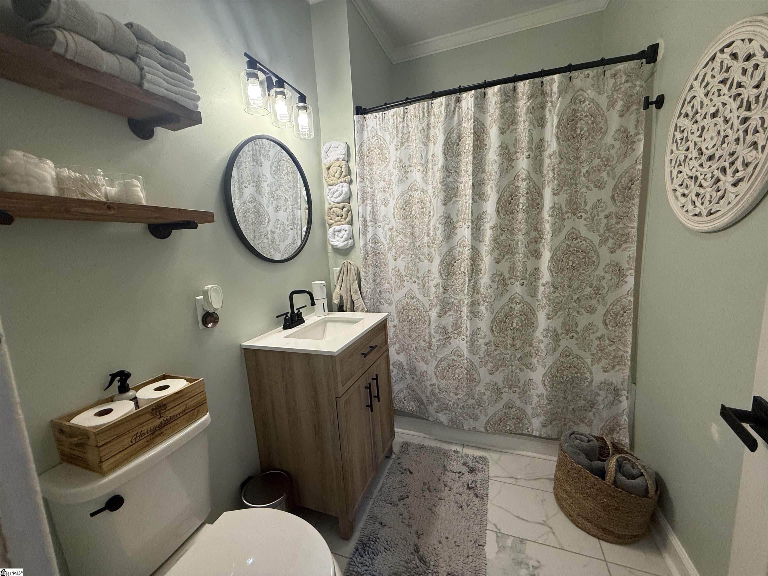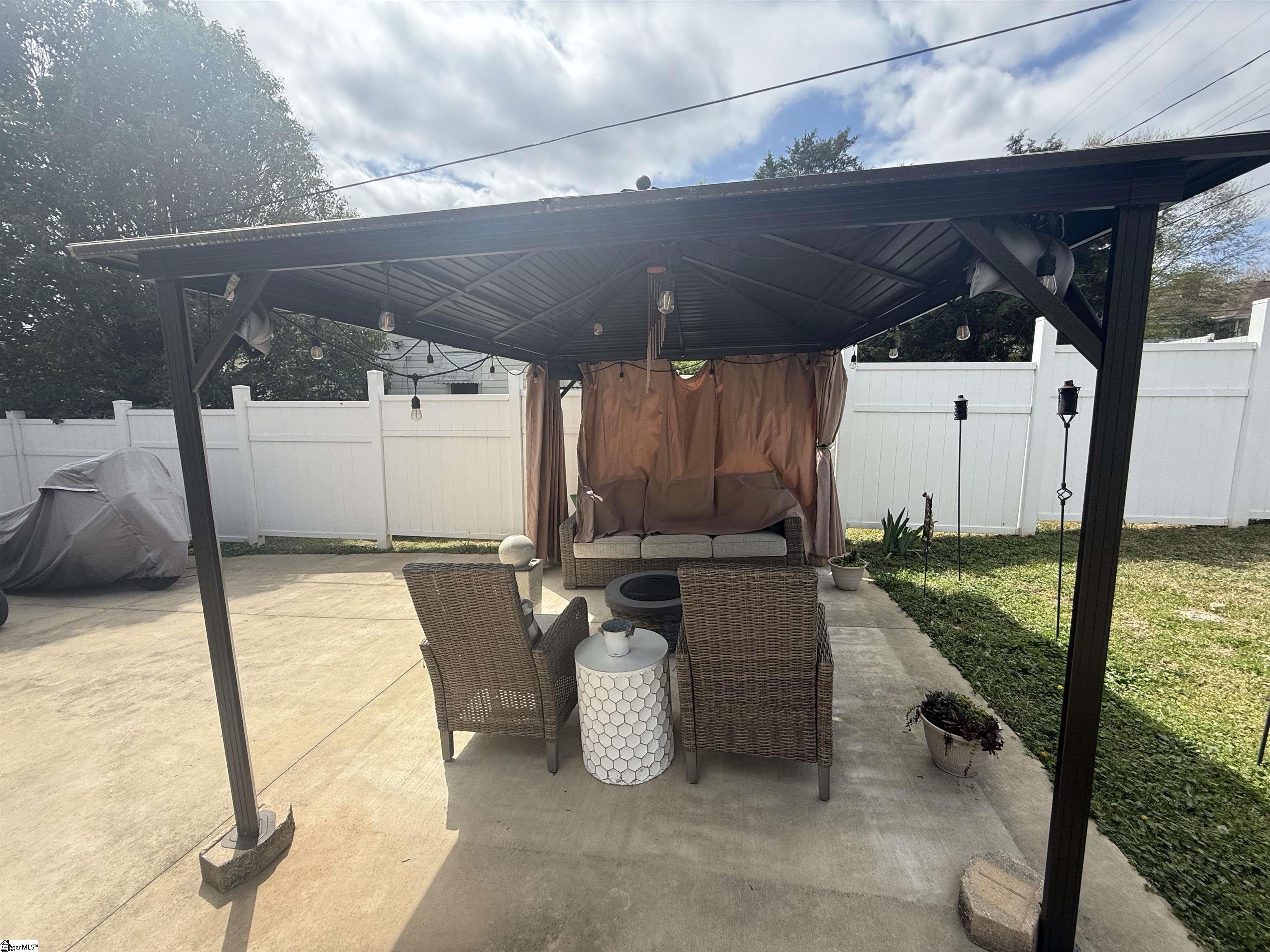 Located in Pacific Mills in Lyman, just minutes from downtown Spartanburg. Newly renovated 3BR/1BA home featuring waterproof LVP flooring on the main level (installed 4/2024) and waterproof marble flooring in the bathroom (4/2024). Original hardwood floors remain underneath. Recent updates include new lighting, fixtures, and hardware throughout. Home is equipped with a 2-ton York gas pack and updated ductwork, along with a vapor barrier in the crawl space. Exterior features include a brand new 11x14 deck, an extensive back patio, and a private drive for parking. Property also includes a 12x10 storage building with a 10' workbench and loft. Attic offers insulated, walkable storage space with access across both sides. Double-hung windows throughout.