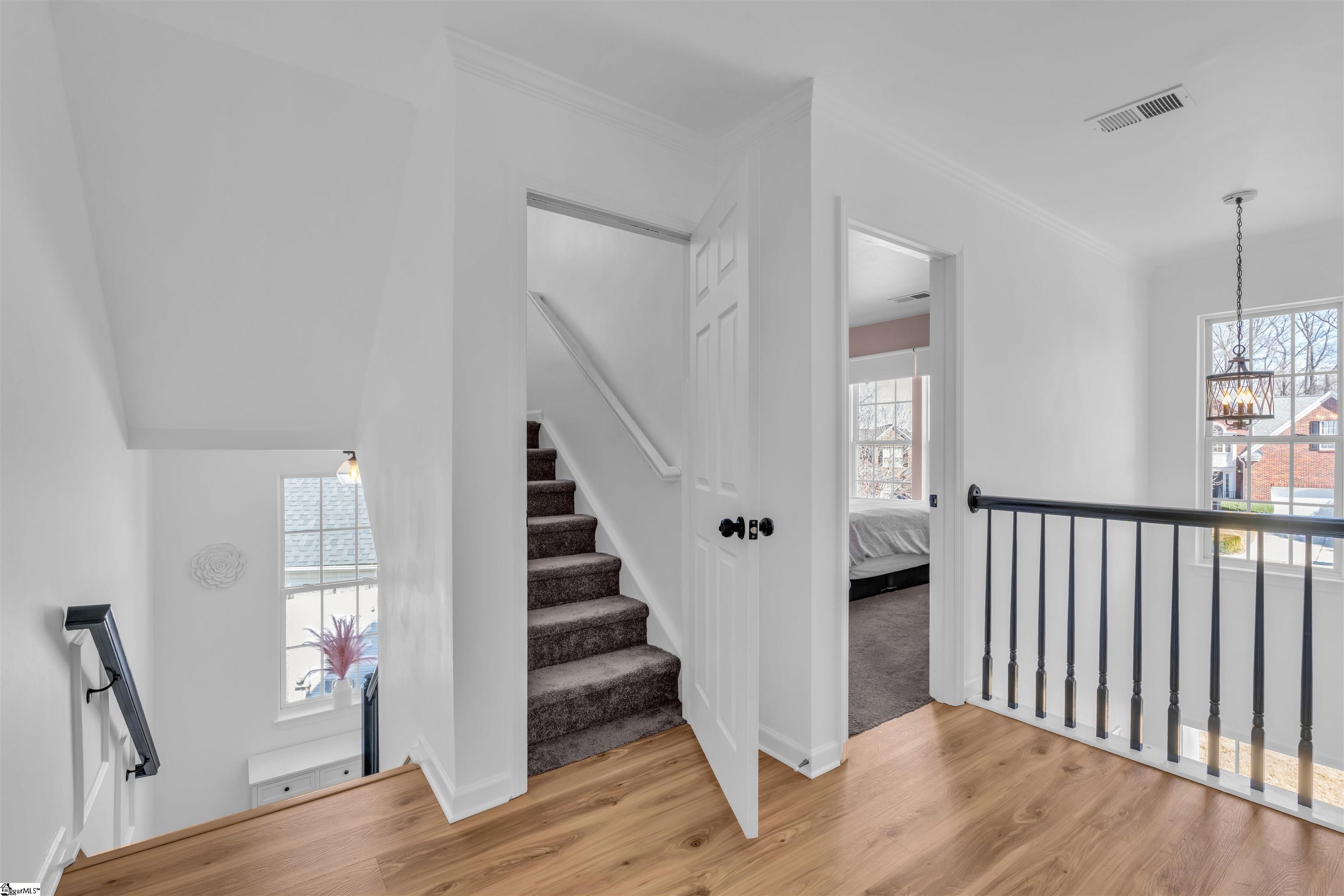 Prime location alert! This stunning home is within a stone’s throw from Five Forks, putting you at the crossroads of convenience and charm. Step into this stunning 5 bedroom, 3.5 bath haven tucked away in a tranquil cul-de-sac. A grand two story foyer greets you, leading straight to an open plan living/kitchen space where granite countertops, stainless-steel appliances, updated cabinets, vinyl-plank flooring, and tasteful tile create a seamless flow for cooking, chatting, and relaxing. A spacious office and a formal dining room provide perfect venues. On the main level, an updated in-law suite enjoys its own private entrance, with an updated kitchenette and great room. Upstairs, the owner’s suite offers a relaxing garden tub, granite surfaces, and contemporary tile, accompanied by three additional bedrooms and a full bathroom. The third floor houses a generous flex room ready for whatever you envision, whether it’s a game zone, a craft corner, or a quiet reading nook. Step onto the deck and discover a backyard oasis that feels larger than life, overlooking a neatly kept common grass field. Plenty of patio space invites grilling, entertaining, and savoring those sunny afternoons. Practical perks around: a shed for storage, ample attic space, and a 16?×?32-ft pool (8?ft deep) refreshed with a new liner in 2024. The roof was also replaced in December of 2024. The home includes a washer, dryer, and refrigerator. Located just minutes from dining and shopping in Five Forks. Ready to move in and start making memories? This house is waiting to become your next happy place!