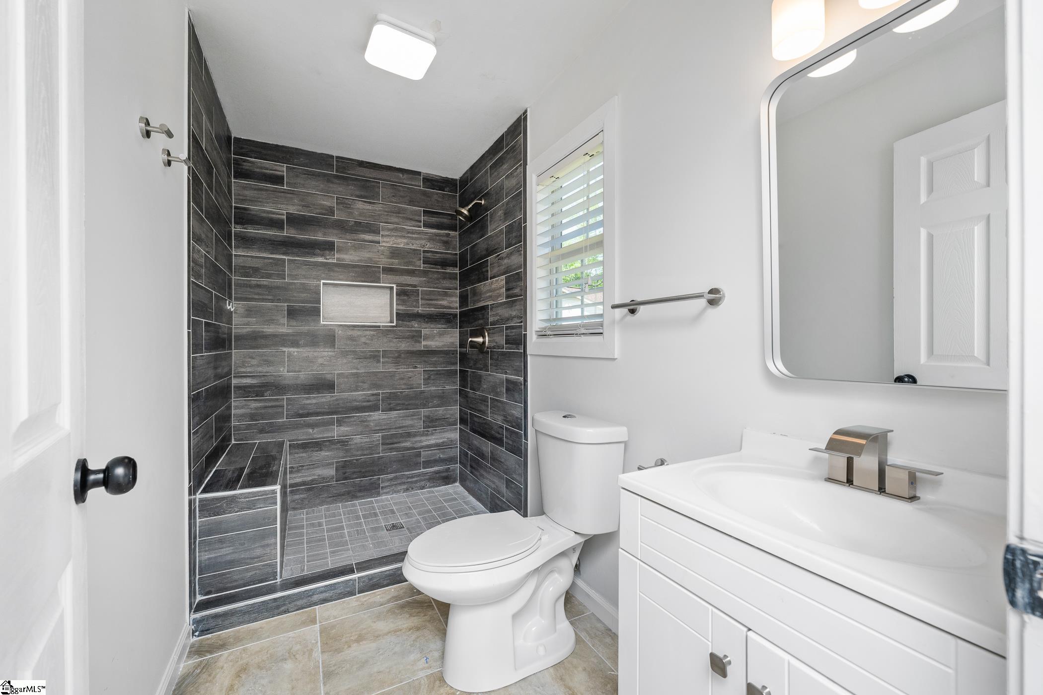 Live on Greenville's coveted Eastside! In Del Norte Estates, 3 Hibourne Ct is a beautifully updated brick ranch that's ready for your family to move into today! A level lot with well-maintained mature landscaping and the gabled porch are inviting and welcome you into a bright, neutral interior. The versatile floorplan will allow you flexibility and space enough for entertaining. Lovely new flooring and contemporary lighting styles grace the entire home. Tucked behind double French doors is a fabulous Office/ Study. Central to the home is a large Living Room with a gas log fireplace that leads you into the galley Kitchen, which showcases quartz counters, extended height cabinetry, a designer tile backsplash, and a full set of stainless appliances! Flow seamlessly into the adjacent Dining Room that can accomodate all your holiday gatherings. Another Family or Flex Room sits in the back of the home and leads to the oversized Deck. This home boasts two exceptional primary Bedroom Suites. Both are spacious with great closets and personal tiled Baths. This is perfect for Owner's with teens or for guests! Additionally, two more great Bedrooms share a central Bath. You will enjoy sunning on the Deck that has a convenient gate or playing in the expansive yard, and there is a handyman's shed that remains! Near Patewood Medical campus, with easy access to the Pelham Rd shops, I-85, and downtown, this location will suit all of your family's needs. Call today for your own tour!