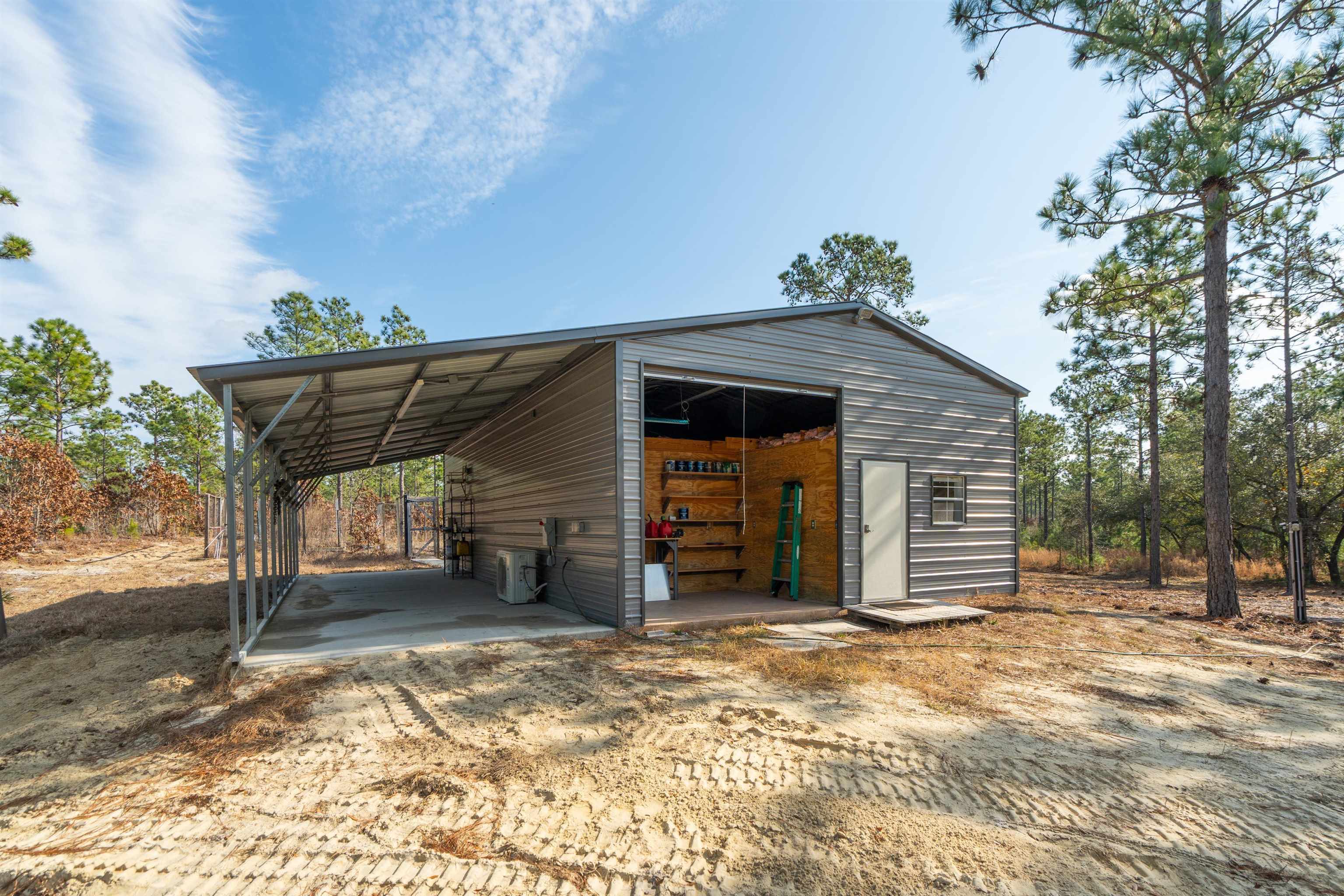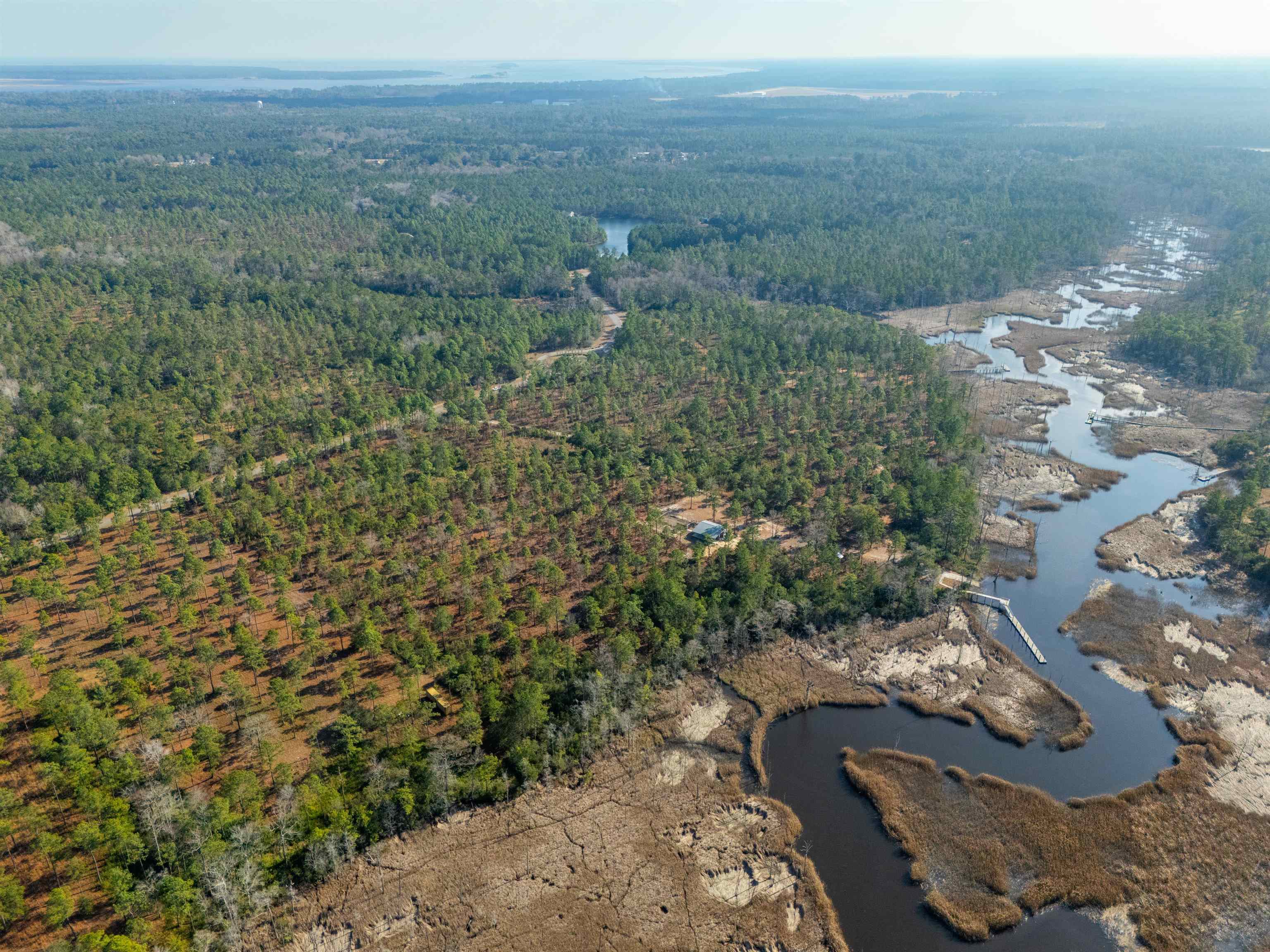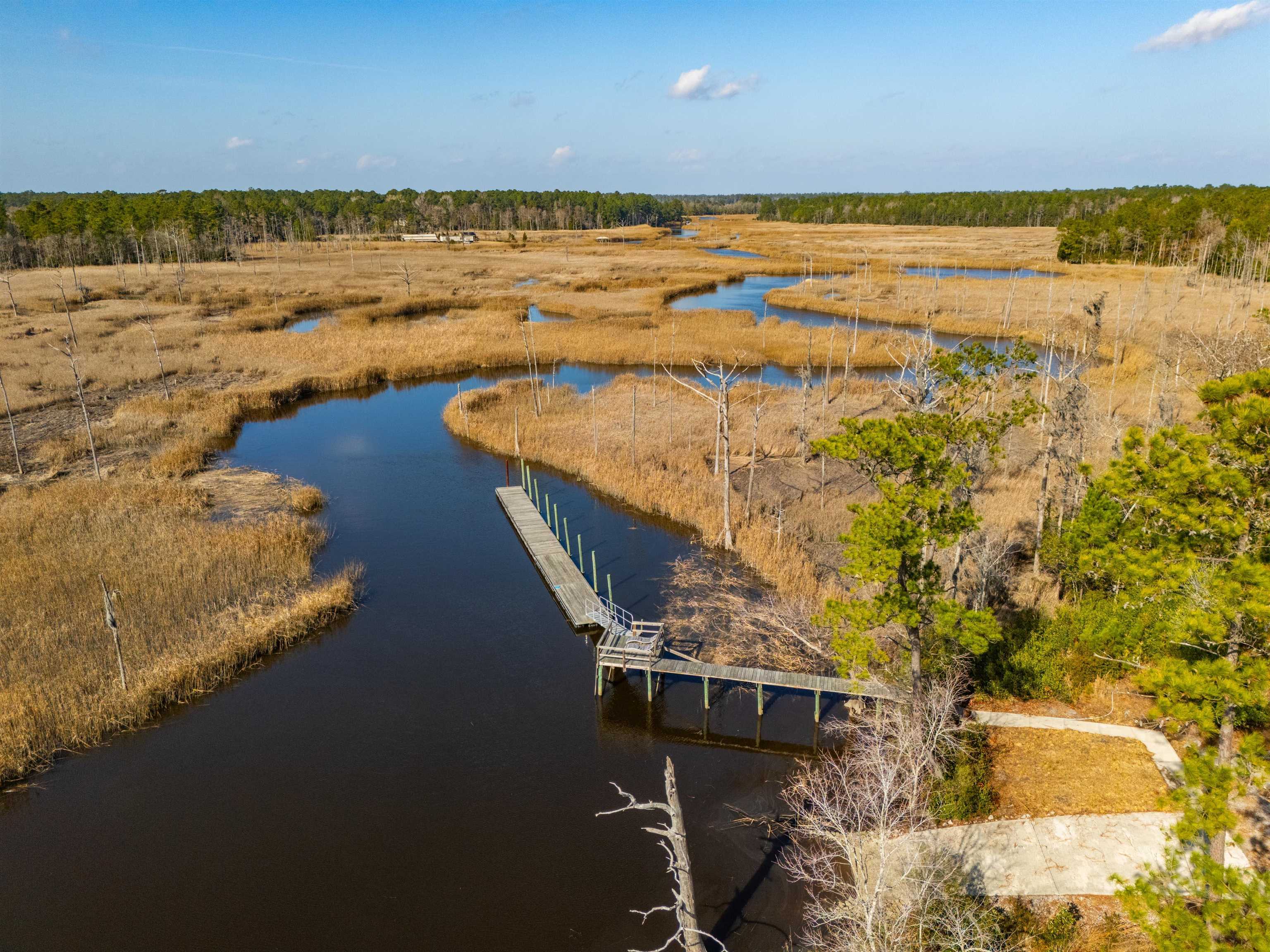 This is not just land—this is a rare Lowcountry legacy waterfront estate. Encompassing 25.54 acres just south of Georgetown, SC, on Turkey Creek off the Sampit River, this exceptional property offers deepwater access, a designated homesite, and long-term conservation protection in a setting that balances privacy, recreation, and future residential potential. A 100-foot dock with approximately 6–8 feet of water at low tide and a concrete boat ramp provide convenient boating access, including an approximate 15-minute run to downtown Georgetown. An existing 1,000 sqft metal boat building offers approximately 600 square feet of improved heated and cooled interior space, providing immediate utility and flexibility for waterfront enjoyment. This 25.54-acre waterfront property is located on Turkey Creek, a tributary of the Sampit River, and is encumbered by a perpetual conservation easement held by the North American Land Trust. The easement preserves the majority of the acreage while allowing for one designated home site for a single-family residence, along with the continued use of the existing boat facilities. The property is bordered on the north and south by conserved lands, with Turkey Creek forming a natural boundary along the western side and Old Town Ave providing access on the east side, creating a private and protected setting. Subdivision & additional development are restricted, ensuring the long-term integrity and character of the land. Water access is a defining feature of the property. The dock was extended in recent years to 100 feet and provides an estimated 6–8 feet of water at low tide. A recently constructed and maintainable concrete boat ramp allows for convenient launching. From the dock, downtown Georgetown is approximately 15 minutes away by boat, offering easy access to the Sampit River and surrounding coastal waterways. Presenting convenient access to both inshore and offshore fishing and opportunities for a wide range of coastal species. An existing 1,000 square foot metal building adds immediate utility and flexibility, offering just under 600 square feet of heated and cooled interior space, along with utility bays and covered areas suitable for boating-related use and storage. Seller is aware that the boat building & associated interior improvements, including electrical, plumbing, kitchen, bathroom, and climate control, were constructed without permits and are not recognized as permitted living area. Buyer to verify allowable use. The building is constructed on a slab &, like the designated homesite, is located outside the flood zone. Significant infrastructure is already in place, including 400-amp electrical service at the designated homesite, 60-amp service to the boat building, and 100-amp service near the boat landing, with all utilities installed underground. A private shallow well with an insulated well house supplies water to the boat building, garden areas, and the boat landing. Additional improvements enhance both function and livability, including an established garden area of approximately 1,000 sqft with irrigation served by multiple isolation valves that allow independent flow control to individual planting rows, a portion of which is configured as raised beds. The garden is enclosed by wildlife-exclusion fencing. A firepit area provides a natural gathering space, and cleared dirt road access runs throughout the property, connecting the public road to the boat building and the designated homesite. The conservation easement permits hunting, fishing, forestry management with approval, and passive recreational use, making the property suitable for a range of lifestyles—from a private boating retreat to a future waterfront residence set within a permanently protected landscape.This is a rare opportunity to acquire a waterfront holding where conservation, access, infrastructure, and thoughtful improvements are already in place, offering legacy-quality property that is hard to replicate.