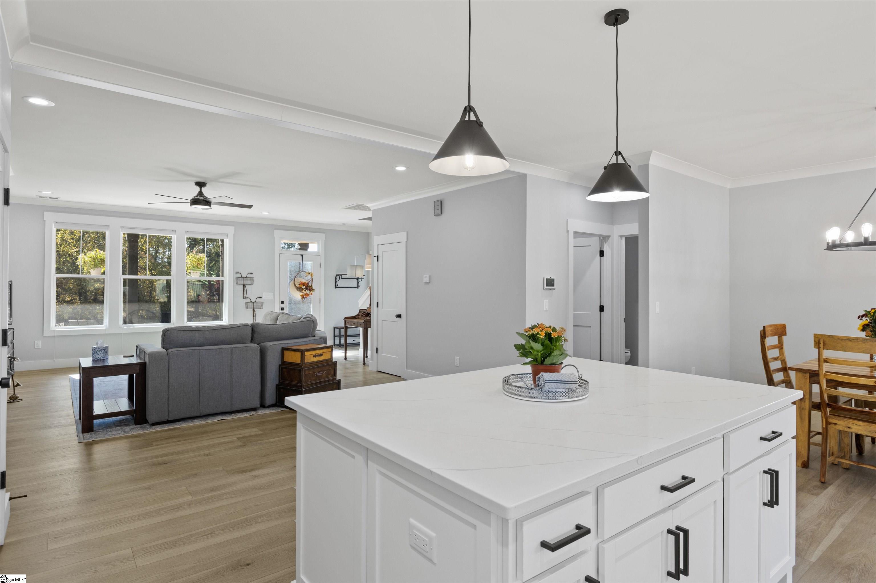 Like-new two story home in a quiet Williamston neighborhood with no HOA! The main level offers an open floor plan with plenty of natural light and space to entertain. Relax by the fireplace in the living room or prepare meals in the spacious kitchen with ample cabinet space. The adjoining dining room makes dinnertime or parties a breeze. The primary suite is on the main floor and features a private bath and custom dual closets. Upstairs includes three additional bedrooms and two full bathrooms, providing a practical layout and flexible spaces to meet any need! The large backyard has room for gardening, recreation, or relaxation. The two car garage adds parking and plenty of storage. This home is move-in ready with access to Williamston's local amenities and an easy commute to Anderson, Greenville, or beyond via I-85. A great property at a strong price, ready for its next owner. Make your appointment today!