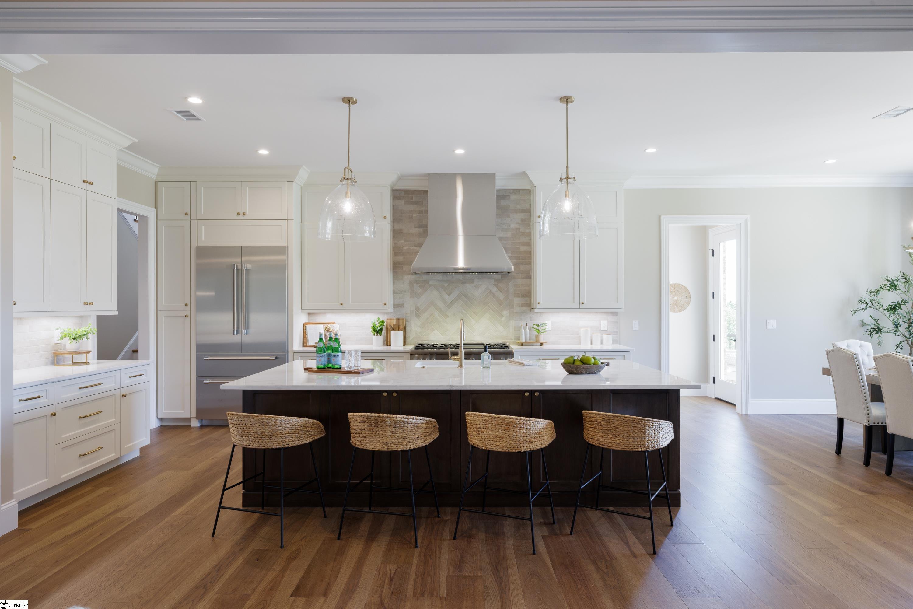 Located in Montebello, Greenville’s premier gated community just minutes from award-winning Downtown Greenville, this stunning custom home offers luxury living with exceptional craftsmanship, upscale finishes, and breathtaking views. Ideally situated on a private cul-de-sac, this thoughtfully designed home features an open and expansive floor plan filled with natural light from large windows and doors that frame beautiful views of the downtown skyline, distant horizon, and a community pond with water fountain. The vaulted great room serves as the heart of the home, highlighted by a gas fireplace wrapped in oversized tile with custom cabinetry and floating shelves above. This space flows seamlessly into the gourmet kitchen, featuring a huge island with seating, abundant custom cabinetry, Cambria quartz countertops, and a designer tile backsplash. High-end stainless appliances include a Thermador 48-inch Range with Double Ovens, a 42" wide built-in refrigerator, a drawer microwave in the island and a dishwasher. A spacious butler’s pantry offers additional custom cabinetry, a sink, and has under counter space for the new owner to choose another appliance of their choice. This could be a 2nd dishwasher, beverage center or wine cooler (Builder to approve the make and model). Adjacent to the kitchen is a large dining area with incredible views and convenient access to the grilling deck with a gas hookup for the new owner's grill. These living spaces open to a spectacular screened porch with a vaulted tongue-and-groove wood ceiling and a stone gas log fireplace, perfect for year-round entertaining. The primary suite on the main level features a tray ceiling and luxurious spa-style bath with dual vanities, floor-to-ceiling designer tile shower with multiple shower heads, and a private water closet. The oversized primary closet with built-in organization connects conveniently to the large laundry room with custom cabinetry and sink. A second main-level bedroom on the opposite side of the home offers flexibility as a guest suite, a second primary bedroom or home office, complete with a private bath and walk-in closet. The main level also includes a guest powder room and a drop zone with built-in cabinetry off the garage. Upstairs you’ll find two additional bedrooms with walk-in closets, connected by a Jack-and-Jill bath with separate vanity areas, plus a huge bonus room ideal for a media room, playroom, or additional entertaining space. Additional highlights include: Oversized two-car garage with extra space for golf cart parking, storage, or a workshop; walk-out attic for convenient storage and an encapsulated crawl space providing additional storage options if needed. Residents of Montebello enjoy outstanding amenities including pool, clubhouse, tennis, pickle ball, playground, stocked fishing lake, and numerous parks and green spaces—all just minutes from the dining, shopping, and cultural attractions of award-winning downtown Greenville.