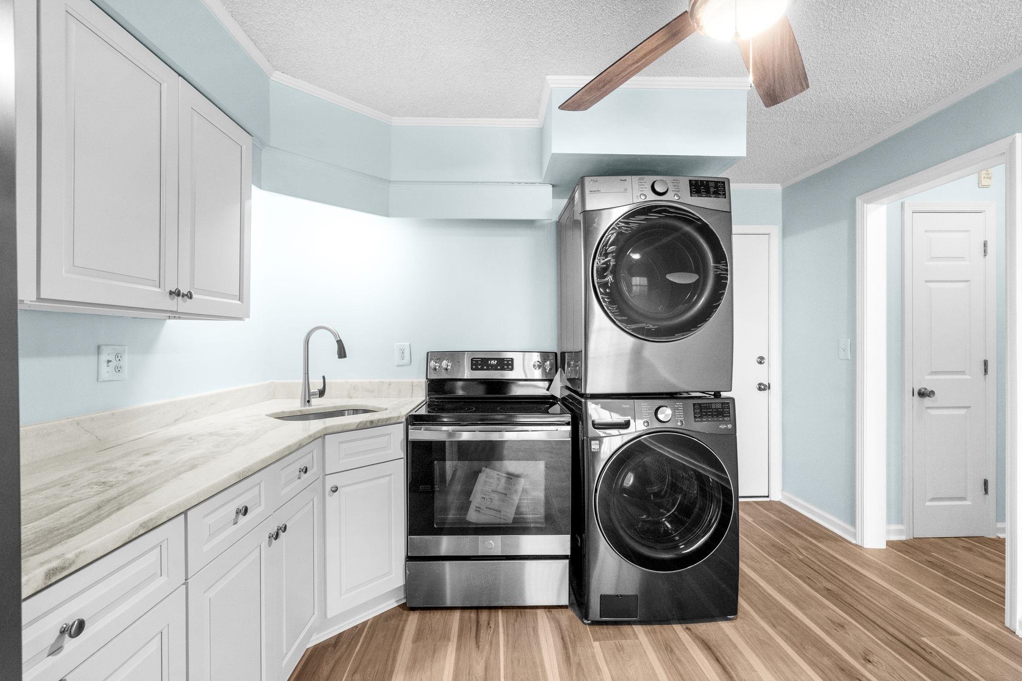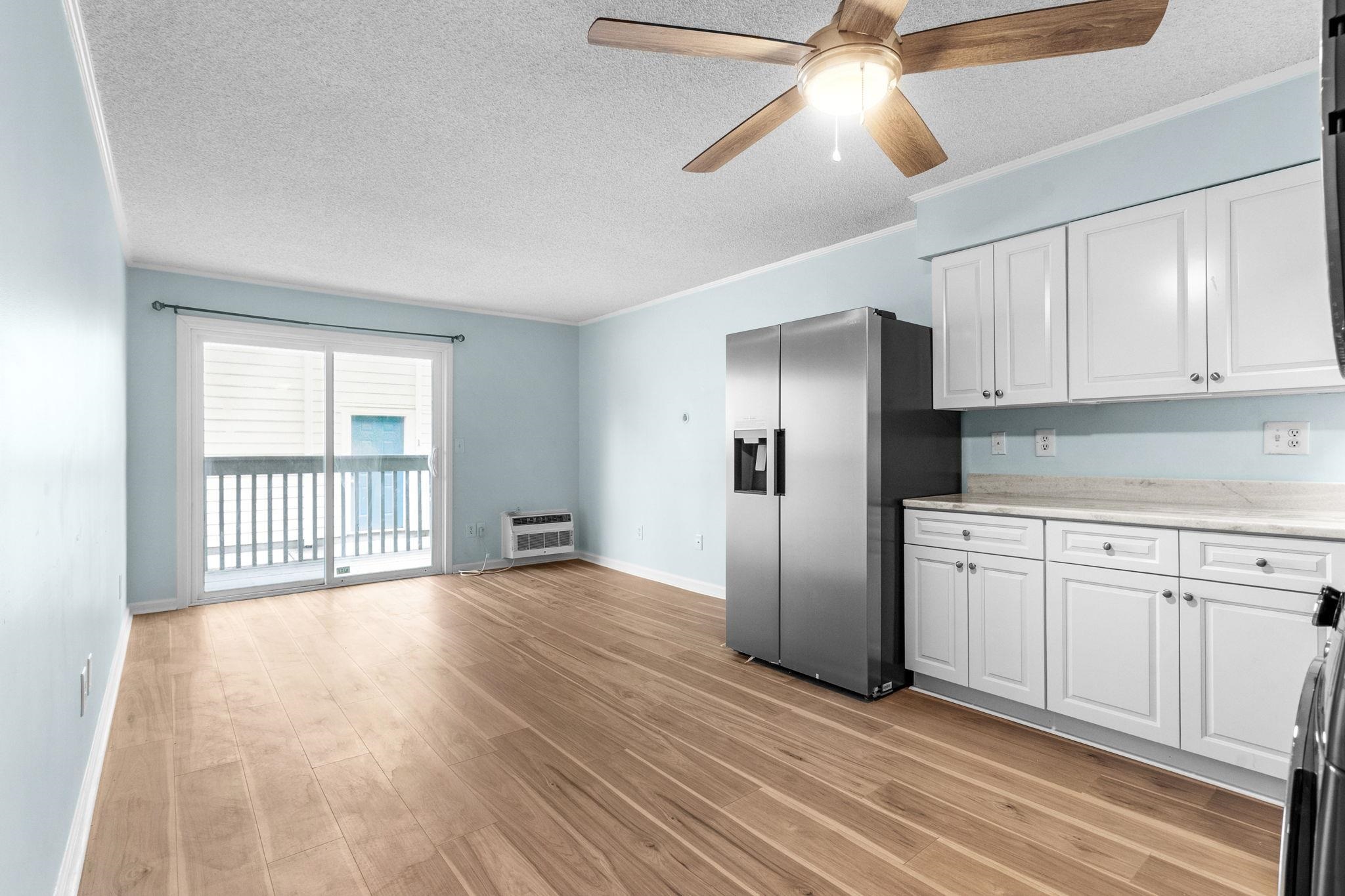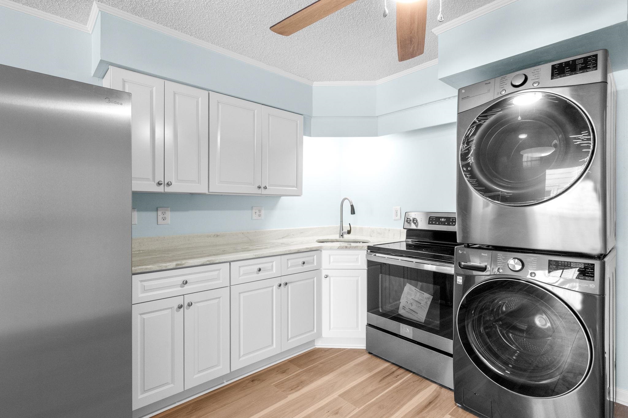 Welcome to 300 47th Ave North in the heart of North Myrtle Beach — a beautifully updated property offering modern finishes, brand-new appliances, and a fresh coastal feel just minutes from the ocean. This thoughtfully renovated efficiency condo features an open, airy layout with no separate bedrooms or dining room, allowing for a flexible and efficient use of space that feels bright and comfortable. The open-concept design creates a seamless flow, making it easy to arrange living, sleeping, and entertaining areas to suit your lifestyle. Crisp white shaker-style cabinetry with brushed nickel hardware, elegant light gray countertops with striking dark gray veining, and a matching full-height backsplash create a polished, cohesive look throughout the kitchen space. Durable light wood-look flooring runs throughout, adding warmth while remaining easy to maintain. The kitchen is complemented by a suite of brand-new appliances, including a stainless steel refrigerator, a black LG electric range with smooth cooktop and front controls, and a stacked LG ThinQ washer and dryer — maximizing both efficiency and space in this well-designed layout. The combined kitchen and laundry area is in pristine, move-in-ready condition, reflecting recent high-quality updates and careful attention to detail. The bathroom continues the modern aesthetic with a stylish single-sink vanity featuring classic paneled cabinetry, a marble or quartz countertop with dramatic veining, and an undermount white ceramic sink paired with a brushed nickel single-handle faucet. A recessed medicine cabinet provides functional storage, while soothing light blue or seafoam green walls create a serene, coastal-inspired atmosphere. Wood-look plank flooring completes the space with both durability and style. Located about a block and a half from the beach, 300 47th Ave North places you near everything that makes North Myrtle Beach so desirable — pristine sandy shores, Main Street festivals, Barefoot Landing shopping and dining, championship golf courses, waterfront restaurants, live entertainment, and boating along the Intracoastal Waterway. Whether enjoying sunrise walks on the beach, evenings at local seafood spots, or shopping and music just minutes away, this location delivers the best of coastal Carolina living. With its updated finishes, new appliances, and prime location near the ocean, 300 47th Ave North is a move-in-ready opportunity to enjoy the relaxed beach lifestyle North Myrtle Beach is known for.