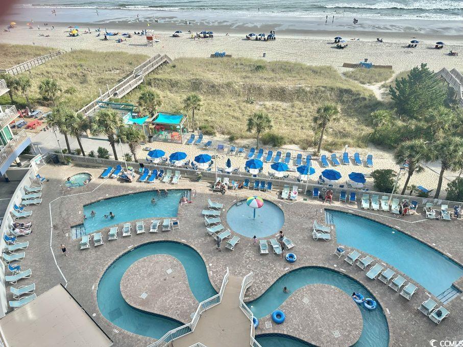 Spacious 3BR/3BA OCEANFRONT inside corner unit with lots of upgrades in the highly desirable Avista Resort in the heart of North Myrtle Beach only 3 blocks to Main Street. This unit features a bright open layout. The kitchen has granite countertops with newer tile back splash (2023), stainless steel appliances includes newer microwave (2020), two bathroom vanities have been replaced (2023), new mirrors (2023), combo washer/dryer was replaced (2024), two 50" flat screen TV's (2024), 2nd bathroom has new walk-in glass shower (2025) and 3 queen box springs replaced in (2025). The third bedroom has floor to ceiling glass. And the second bedroom has a separate oceanview balcony. The master bedroom is direct oceanfront with a king bed. And this unit has a double bay large balcony connecting both master bedroom and living room to enjoy the amazing pool and ocean views. Avista offers everything you need for fun and relaxation: including indoor and outdoor pools, hot tubs, lazy rivers, state of the art fitness center, onsite lounge, onsite dining, general store and only steps to the sand and ocean. Prime location being walking distance to shopping, dining and entertainment. The HOA includes ALL utilities, building insurance and HO6 contents insurance. This unit is perfect for beach getaways or an excellent investment property, this condo is ready and waiting for you!!