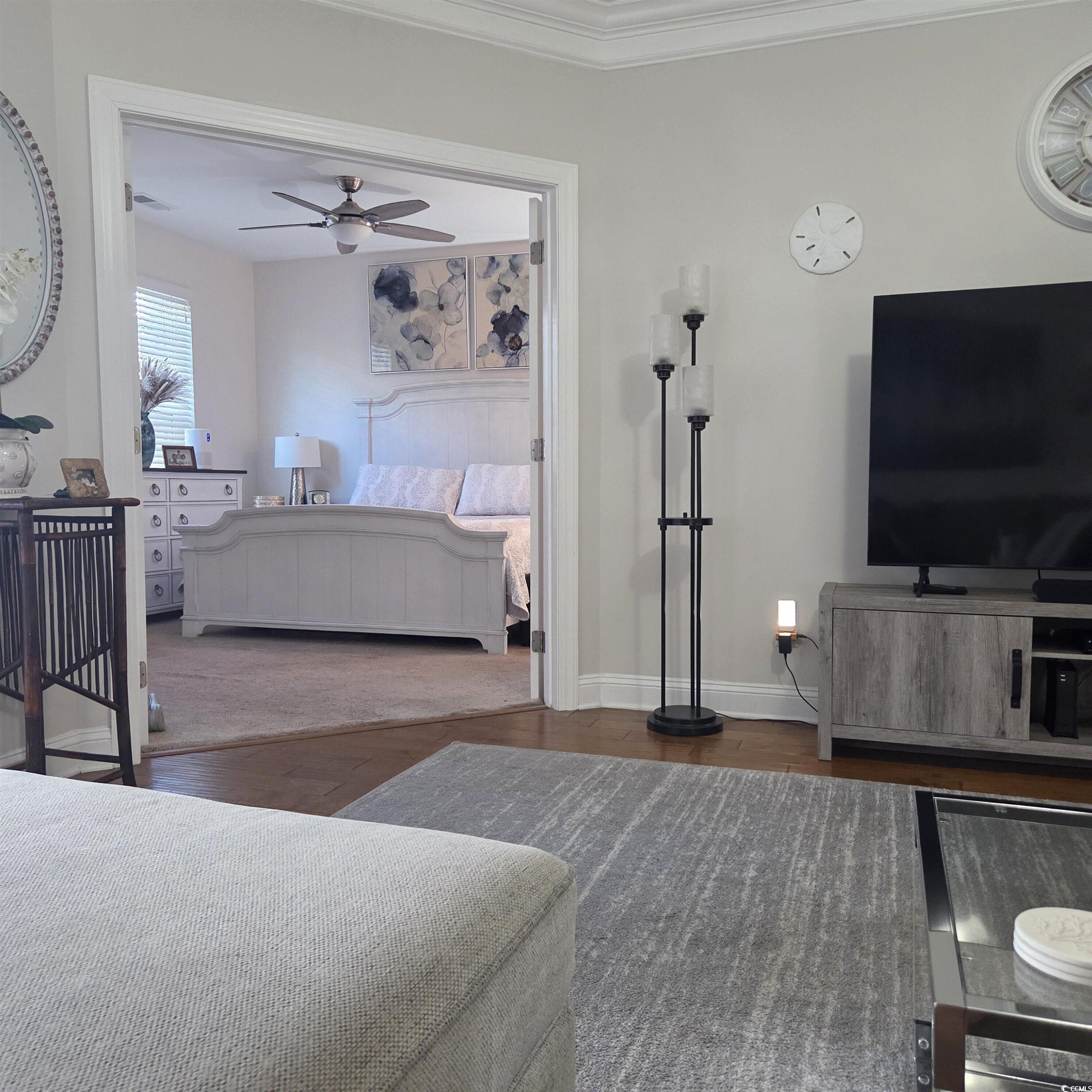 Welcome to the Villages of Queens Harbour II, where coastal living seamlessly blends with comfort in this charming first-floor condo. This well-maintained residence features two spacious bedrooms and two bathrooms, adorned with beautiful hardwood flooring and elegant crown molding throughout the main living area. The kitchen is a chef's dream, equipped with stainless steel appliances, granite countertops, a breakfast bar, and a generous pantry for all your storage needs. The primary bedroom has "His and Her" closets along with an en-suite bathroom that includes a walk-in shower and ample vanity space. Step outside to the screened-in porch to enjoy your morning coffee or evening cocktails under the South Carolina sky. Located within walking distance of top-rated restaurants and shopping, this prime location is just minutes from the beach, Market Common, banks, medical facilities, and more. A few steps from your door and you are at your car, mailbox, beautiful Clubhouse, Grilling areas, and Resort-style Swimming Pool with Jacuzzi. The Villages at Queens Harbour II Social Committee has numerous functions to keep us all pleasantly entertained. Truly a “Little Piece of Paradise.” This charming condominium is waiting for its new owner.