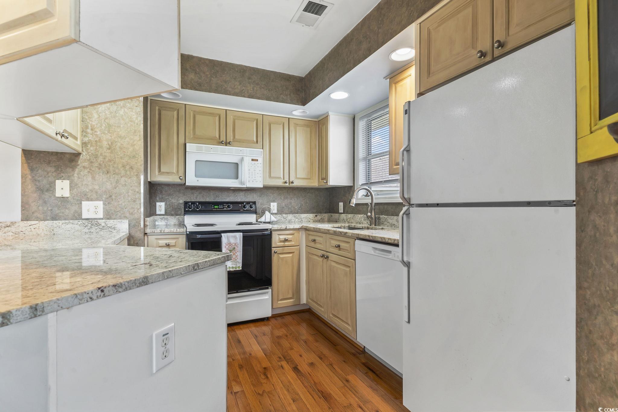 Welcome to 300 Shorehaven, Unit V4, a well-appointed two-bedroom, two-bath condo located in the desirable Cherry Grove section of North Myrtle Beach. Each bedroom has its own private bath, offering comfort and convenience for family or guests. The open layout features a spacious living room, dining area, and a fully equipped kitchen, perfect for everyday living or entertaining. Enjoy two private balconies with lovely coastal views, along with the convenience of a stacked washer and dryer and an outdoor storage closet for your beach gear. Shorehaven offers exceptional amenities including a sparkling pool, grilling area, and beautifully maintained grounds. HOA dues include cable, internet, water, sewer, trash pickup, pest control, and exterior maintenance for worry-free ownership. Just minutes from the Cherry Grove Pier and an easy walk to the beach, with shopping, dining, and medical care nearby, this condo is ideal as a primary residence, second home, or investment opportunity.
