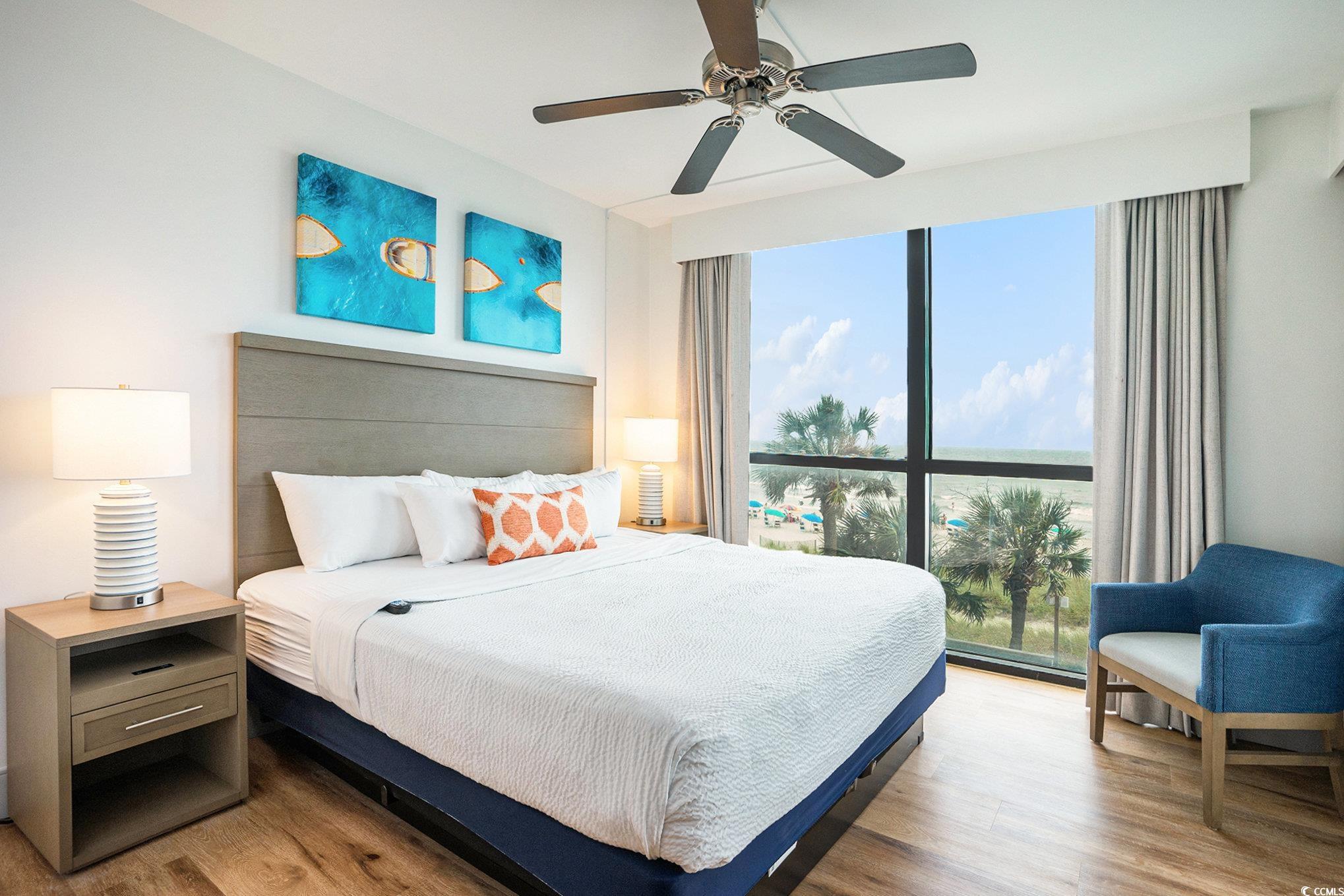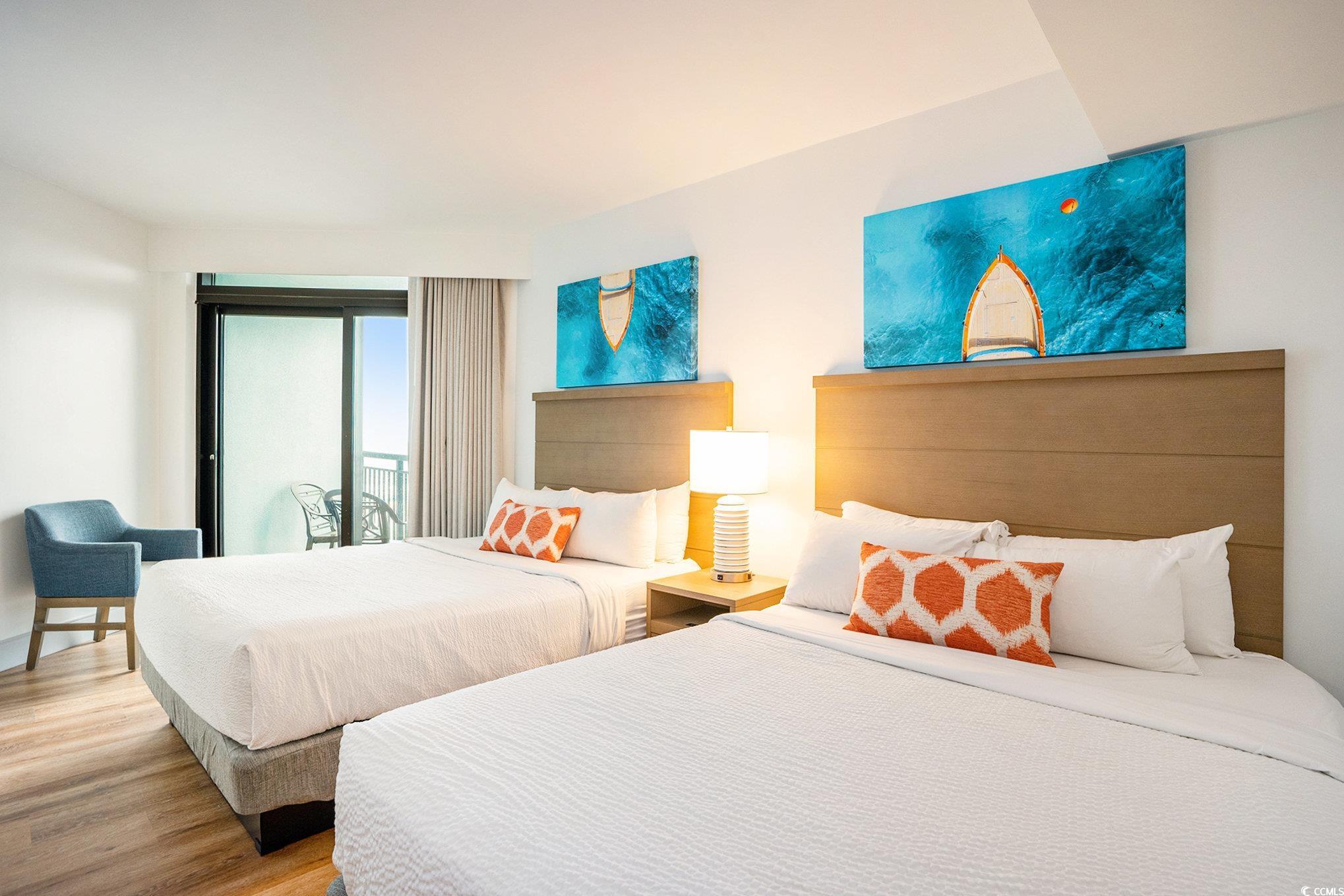 Stunning direct oceanfront CORNER DELUXE UNIT 3-bedroom, 2-bath at the Caribbean Resort. This is the largest floorplan at the Caribbean and has panoramic wrap around views from the 2 balconies and windows. The large main balcony is accessible from the living room and master bedroom and the second balcony is accessible off a bedroom. Recently remodeled and showcases designer décor and furnishings, stylish LVP flooring, and an upgraded kitchen that is perfect for entertaining or relaxing. Located on the 2nd floor with easy access via stairs or elevator, this fully furnished retreat offers amazing ocean views from an abundance of windows, sliders, and spacious balconies ideal for enjoying both sunrises and sunsets as you overlook the pool and the sparkling Atlantic Ocean . Equipped with a washer and dryer for added convenience, this condo is an excellent choice for personal use or as a potential rental investment. The Caribbean Resort pampers residents and guests with a host of amenities, including multiple pools, a lazy river, on-site dining, and a fitness room, while its prime location puts you moments from Myrtle Beach top attractions such as the Sea Captains House, Broadway at The Beach, and the iconic SkyWheel. Don't miss this rare opportunity to own a piece of paradise where luxury meets convenience and every day feels like a vacation-schedule your tour today.