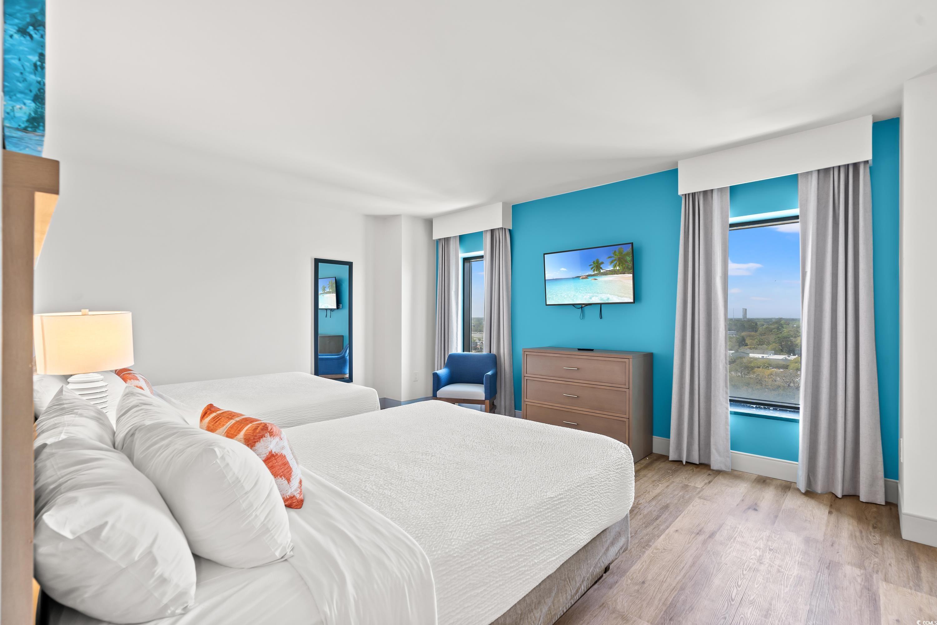 ABSOLUTELY STUNNING!! 3 bedroom, 3 full bathrooms, 14th floor, END UNIT condo inside the voted "Best of the Beach" Caribbean Resort. Recently UPDATED decor with new furniture, paint, and LVP flooring throughout the main living space, kitchen, and all bedrooms. STAINLESS STEEL appliances and GRANITE countertops in kitchen and bathrooms. 2 private balconies with amazing views and large picture windows in bedrooms keeping them light and bright. This unit is super spacious and accommodates 12 guests making it the most popular and requested floor plan among golfers! This unit has its own WASHER/DRYER and the HVAC was replaced in2016. HOA DUES include water/sewer, cable, internet, electric, pest control, trash, insurance... even HO6 INSURANCE and more!!Resort amenities include over 14 pools, a lazy river, indoor and outdoor hot tubs, on-site food and beverage, in-room dining, fitness room, gaming areas, and the on-site Mist Spa for total relaxation. Walk across the street to Ben & Jerry's Ice Cream, Starbucks, or next door to the award winning Sea Captain's House oceanfront restaurant. The Caribbean Resort is also located near top rated family entertainment such as Broadway at The Beach, Myrtle Beach Sky Wheel, Top Golf and more!