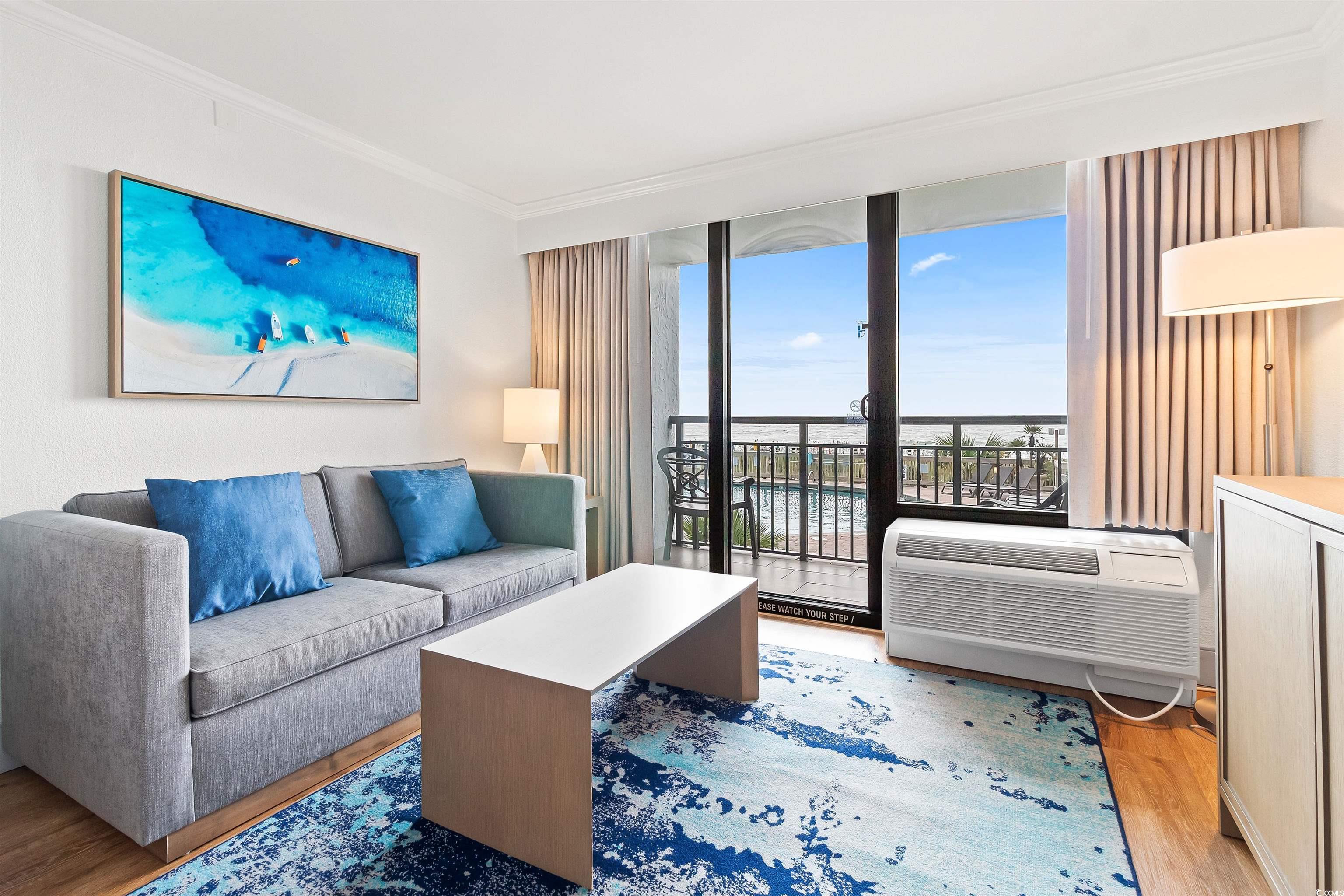 Oceanfront Elegance at Caribbean Resort – Newly Renovated 1 Bedroom Condo Ocean Front. Indulge in coastal living with this exquisite, fully renovated 1 bedroom, 1 bath condo at the renowned Caribbean Resort in Myrtle Beach. Enjoy the sweeping Atlantic views, top-tier resort amenities, and strong rental performance history, this turnkey unit presents both a dreamy getaway and a smart investment. Stylish and durable luxury vinyl plank flooring, perfect for beachside living. Sleek quartz countertops and modern cabinetry in the kitchen. Freshly painted interiors with smooth ceilings for a contemporary feel. Fully furnished with tasteful, move-in ready décor. Enjoy a host of upscale features including breathtaking oceanfront views from your private balcony, Indoor and outdoor pools, lazy river, and thrilling water slide, on-site spa for relaxation and wellness treatments Ice cream and coffee shops (Ben & Jerry’s, Starbucks), plus an oceanfront bar and dining options. Not to mention a game room, fitness center, gift shop, fire pit, arcade, and much more. This condo places you right at the heart of Myrtle Beach’s most desirable beachfront. It’s just steps from the ocean, nearby dining like the famed Sea Captain’s House, and within easy reach of popular attractions. Whether you’re seeking a serene personal retreat or a high-performing rental, this property offers flexibility with proven demand. Fully furnished and turnkey, it’s ready to deliver memorable stays and consistent returns.