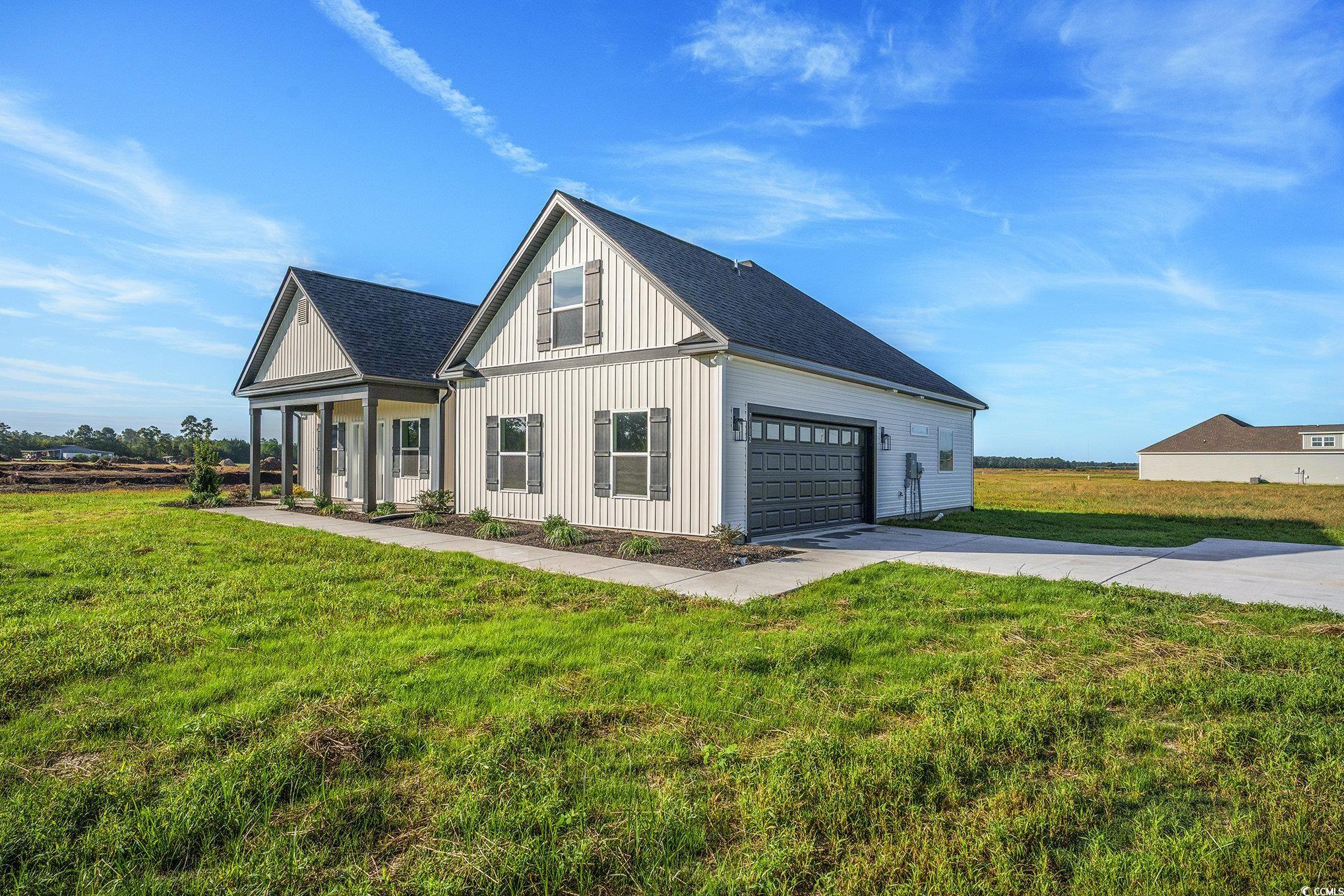 Brand-New Construction on 0.59 Acres – Prime Location & Modern Style! No HOA! This stunning 4-bedroom, 3-bathroom newly built home is perfectly situated on 0.59 acres and centrally located on Highway 90. Only minutes from Historic Downtown Conway, International Drive, and Coastal Carolina University. Enjoy the convenience of nearby shopping, dining, schools, and beaches while living in a peaceful setting. The inviting open floor plan is highlighted by recessed LED lighting, LVP flooring throughout the main living areas, and an impressive electric fireplace with shiplap accents. Ceiling fans are in every bedroom, the great room, and the screened back porch! The gorgeous kitchen features Ice White shaker cabinetry with black hardware, a white farmhouse sink, and black stainless steel appliances, including an electric range, dishwasher, and microwave. Retreat to the luxurious primary suite with beautiful shiplap accents, a spacious walk-in closet, and a spa-style bathroom with tile flooring and a large tiled shower featuring a rain head and handheld sprayer. Additional bedrooms offer comfortable space for guests or family, and the upstairs bonus room with carpeting adds flexibility for a media room, office, or playroom. Exterior features include classic Heritage Linen vinyl siding with modern black accents, creating timeless curb appeal. This home blends style, comfort, and convenience in a sought-after location—schedule your showing today! **Some photos are of previously built and sold homes. Features and selections may vary**