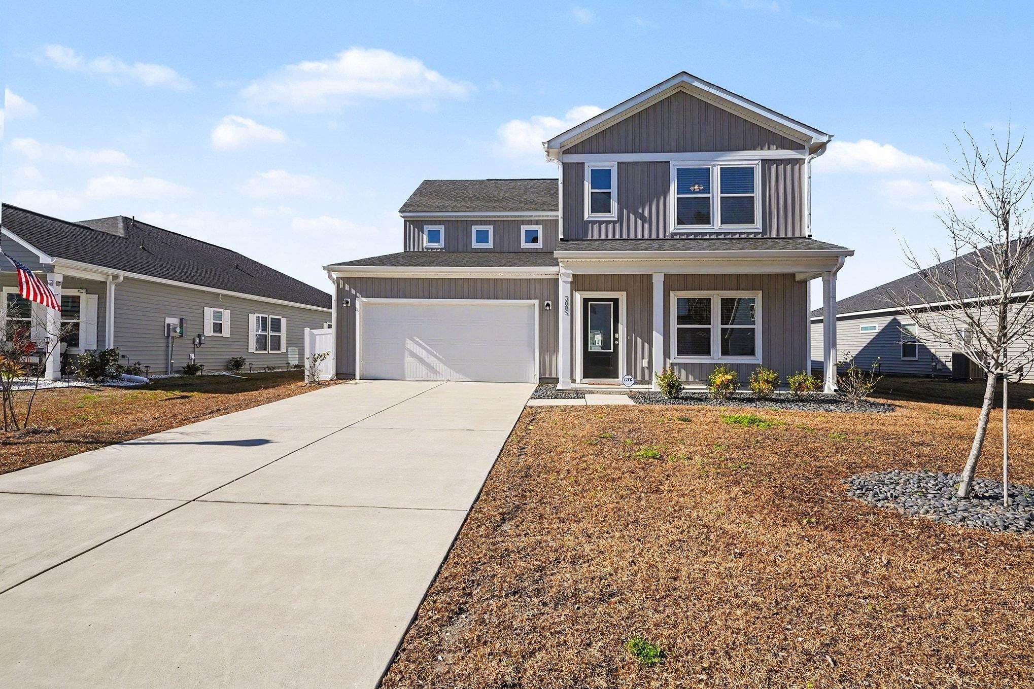 Welcome to this beautifully maintained 4-bedroom, 2.5-bath home located in the desirable Trieste at Bella Vita community, where modern design meets comfort and style. From the moment you step inside, it’s clear this home has been lovingly cared for and meticulously maintained. The dramatic open-to-below main living space features soaring 20-foot ceilings and a loft above, allowing abundant natural light to fill the home and create an inviting, airy atmosphere. The thoughtfully designed floor plan includes a first-floor primary suite with an en suite bathroom featuring a dual-sink vanity and a walk-in shower. The main living area is centered around a cozy gas fireplace and finished with LVP flooring, which has been kept in excellent condition and reflects the owners’ attention to detail. The gourmet kitchen showcases stainless steel appliances, a tiled backsplash, a pantry, and well-maintained cabinetry—perfect for both everyday living and entertaining. A versatile den with glass French doors offers additional living space and can easily function as a home office, playroom, or sitting area. Upstairs, the three spacious bedrooms provide ample closet space, and the open loft continues the home’s bright and open feel. Outside, the covered rear patio offers a peaceful place to relax, while the fully fenced backyard provides privacy and a safe space for pets or children. The yard and exterior have been carefully maintained, further reflecting the pride the owners have taken in this home. Located just minutes from the Grand Strand’s beaches, top-rated golf, shopping, dining, and entertainment, Trieste at Bella Vita offers both convenience and a welcoming community atmosphere. Residents enjoy excellent onsite amenities, including a community pool. This home truly shows like new, and the level of care and attention throughout makes it a standout opportunity.