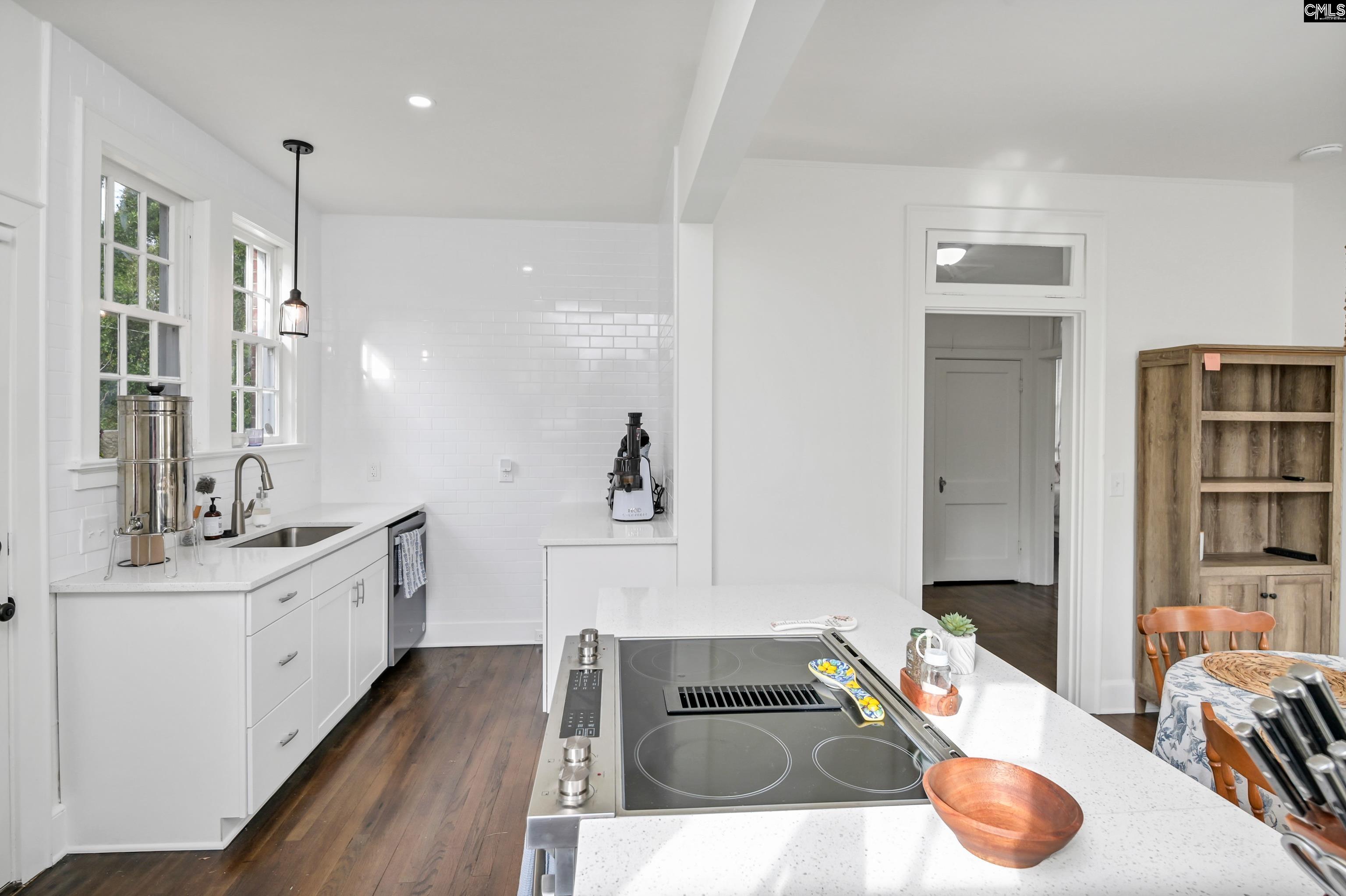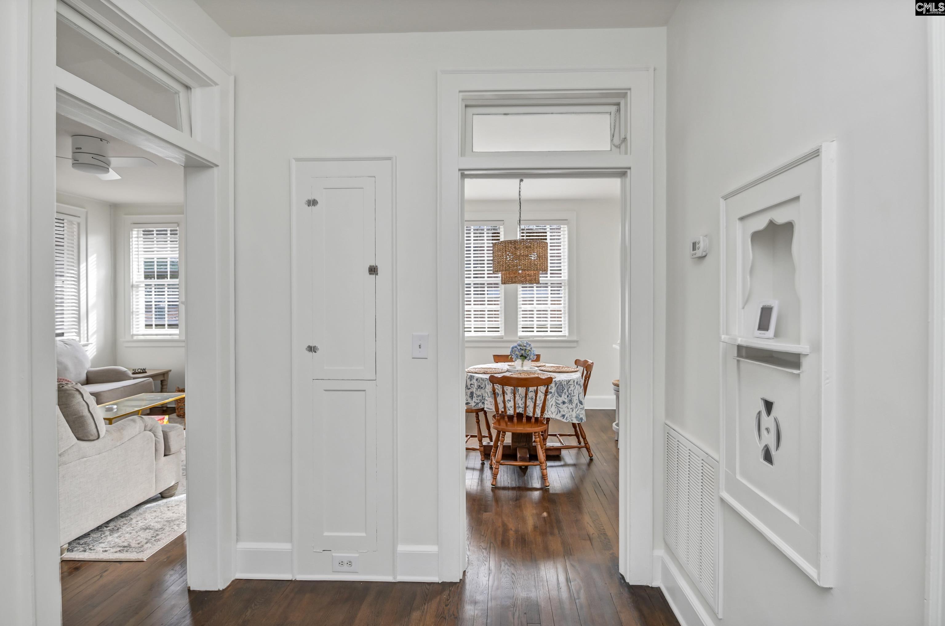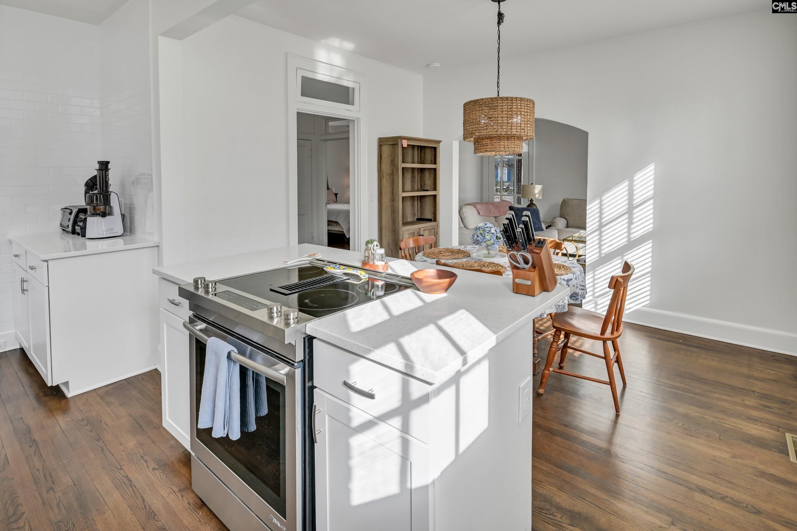 Classic, in-town, renovated brick bungalow in historic Earlewood located on a tree lined street that dead ends into Marshall Park. This house is close to everything! Only ½ block to Marshall Park, 6 blocks to Earlewood Park, 1.6 miles to Segra Park baseball stadium / BullStreet District, 1.2 miles to Curiosity Coffee, Indah Coffee & the War Mouth, and minutes from Main St shopping / dining, the State House, the Vista, USC, and easy access to I-77 & I-26. Features include a wide/deep front porch; hardwoods throughout; lots of gorgeous windows with true divided lites for amazing natural light; transoms throughout; formal living room w/fireplace and arched opening; formal dining room; renovated, open kitchen w/island, smooth top downdraft cooktop, stainless steel appliances, and subway tile walls; classic square central hall; two large bedrooms and renovated bathroom; large back porch / utility room (not currently counted in sqft); and huge backyard w/detached workshop (possible to convert back to garage). Renovations 2023/2024 include: opening kitchen to dining area; new kitchen including appliances, cabinets, lights, fixtures; renovation of bathroom w/removal of window in shower and installation of transom window, new wall tile, new floor tile, new light and plumbing fixtures, and refinished tub; paint throughout the house; refinished hardwoods; gas, tankless water heater; new light fixtures throughout; new ductwork; and crawlspace sealing and encapsulation w/crawlspace dehumidifier. Disclaimer: CMLS has not reviewed and, therefore, does not endorse vendors who may appear in listings.