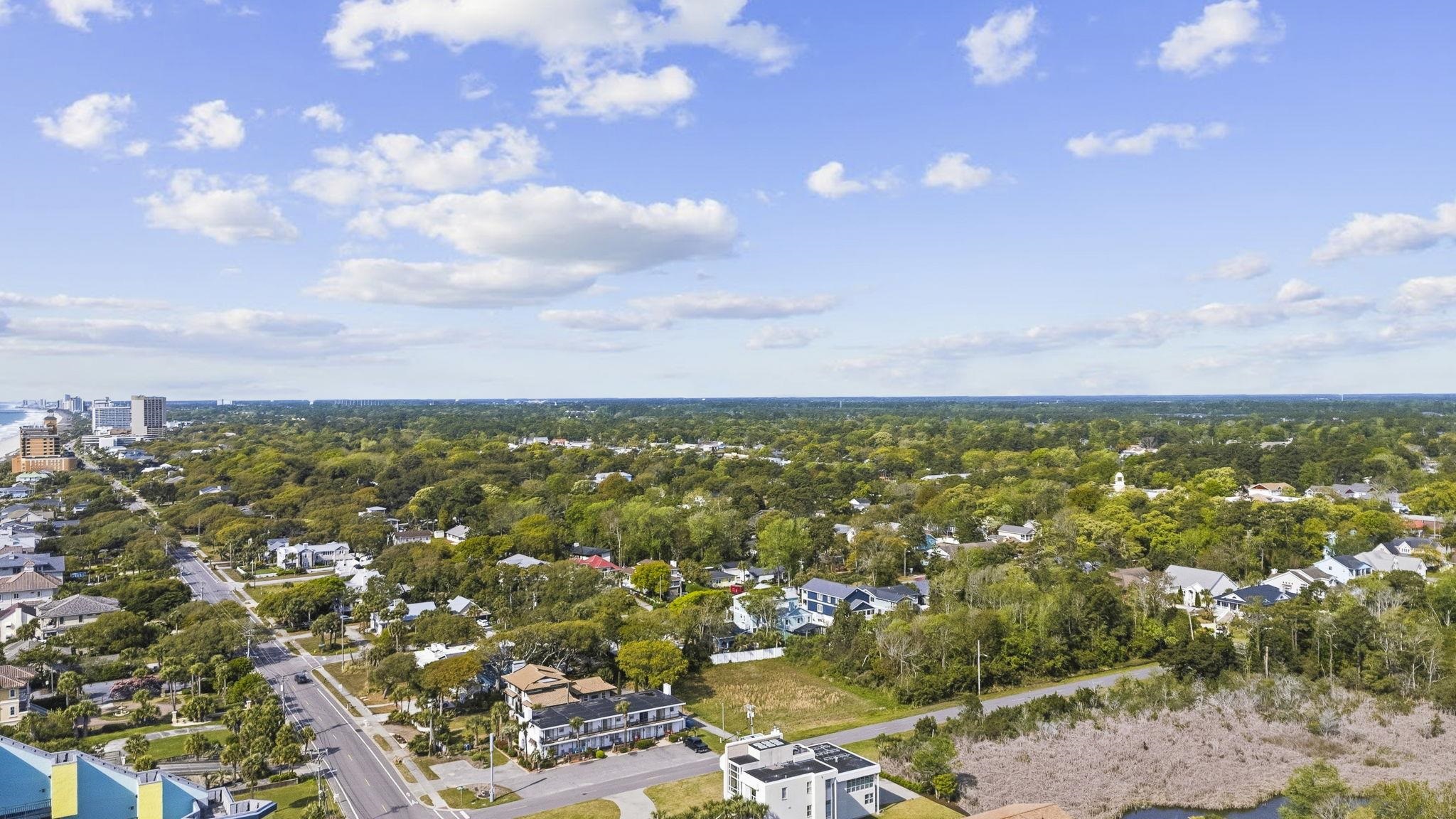 Opportunities like this don't come twice. Two contiguous lots totaling nearly half an acre in the coveted Forest Dunes neighborhood, one of Myrtle Beach's most sought-after near-beach enclaves between 48th and 79th Avenues North. Both lots are cleared, level, and ready to build, with public water, sewer, and all utilities already to the site. No HOA. No complications. Just land with extraordinary potential in a location that speaks for itself. Walk to the ocean. Literally. Step off your future porch, cross the street, and feel sand between your toes. From an elevated custom home on this footprint, you'll capture stunning Atlantic Ocean views to the east and sweeping sunset views to the west. The vision is already done for you. Included with this listing is a complete set of architectural plans for a three-story luxury coastal home that makes full use of this elevated corner lot. The ground level features 2 garage entrances capable of holding up to 6 vehicles and private entry built on a striking stone-clad foundation. The main living floor opens into a grand covered porch, an open-concept great room, chef's kitchen, dining room, master suite with spa bath, pantry, and laundry all wrapped by expansive covered porches. The third floor adds additional bedrooms, a loft and bonus room, a second laundry, and covered porches with commanding ocean sight lines. The exterior showcases white stucco, dark architectural shingles, warm wood garage doors, black-framed oversized windows, Juliet balconies, and a stunning upper observation deck. These are not concept sketches — they are engineered architectural plans ready to advance toward permitting. This property also offers a rare investor's choice. Use the full 0.44 acres for a single grand estate that will turn heads on 68th Avenue, or divide and develop two separate luxury homes on 0.22-acre lots — each with its own address, ocean proximity, and exceptional rental or resale upside. Given recent comparable lot sales in this corridor, the land alone supports compelling numbers. Layer in turnkey architectural plans and a premium coastal build program, and the return potential becomes exceptional by any measure. R-10 zoning, inside city limits, east of Business 17, corner lot with city street access and blacktop road frontage. Whether you are a discerning buyer building your forever beach home or an investor seeking your next high-performing coastal asset — this is your canvas. The ocean is waiting.