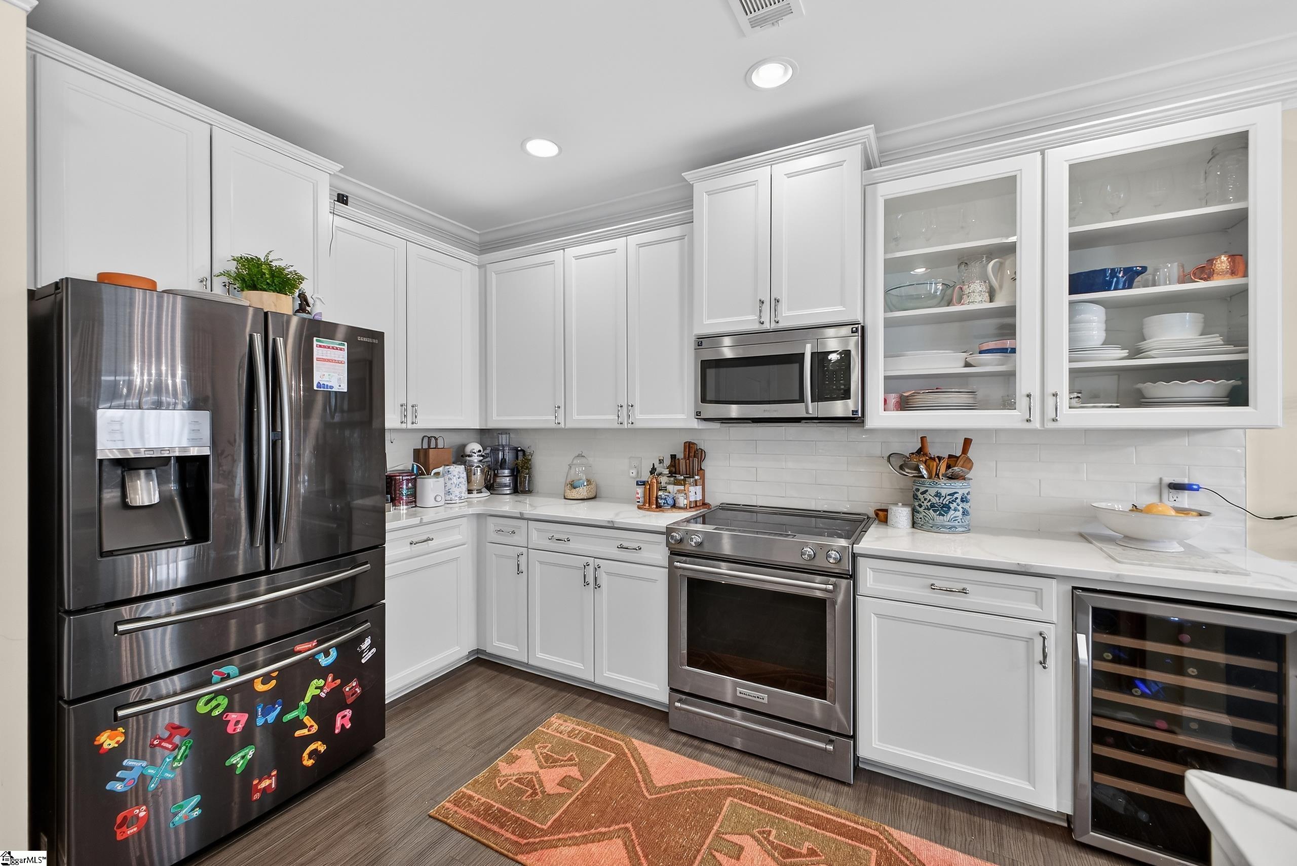 Welcome to 301 Cypress Hill in desirable Harrison Cove— a beautifully maintained home in the heart of Five Forks and just minutes to BridgeWay Station, I-385, and Downtown Greenville. Perfectly positioned on a large corner lot, this property offers both curb appeal and functional living inside and out. A charming rocking chair front porch invites you in, where you’ll immediately notice the detailed craftsmanship — crown molding throughout the downstairs, gorgeous trim work in the foyer, and an elegant formal dining room with plantation shutters. The open floor plan flows seamlessly into a large living room, ideal for gatherings or cozy evenings at home by the fireplace. The living room has an elegant built in bookcase that really accents the space. The kitchen features granite countertops with updated epoxy finish, a wine fridge, and generous prep space, making it both stylish and practical. A rare and desirable feature, this home includes a bedroom and full bath on the main level, perfect for guests or multi-generational living. Upstairs, you’ll find brand new carpet throughout and the primary suite boasts a gorgeous main shower designed as a spa-like retreat with beautiful finishes and a spacious feel. There are two more bedrooms and a large upstairs loft, perfect for an additional living room, office, playroom or workout space. Step outside to your private backyard oasis — a huge paved patio with pergola, ideal for entertaining. There’s still plenty of green space for play, pets or gardening. The fence is accented with gorgeous stone pillars, adding a custom, upscale touch. Additional highlights include elevated storage shelves in the garage, paid-off solar panels for energy efficiency and long-term savings, custom closet upgrades and a well-maintained condition throughout. The lights, downstairs HVAC and security system are wirelessly controlled using your phone. Downstairs lights can also change to different hues/colors. Irrigation system in the front yard. This home blends thoughtful upgrades, ideal location, and versatile living spaces — all in one of Simpsonville's most desirable areas with great schools!