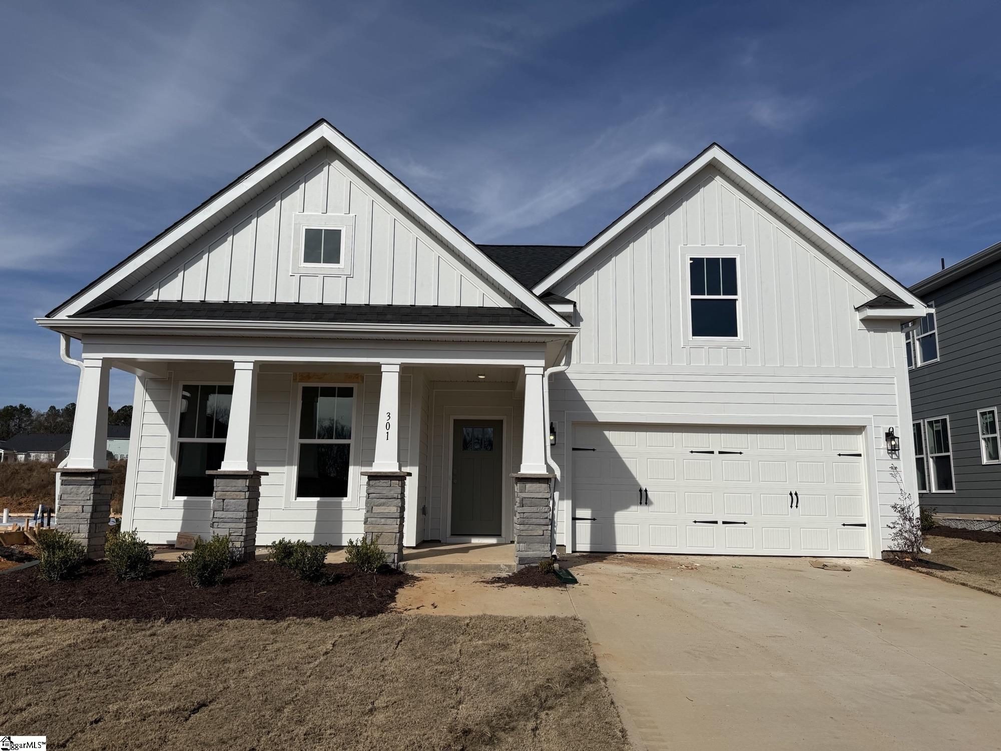 Welcome to Mulberry Estates. The only single family community in Simpsonville with future access to the Swamp Rabbit Trail. The Parker offers comfortable main-floor living with an open-concept design. The spacious foyer leads to two bedrooms and a full bath before opening into a bright living area with high ceilings and tall windows for lots of natural light along with a cozy gas fireplace with stone surround. The chef’s kitchen features beautiful white cabinetry, light Quartz countertops, an oversized island, tiled backsplash, under-cabinet lighting, and stainless steel gas appliances. The breakfast room leads out to the covered back porch overlooking your backyard. The Primary suite is situated off the living room and includes double sinks, a generous walk in closet and tiled shower with seat and glass door. Upstairs is an additional bedroom and full bathroom. Smart home technology, energy-efficient design, and a dedicated local warranty team ensure long-term comfort and convenience. Centrally located between two of Greenville County's fastest growing cities. Mulberry Estates has premier craftsman style floorplans including first or second level primary suites, James Hardie ColorPlus siding, open concept living and designs for all lifestyles. Desirable future in-community access to the Swamp Rabbit Trail. Under 5 minutes from I-385 and Harrison Bridge Rd. Surrounded by top-rated schools including the new Fountain Inn High School. Immerse yourself in entertainment options with the Heritage Park Amphitheater being just around the corner. Explore charming downtown Fountain Inn with the Farmer’s Market, Shopping, and Dining only five minutes from your doorstep. Plus, convenient retail nearby with Target, Publix, and more off of Fairview Road. This home is almost complete so come by today for your personal tour and make Mulberry Estates your new home! See Sales Agent for additional pricing information.