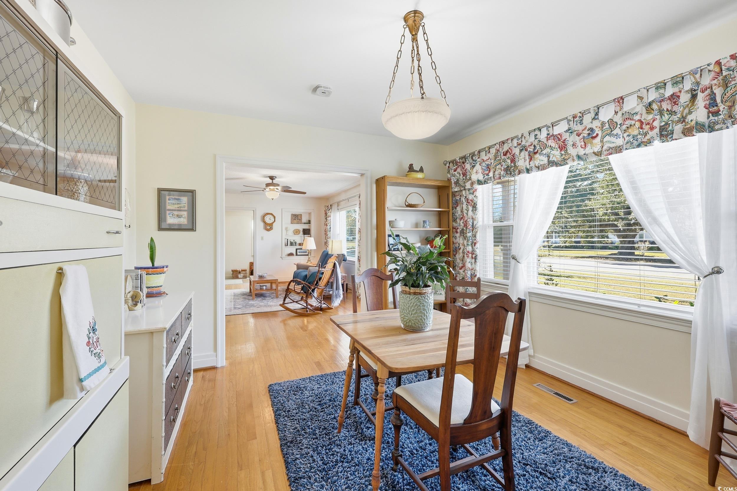 Charming 1950's brick home nestled on a desirable corner lot in the heart of Andrews.This quaint residence features beautiful hardwood floors that add warmth and character throughout. This home offers a perfect blend of vintage and modern comfort. There are 2 bedroom and 2 baths with two non conforming opportunities for office space, loft, or an extra bedroom. There is plenty of storage located off the carport along with a storage building. Enjoy the peaceful small town life style while being 15 minutes away from Historic Georgetown. This home has been well maintained and is a must see!