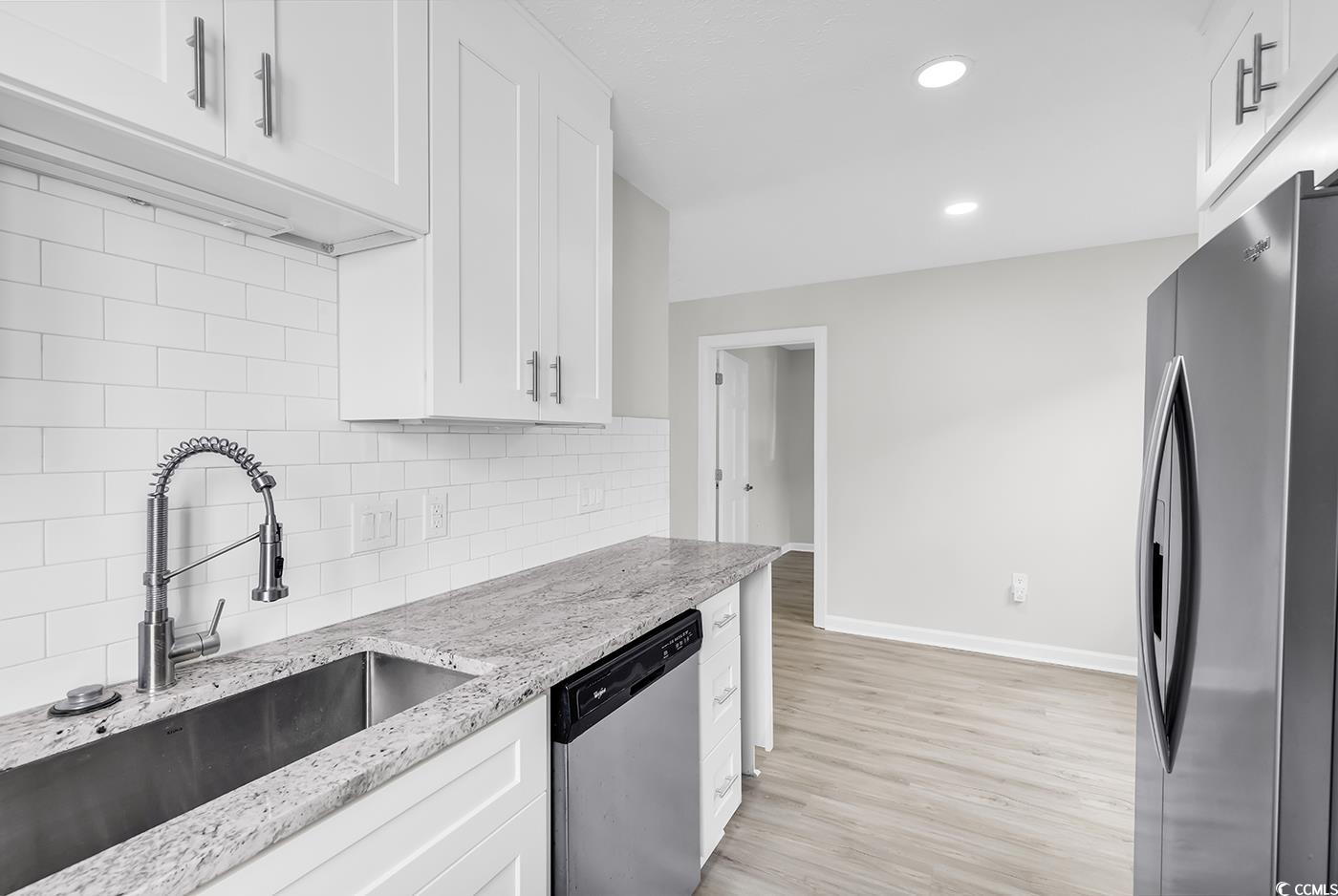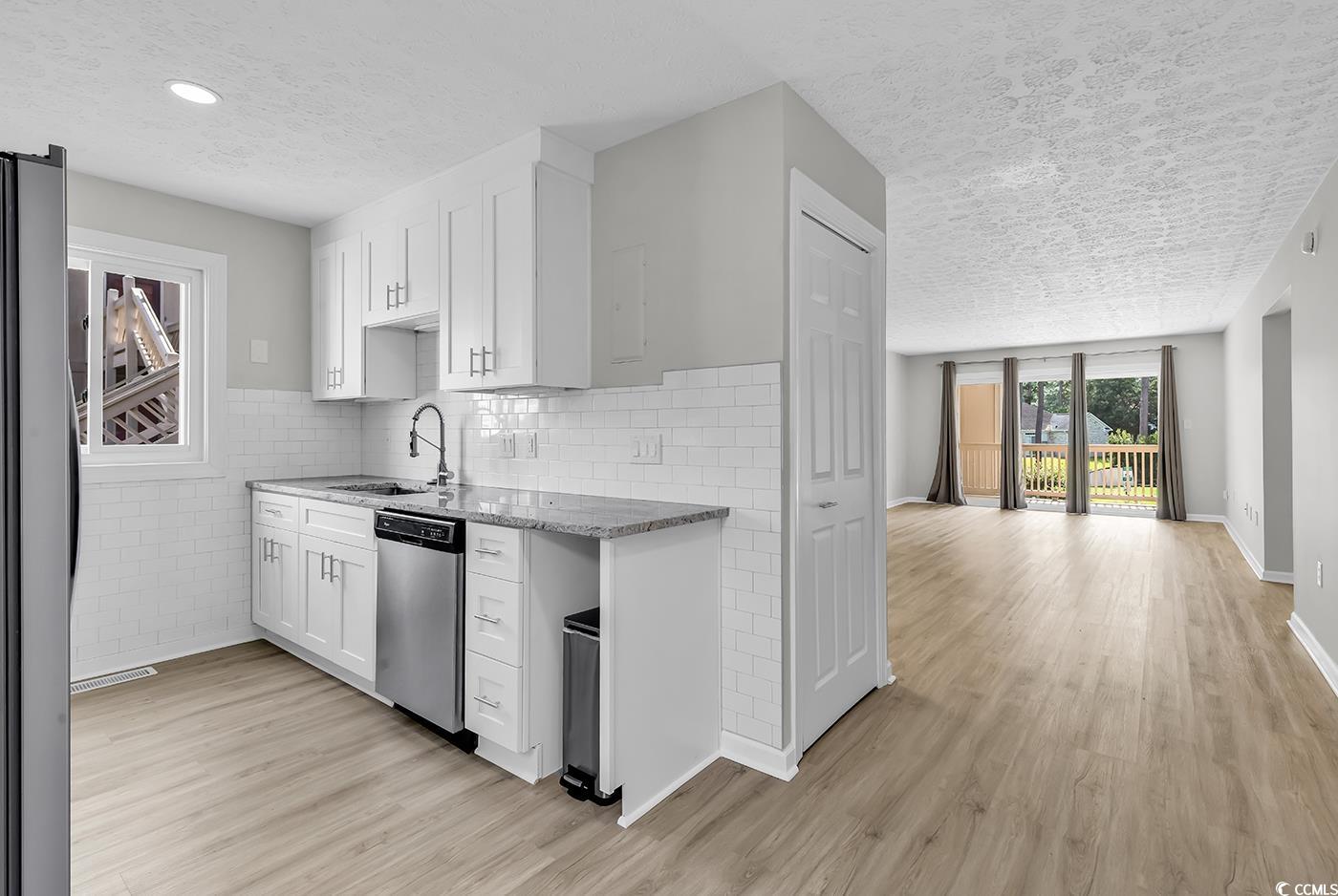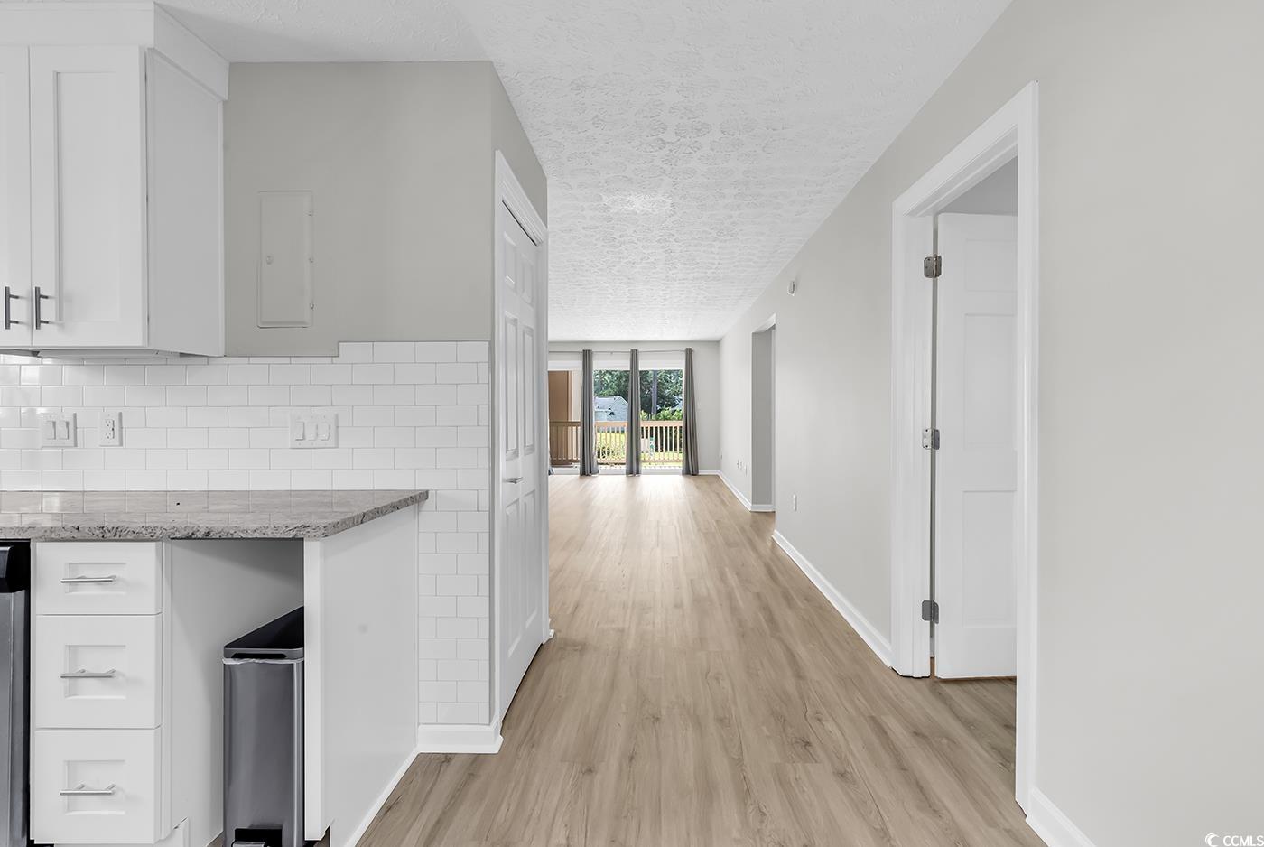 Renovated top to bottom, this Shorewood unit located less than two miles from the ocean in the heart of Myrtle Beach is literally bursting with upgrades! As you step inside, you will notice new Luxury Vinyl Plank flooring that flows past the wood burning fireplace toward the new 3-panel sliding glass door offering access to the sprawling rear balcony. The kitchen was gutted and now comes equipped with new white shaker cabinets with under cabinet lighting, new granite countertops with backsplash, a new garbage disposal and an extended laundry closet that accommodates a full-size washer & dryer! The owner's suite also boasts a new 6-foot slider, and both bathrooms were updated with custom tile showers in a previous renovation. Other notable features include: new drywall, new trim, new windows, new smoke detectors, fresh paint throughout. Shorewood is situated in a prime location close to Broadway at the Beach and offers a fabulous community pool. Call your agent and schedule a showing today!