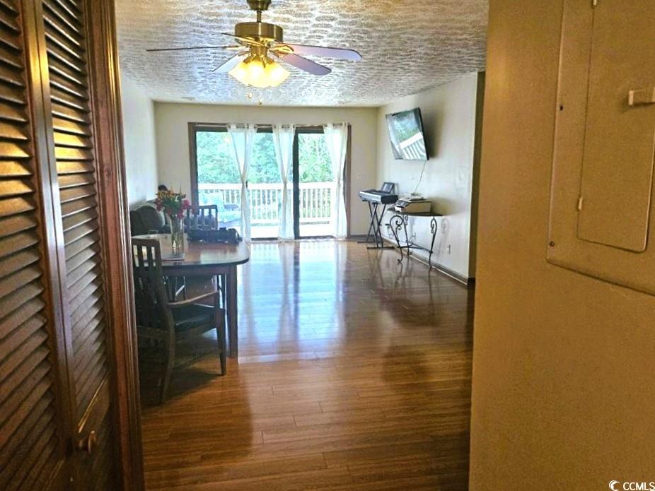 POND AND GOLF COURSE VIEWS! This spacious 2-bedroom 2-full bath condo is only 10 minutes from the Ocean! Upon entering the unit, you immediately see an open, spacious family room with wood floors, lots of natural light, and plenty of space to create a study or game area. Each bedroom has new carpet, ample closet space, and an adjoining bathroom for convenience and privacy. Views of the pond and golf course can be enjoyed from both the family room and the master bedroom suite, and both provide access to an expansive 24-foot deck, perfect for entertaining, congregating, or just sitting back and relaxing while enjoying the pond and golf course views of Myrtlewood's 36-hole course. The HOA includes a community pool and picnic area, insurance, cable, water/sewer, internet, trash removal, and pest control. The detached storage shed is perfect for all your golf/beach gear. This condo is in one of MB's most popular golf communities and just 2 blocks from Broadway at the Beach—a sprawling 350-acre outdoor entertainment area offering unique shops, restaurants, entertainment venues, the impressive Ripley's Aquarium, and more. Just add your personal touches and decor— make this your primary or vacation home at the Beach!