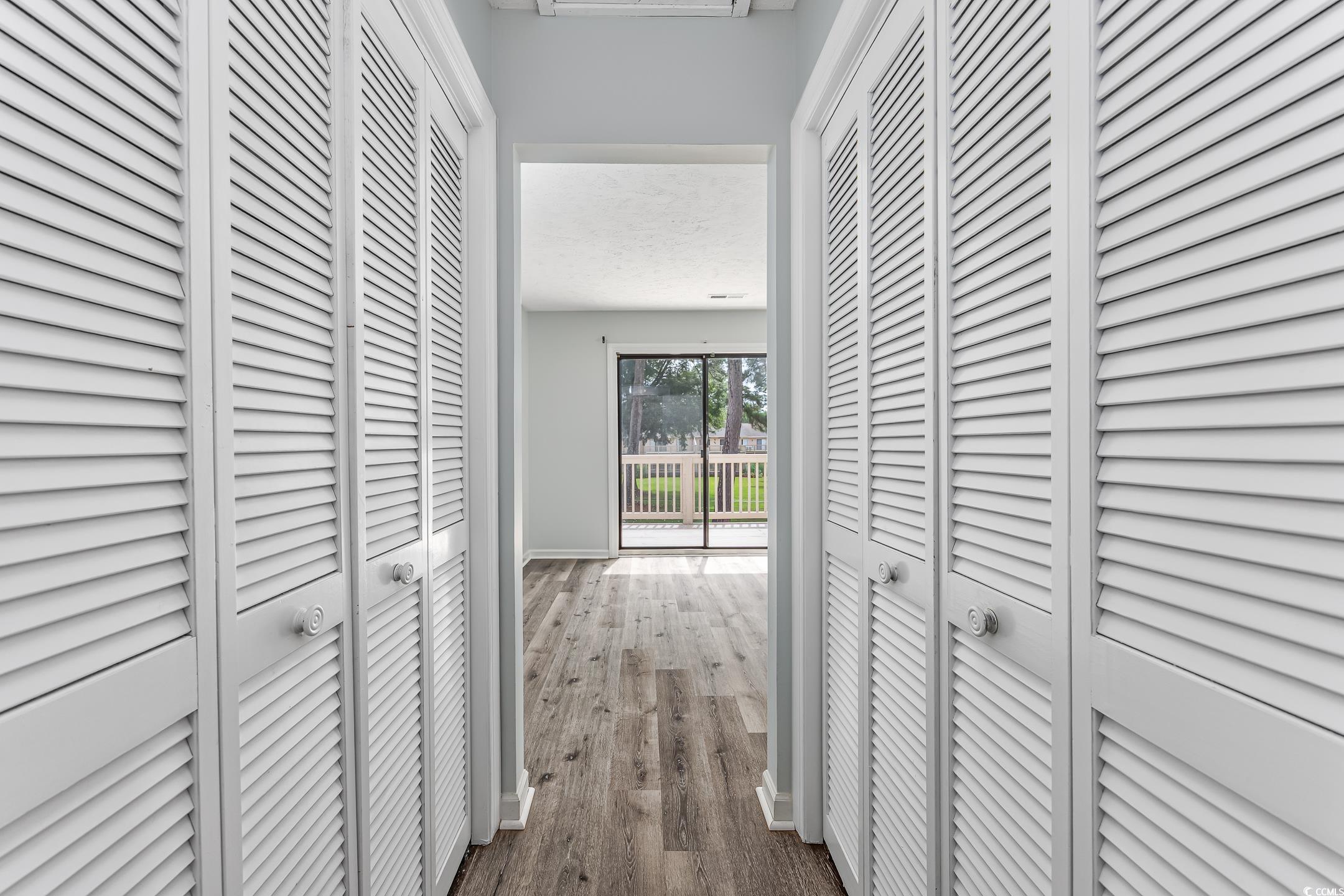 OPEN HOUSE February 14th from 11AM-3PM...Prime Location! Pristine 2-bedroom, 2-bathroom single-level end-unit condo, mere minutes from the beach, Broadway, restaurants, shopping venues, golf courses, and healthcare services. This gem boasts a bright, airy open-concept layout with hurricane-rated. windows, a sturdy storm door, new hot water heater, and a new HVAC (2026) system backed by a transferable warranty. Fresh luxury vinyl plank flooring and a full repaint were just completed (carpet-free throughout)! The current owner has upgraded the HVAC ductwork, front door, stainless steel dishwasher, and garbage disposal during their time of ownership. Plus, the HOA recently installed new roofs. throughout the community! The generous living room opens via a wide sliding glass door to an expansive deck (renewed by HOA in 2023), which stretches across both the living area and primary suite. The primary bedroom offers its own sliding door to the deck, an ensuite bathroom, and dual closets. Take a quick stroll to the community pool! Includes a secure private storage locker right by the parking area—ideal for your beach gear, pool toys, or golf clubs! perks cover pool access, master insurance, cable & high-speed internet, and all common-area upkeep. A stone's throw (walk, bike, or quick drive) to Broadway at the Beach—perfect as a rental investment, vacation retreat, or forever home! Contact us today to book your private tour! This lovely condo is just a short walk/bike ride/car ride to Broadway at the beach making it perfect for an investment property/2nd home or permanent residence! Call today to schedule your showing!