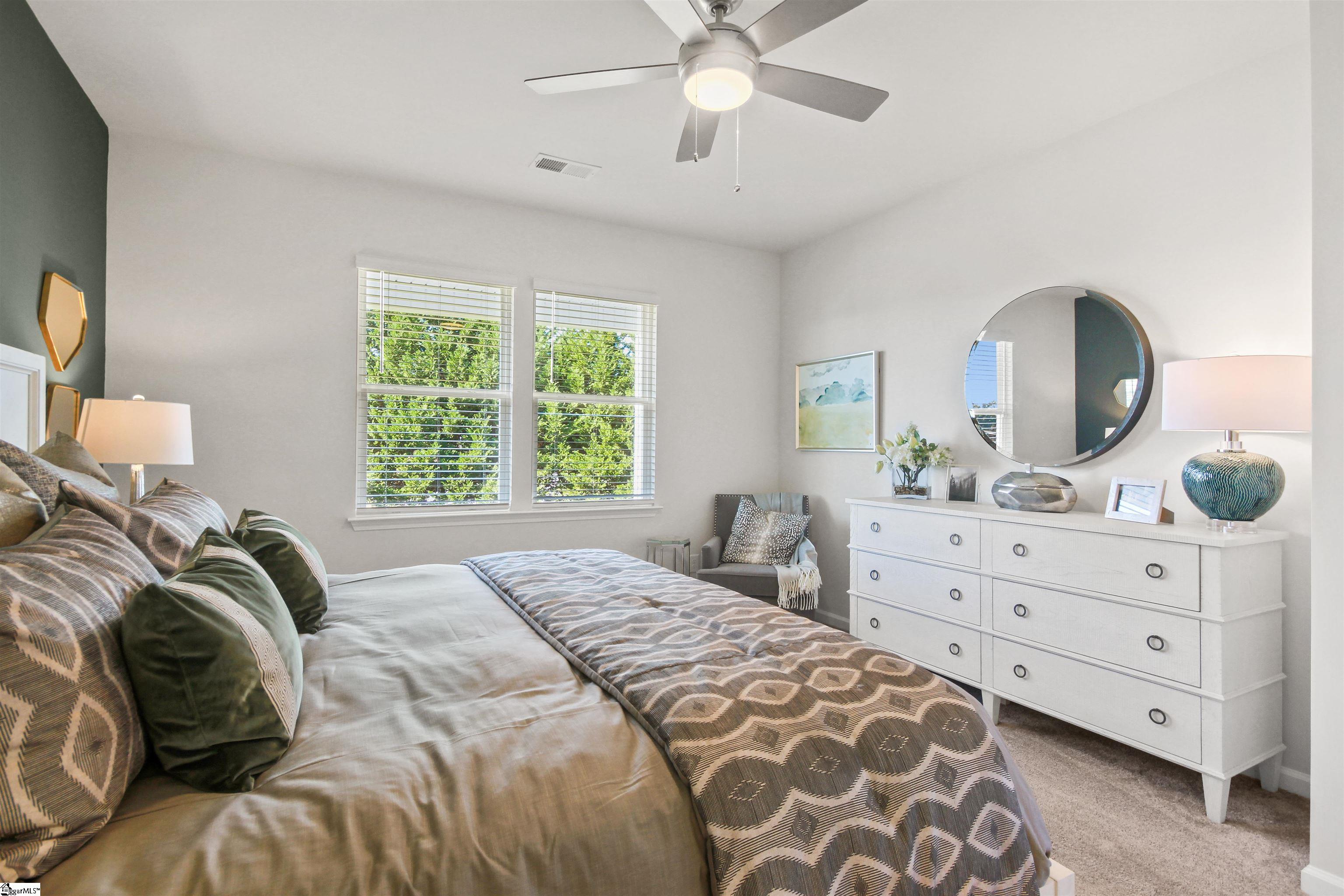 This is the LAST Cade "To Be Built" at Ashwood Meadows. 4 bedrooms, 2.5 baths, 2 car garage and a covered patio with a main-level primary bedroom. Upon entering the home you’ll travel down a hallway with a half bath eventually leading to an open concept kitchen, dining and living room. A gourmet kitchen includes a large island with elegant pendant lighting. The kitchen is a chefs delight featuring beautiful white cabinets, quartz countertops for food prep and stainless steel appliances, including a gas five burner range. As the heart of the home this space is the perfect place for gathering with friends and family. Large windows throughout the first floor allow for an abundance of natural light to pour into the home. The dining and living room combination is a beautiful space for meals, good conversation or watching your favorite movie. The main level primary bedroom will delight you with plenty of room for relaxing after a long day. The on-suite bathroom includes a dual vanity, step in shower, window to add natural light and walk in closet. At the back of the home is a covered patio for outdoor living. Enjoy your favorite beverage, a meal or quite time with your favorite book. The laundry room is also located on the main floor with easy access from the primary bedroom. Upstairs you’ll find a spacious loft and three more bedrooms. Use this space as a second living area, kids play area, theater, workout room or enjoying your favorite hobby. With three bedrooms upstairs there’s sure to be room for kids, guests or a home office. The upstairs bath in this home has a shower/tub combo and a window for plenty of natural light. This homesite backs up to tress for added privacy and a nice view. Nestled in the desirable Ashwood Meadows community, this home is just minutes from shopping, dining, and entertainment options, with easy access to I-26 and I-85. Ashwood is 15 minutes to downtown Spartanburg, 50 minutes to downtown Greenville, and a short drive to western North Carolina, where hiking, waterfalls, and scenic mountain drives await. Whether you're starting out, settling down, or somewhere in between, this home delivers the ideal blend of elegance, comfort, and convenience. This neighborhood is USDA eligible. Call to schedule a tour of our model home and community today—your dream home is waiting!