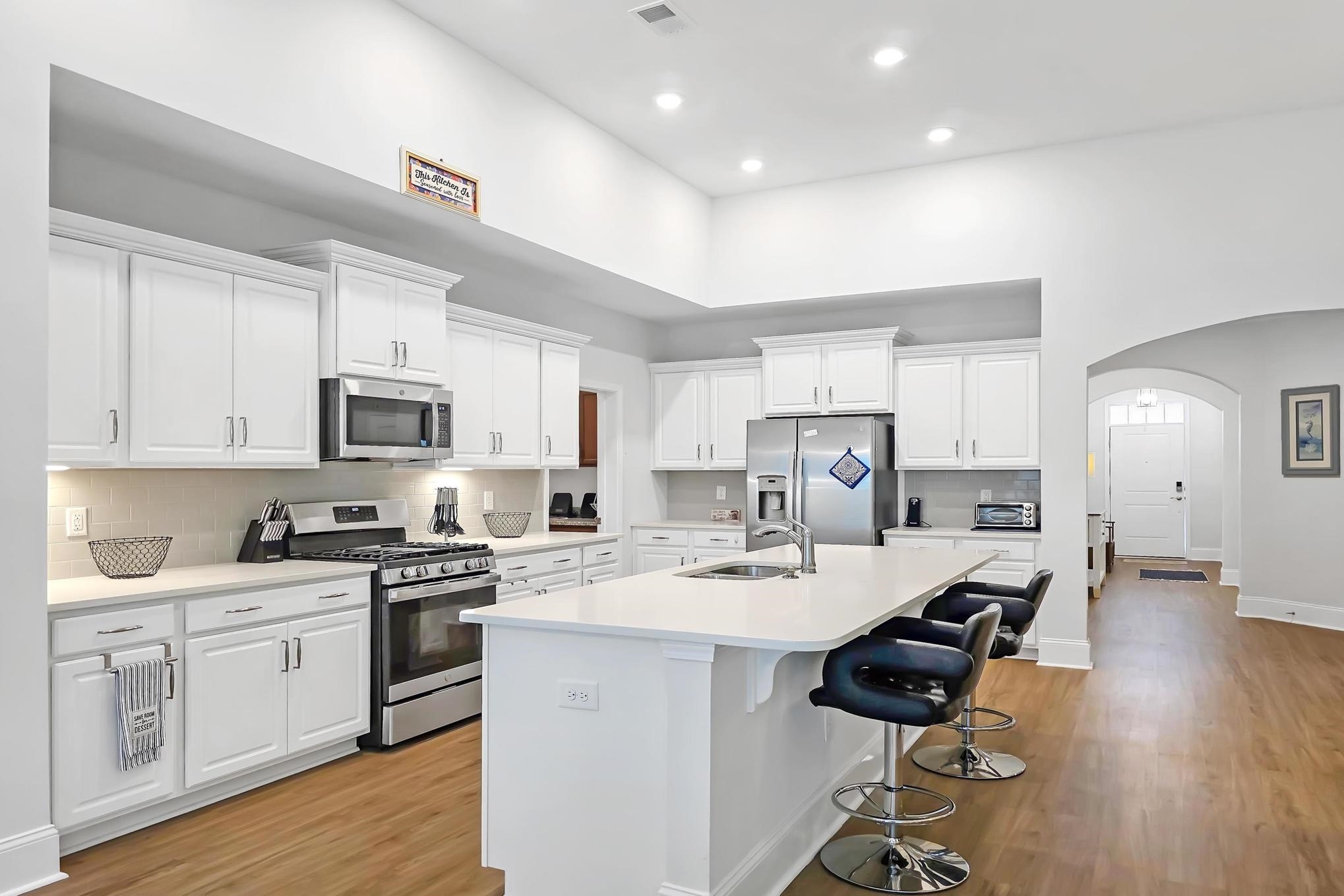 Situated in Cypress Village, a natural gas community, this fully furnished 3BR/3BA home in Little River offers stylish, low-maintenance coastal living. Lightly used as a second home, elegantly decorated in a coastal vibe and truly move-in ready, this home features an open-concept layout with 12’ ceilings, crown molding, LVP flooring in the main areas, and a cozy gas fireplace. The chef’s kitchen includes white cabinets, quartz counters, a subway tile backsplash, stainless steel appliances, and a gas range. The main-level primary suite has a roomy walk-in closet and an en-suite bath with double sinks and a tiled shower with glass enclosure. Ceiling fans in the living room and bedrooms add comfort, while the laundry room off the kitchen offers extra storage with upper and lower cabinets. Extras include an enclosed all-season rear porch, 2-car garage, tankless water heater, and irrigation system. The HOA handles front and side lawn care, and community perks include a resort-style pool, clubhouse, fitness room, pickleball, bocce ball, fishing pond, putting green, BBQ area, and fire pit. Just minutes from the Intracoastal Waterway, beaches, golf, dining, and shopping, it’s coastal Carolina living at its best in a friendly, welcoming neighborhood.