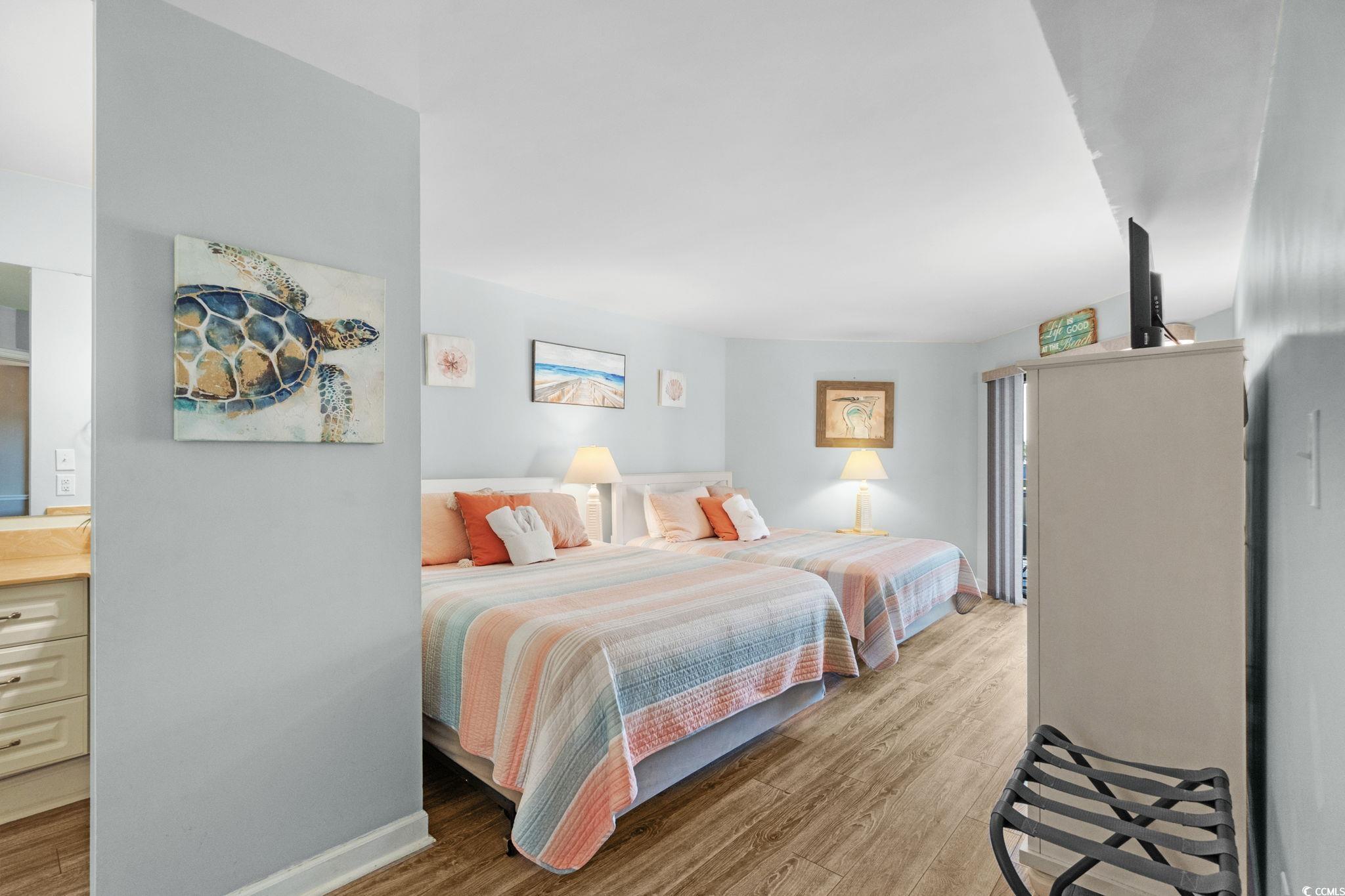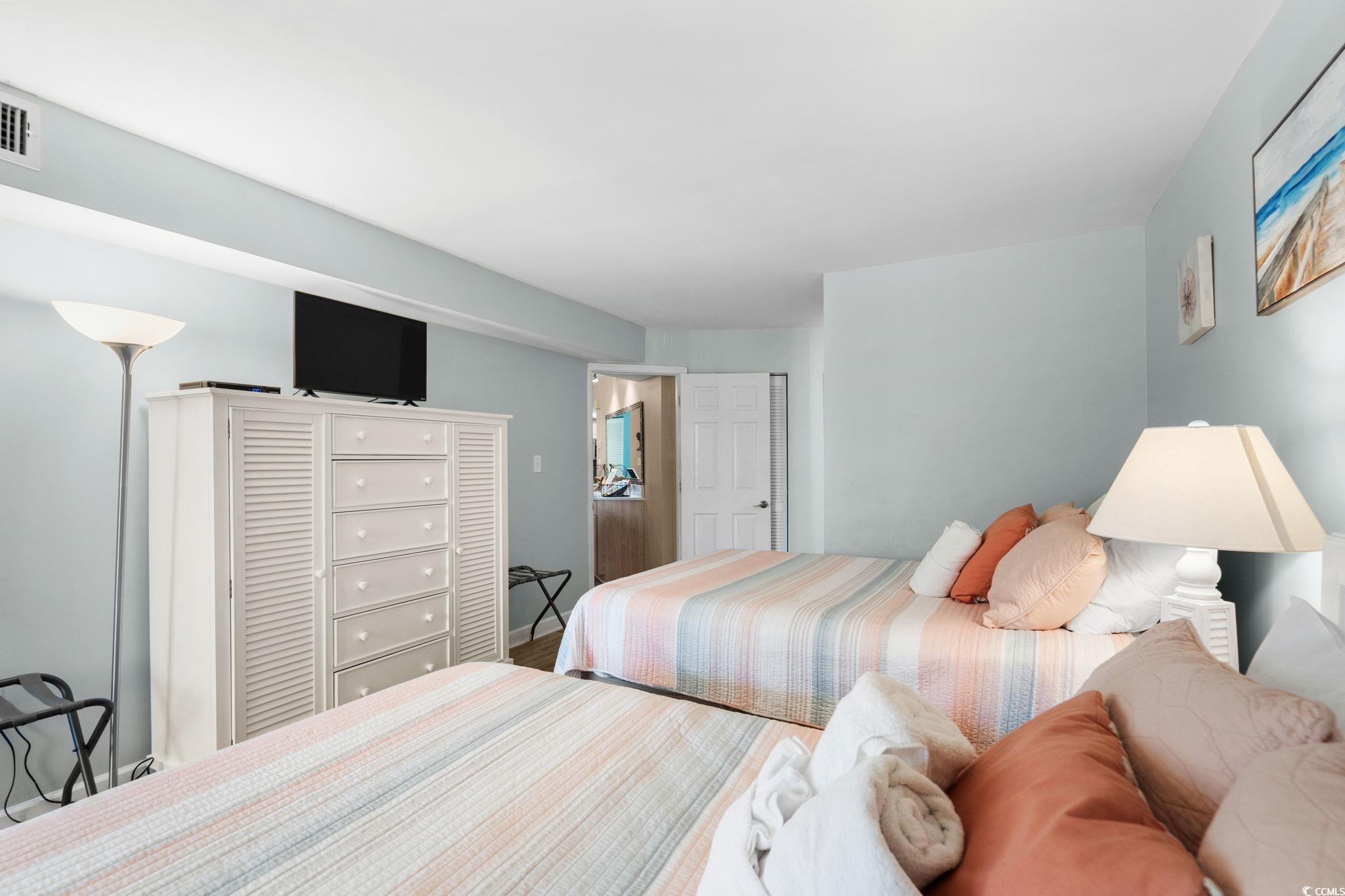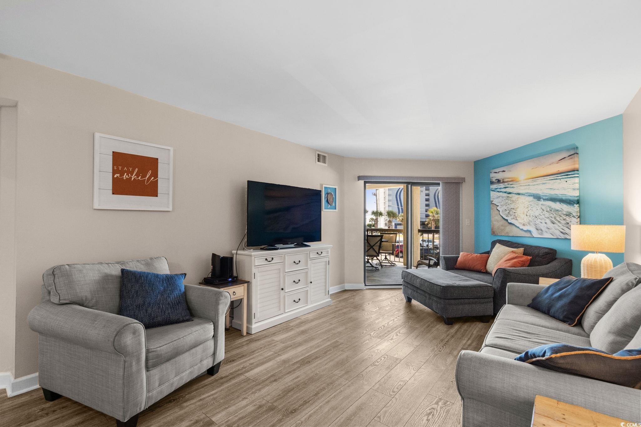 Located just steps away from the beach, this fully furnished 2-bedroom, 2-bathroom condo offers the perfect blend of comfort and convenience. Situated on the second row directly across from the ocean, you'll enjoy easy beach access and stunning views. Inside, the condo features high-quality engineered wood flooring throughout and a modern kitchen with sleek quartz countertops and stainless steel appliances. Recent updates include a newer sofa and chair in the living room, a newer washer and dryer, water heater, dishwasher, and newer queen bed frames with mattresses — making this home truly move-in ready. The spacious primary bedroom opens to a large, tiled balcony — ideal for morning coffee or evening sunsets. The living room also provides balcony access, filling the space with natural light and ocean breezes. The balcony overlooks the community pool, a perfect spot to cool off during warm summer days. Additional conveniences include a storage unit on the lower level for all your beach gear or outdoor hobby equipment. This condo is centrally located on the desirable North end of Myrtle Beach, placing you close to all the area’s top attractions such as Broadway at the Beach, Carolina Opry, renowned restaurants, shopping, golf courses, and medical facilities. Don’t miss this rare opportunity to enjoy beachside living with modern upgrades and unbeatable access to everything Myrtle Beach has to offer. Pack your bags and start living the coastal lifestyle today!
