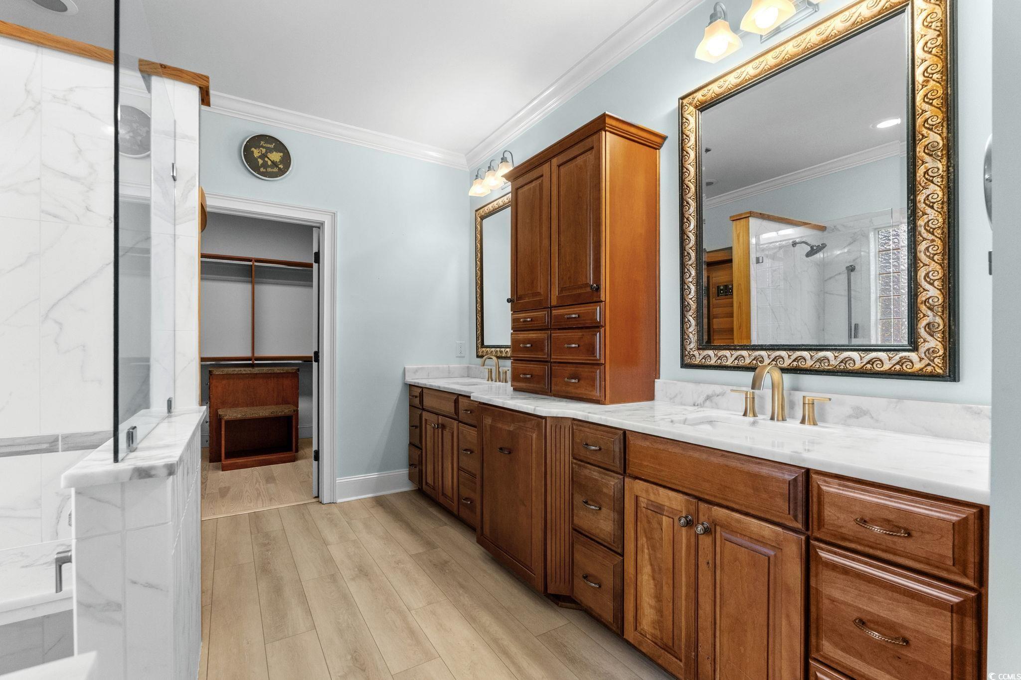 Elegant Spacious living with a fabulous Sunroom overlooking the tropical oasis of a salt water pool and hot tub including artificial turf, Tikki Bar with kitchenette in the back yard. Located in an Unique subdivision - Arcadian Shores within Horry County. Just steps or golf cart ride to the pristine BEACH! Impressive front staircase leads up to the porch for the desired ocean view with six rocking chairs enabling one to relax and breathe crisp ocean air while listening to the waves. Open the double Stained Glass Palm Tree doors that signifies this property as "REGAL PALMS" from the original builder/owner; entering the grand foyer with a crystal chandelier creating illuminating light. Library/office to the right and formal dinning to the left. Pantry closet has built-in shelves next to an updated and spacious dream kitchen for everyday use and entertaining. Step over to a pulchritudinous exquisite wet bar with lights under blue agata stone, with sink, mini fridge, wine cooler, and ice maker. Relax in front of a gas brick fireplace or step out into the sunroom that has stairs inside the lanai leading down to the downstairs back porch and oasis or enter the master suite with windows that let the morning sun coming dancing through. Remodeled master bath includes a personal infrared red/medical sauna for two along with a walk-in shower and the extra convivence of a bidet, rich cherry finish cabinets with two separate sinks. Walk-in closet with built-in closet system has plenty of storage. Laundry room is on second level. Second level, master bedroom and three additional bedrooms with their own private baths on first level. Wood steps leads you to the first floor three bedrooms and along with three full bathrooms. Sitting area including a kitchenette that retreats to the outside patio/pool inside the lanai. Inside Elevator connects 1st and 2nd levels. Two separate garage doors, outside single door into small room with HVAC and two tankless hot water tanks allows entrance on the ground level from the concrete driveway that showcases a circle drive landscaped with white rocks, Agave/Century Plants, Palm trees and various other accent plants including irrigation system. Added feature with Generac Generator for the Solar Panels on the roof that sells back to the power company your excess energy with system including back-up battery . As the builder built this house with quality materials; established in a picturesque setting; what more could you desire or need in owning your own personal resort close to the sea shore!