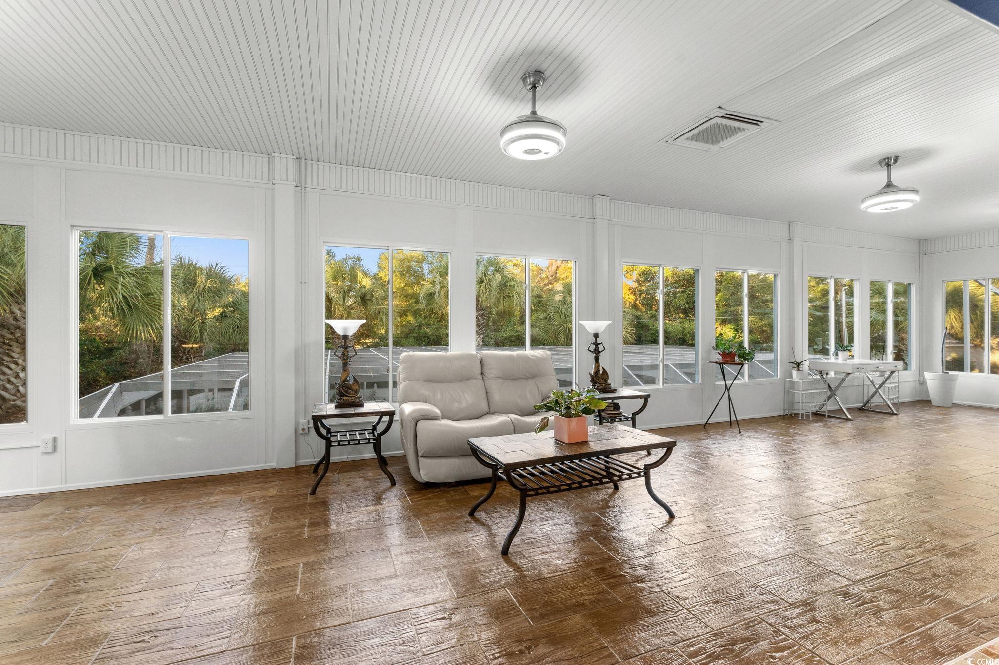 Elegant Spacious living with a fabulous Sunroom overlooking the tropical oasis of a saltwater pool and hot tub, Lanai, including artificial turf, Tiki Bar, gas grill with kitchenette in the back yard. Located in an Unique subdivision - Arcadian Shores within Horry County without a controlling HOA. Just steps or golf cart ride to the pristine BEACH! Enter the double Stained Glass Palm Tree doors that signifies this property as "REGAL PALMS" from the original builder/owner. UPDATED kitchen. A pulchritudinous exquisite wet bar with lights under blue agata stone. Master suite on main floor. Remodeled master bath includes a personal infrared red/medical sauna for two along with a walk-in shower, rich cherry finish cabinets with two separate sinks. Three additional bedrooms & three full baths on first level with a mini kitchen. Inside Elevator connects 1st and 2nd levels. Concrete driveway that showcases a circle drive landscaped with white marble rocks, Agave/Century Plants, Palm trees and various other accent plants includes an irrigation system. Added feature of Solar Panels on the roof that sells electricity back to Santee Cooper the excess energy with system including back-up battery. Close to a million in upgrades since 2018. *Reduced priced below Zillow estimate. A picturesque setting: what more could you desire or need in owning your own personal resort close to the seashore!