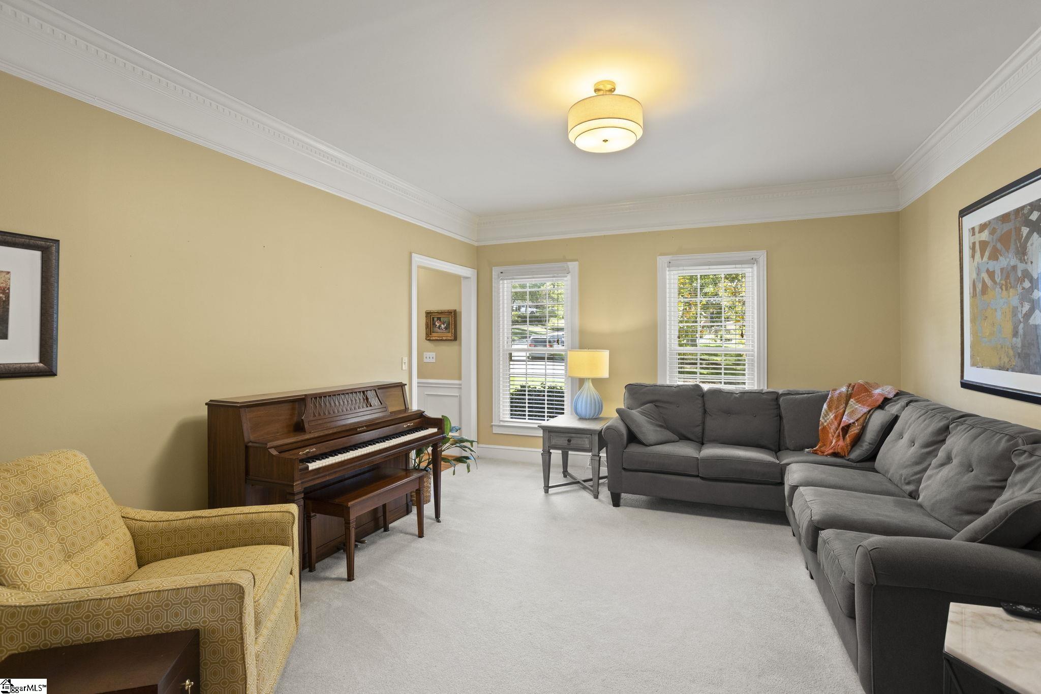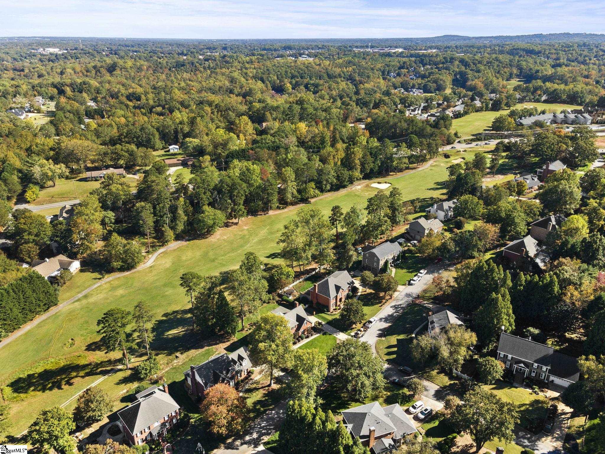 Welcome to 302 Ledgewood Way. This custom-built, all-brick home offers 4 bedrooms, 3 bathrooms, and approximately 2,950 square feet, ideally located in the highly sought-after Stone Creek section of Pebble Creek, overlooking the second hole of the Linkside Golf Course. A welcoming two-story foyer opens to a comfortable living room, a main-level bedroom, and a full bath. The heart of the home features an updated kitchen with granite countertops, a formal dining room, and a breakfast nook that flows into a cozy den with custom built-ins and a brick fireplace. Step outside to a newly built covered deck and stone grilling patio overlooking the spacious backyard, ideal for entertaining. Upstairs, the primary suite offers a generous layout with a walk-in closet and an updated bathroom featuring dual vanities, a custom walk-in shower, and a soaking tub with built-in surround. Two additional bedrooms, a full bath, and a large flex room provide options for a media room, bedroom, or additional living space. Recent updates include a new roof, new carpet, fresh interior paint, double-pane windows, and one newer HVAC unit, offering comfort and peace of mind. A rare opportunity to own a well-maintained home with golf course views in one of Greenville’s most established communities.
