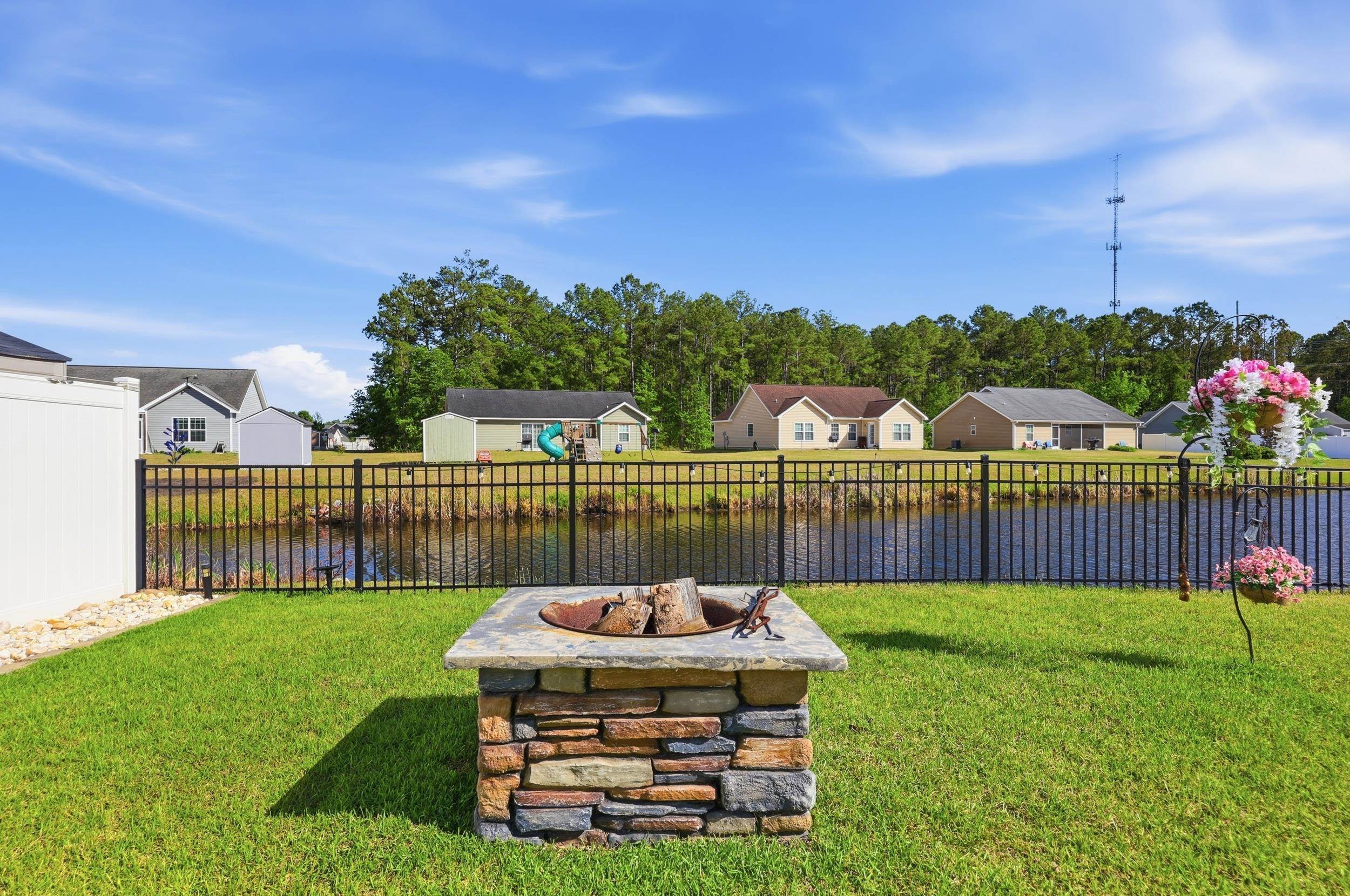Step inside 303 Buelah Circle and realize what true pride of ownership actually is. No expense was spared on the tasteful upgrades that can be seen throughout the property. Discover a well-appointed interior with luxury vinyl plank flooring throughout the main living space. The kitchen has granite countertops, stainless steel appliances, and enhanced water quality thanks to an APEC reverse osmosis drinking and ice-making system. The home also features an Everlast electric water heater with a carbon neutralizer installed in October 2021, offering efficiency and peace of mind. Quality fans and light fixtures can be seen in virtually every room A standout feature is the custom oversized Carolina room—climate-controlled and complete with ceiling fan and custom window shades—providing the perfect space to relax year-round. When you step out back, your private oasis awaits. You're greeted first by a stamped concrete patio that's a sunbather's dream. When you need a break there's a retractable, sunshade awning, creating an ideal setting for day or night outdoor entertaining. It is complete with LED lighting. After some sun, cool off and take a splash in the above-ground pool. Surrounded by extensive landscaping and custom river-stone accents. The Twinpower electric pool filter was professionally installed with proper grounding wire and GFI receptacle. You'll love gathering around the hardscape firepit for cozy evenings under the stars all while taking in the tranquility of your pond. Additional upgrades include replaced entry rear door, a dedicated generator hookup with concrete pad, and a storage shed on its own concrete foundation. There is extensive professional landscaping throughout the grounds including hardscapes and rock gardens with roses, perennial flowers and palm trees. The lush Zoysia grass lawn stays green and hearty year-round, fed by a Rainbird irrigation system. Every corner of the yard has color. This home truly blends comfort, style, and functionality—ready for you to move right in and start enjoying. A rare find and an exceptional value located just minutes to downtown Conway. Don't miss the opportunity to own it.