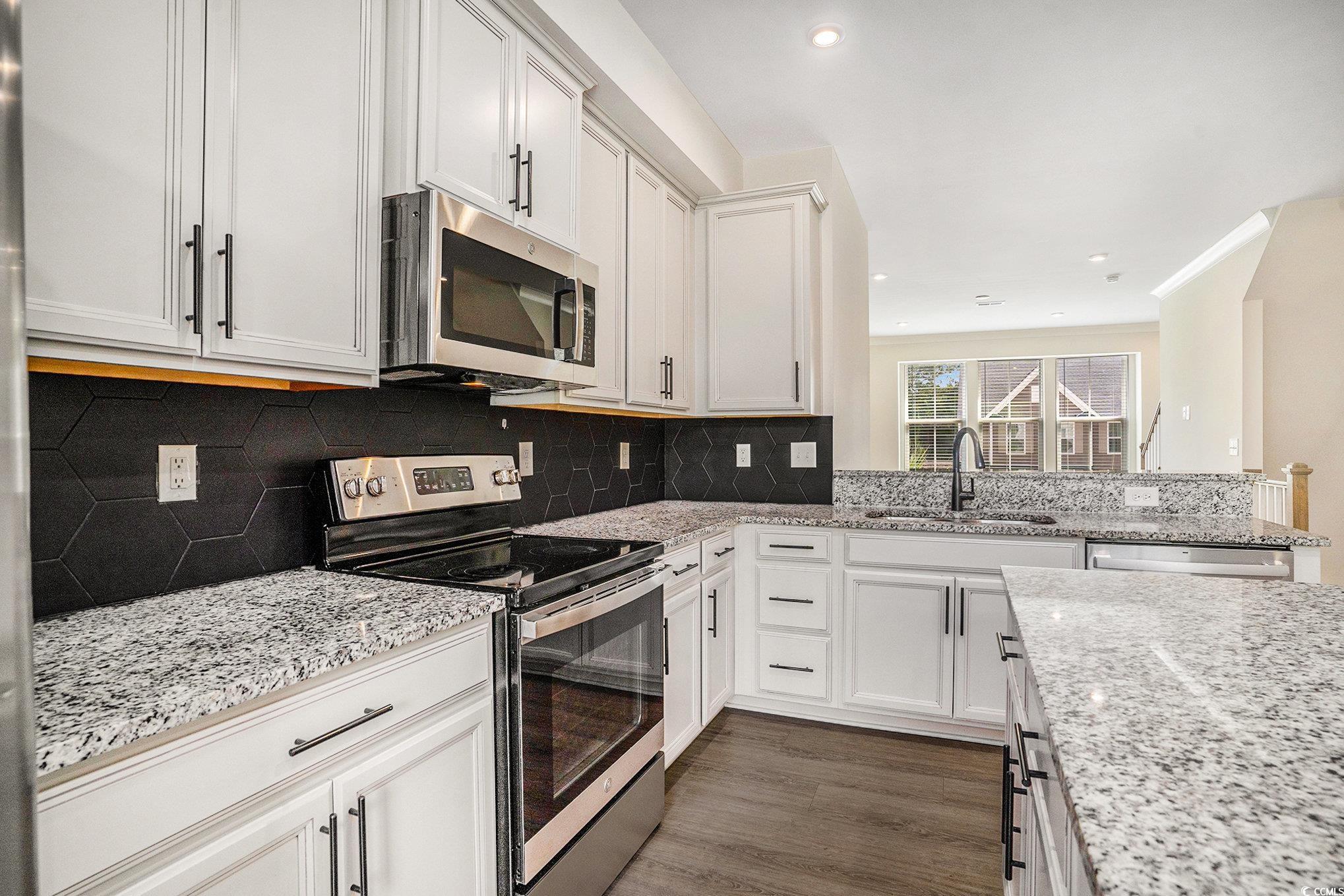 Live in Style or Invest with Confidence! Discover this like-new, modern townhome in Forest Pines, a charming boutique community with only 84 residences. This spacious 3-story Hepburn floor plan features 3 bedrooms, 3.5 bathrooms, a versatile recreation room, a ground-level patio, and a second-story deck off the kitchen. Step inside to find luxury finishes throughout, including: vinyl plank flooring, granite countertops, tile backsplash, stainless steel appliances, tray ceiling and tile walk in shower in the primary suite, as well as ceramic tile in bathrooms & laundry. Fresh paint and brand new carpet for a move-in ready feel. Enjoy the light-filled open-concept layout with two distinct living areas, ideal for modern living. Centrally located in Myrtle Beach near shopping, dining, entertainment, and directly across from Arrowhead Golf Club. Low-maintenance living with an HOA that includes: lawn care, trash service, exterior building insurance and access to the community pool & clubhouse. Whether you're looking for a full-time home, a vacation getaway, or an investment opportunity—this townhome checks all the boxes!