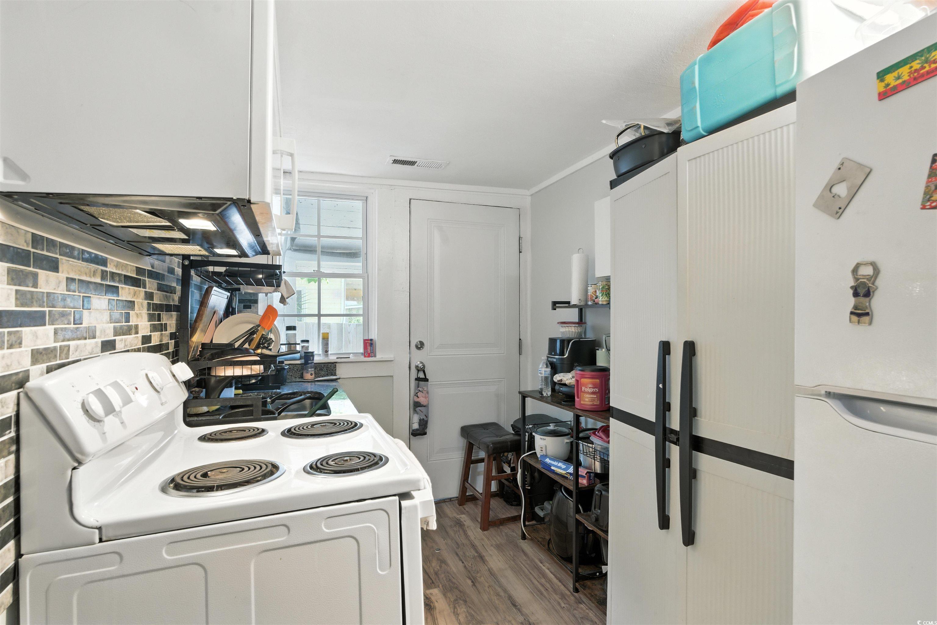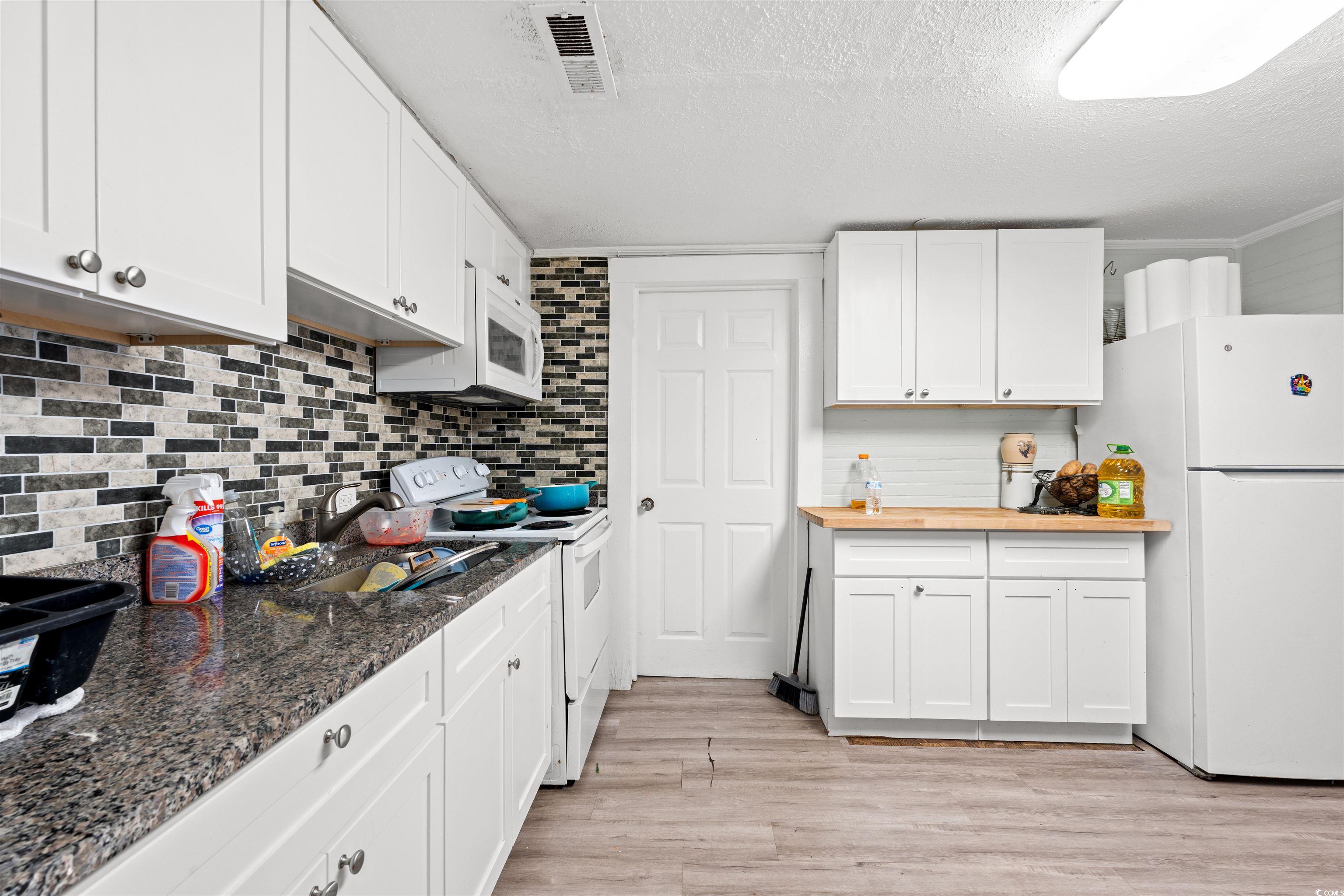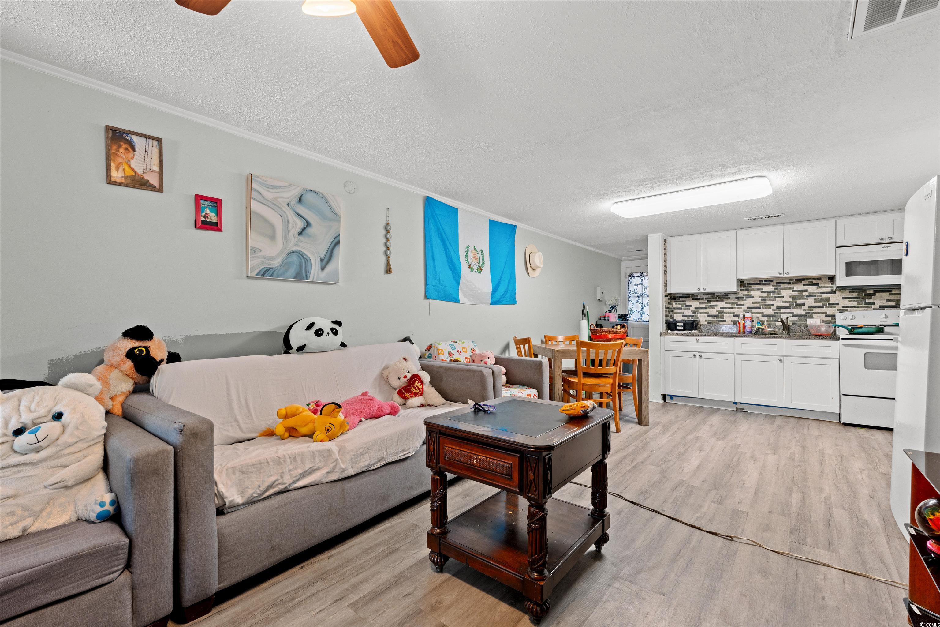 Excellent opportunity to own a quadplex just steps from the beach, with ocean views from the front balcony of one of the two buildings. The property features two separate duplexes, totaling four units. Each unit has two bedrooms. The two units in the two-story building each include one and a half baths, while the units in the other building each have one full bath. Cosmetic updates were completed throughout the property over the past few years, including upgraded flooring, bathroom improvements, paint, tile showers, granite countertops, backsplashes, and stainless steel appliances. Not all features are present in every unit, but each unit includes a mix of these enhancements. Zoned MU-H, the property allows for both short-term and long-term rentals, offering strong flexibility for investors or future redevelopment. Located in the heart of Myrtle Beach, just minutes from shopping, dining, entertainment, and everything the Grand Strand has to offer.