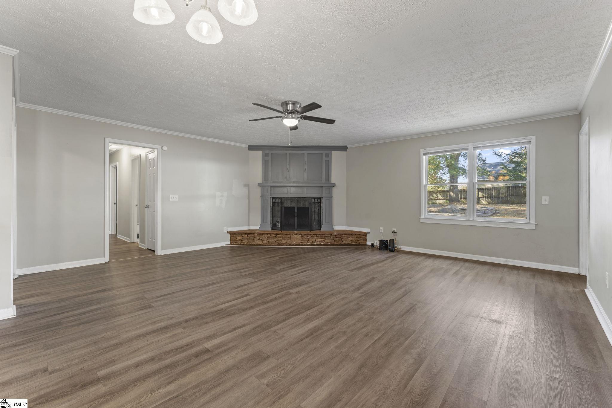 Welcome Home to Easy Living in the Heart of Simpsonville! Discover single-level comfort and timeless appeal in this charming 3-bedroom home with a flexible 4th bedroom or office. Perfectly positioned just minutes from all the shopping, dining, and conveniences of Fairview Road—and with quick access to I-385 and Downtown Simpsonville—this property combines convenience with privacy. From the moment you arrive, you’ll be captivated by the extensive stonework and inviting front entryway. Step inside to find an open-concept layout anchored by a cozy wood-burning fireplace and durable LVP flooring throughout—no carpet anywhere! The oversized bedrooms offer generous space for relaxation, while the converted single-car garage now serves as a large flex area with a custom drop zone, 4th bedroom, and walk-in laundry room. Out back, you’ll find what truly makes this home special: an expansive, fenced, wooded yard designed for outdoor living. A stone-accented patio surrounds a raised seating area and fire pit—an entertainer’s dream just waiting for the right touch to bring it back to life. With no HOA, a private setting, and endless potential, this home is an incredible opportunity to live in one of Simpsonville’s most desirable locations and make it your own.
