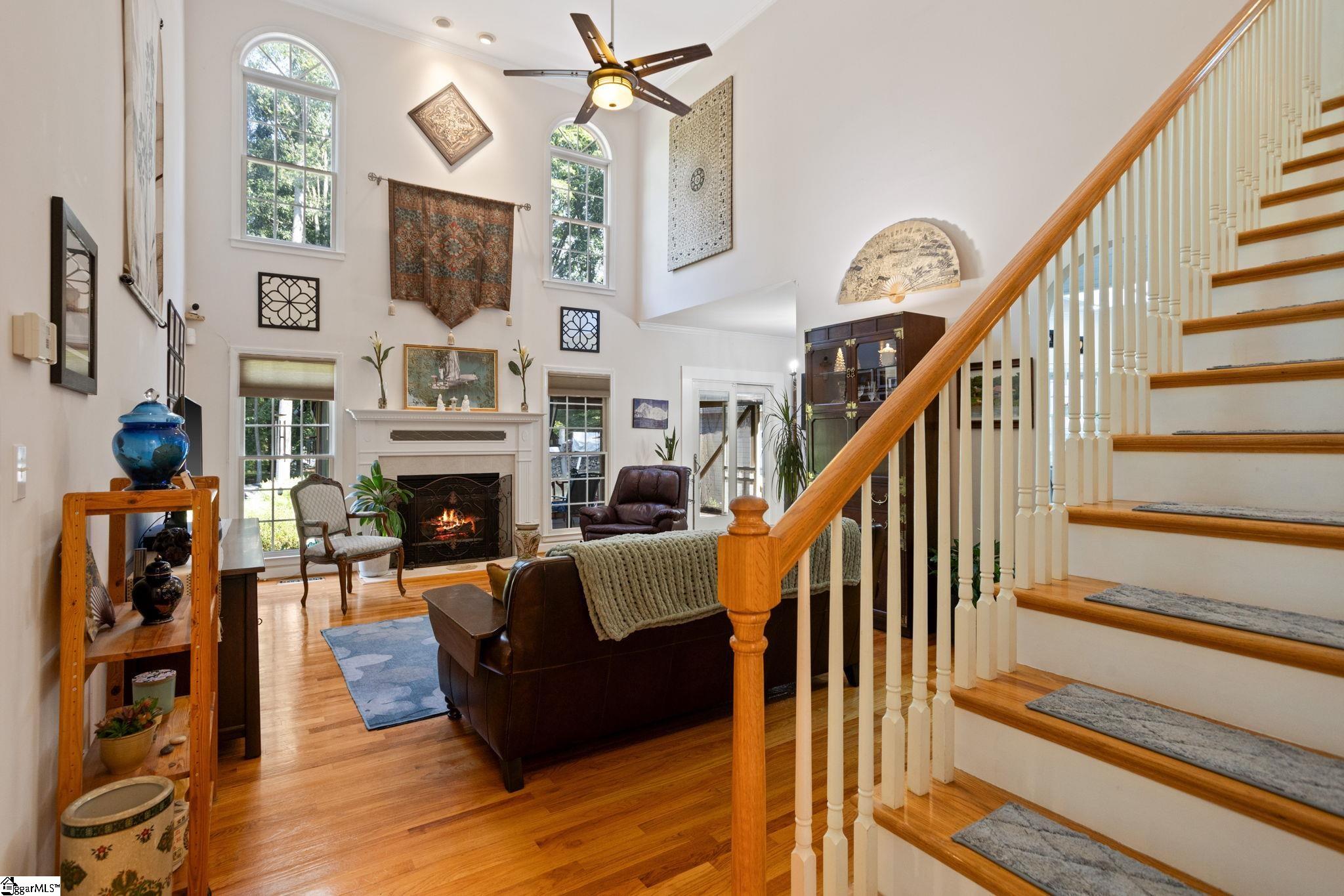 Stately all-brick home on over an acre! Quiet cul-de-sac setting on one of Woodgreen’s largest, most private lots. Expansive open yard framed by a lush treeline. Minutes to Fairview Road shopping & dining. Easy access to I-385. Under 25 minutes to Downtown Greenville. Less than 5 miles to BOTH Simpsonville & Fountain Inn Main Streets! Think restaurants, coffee shops, boutiques, farmers markets, community events. Heritage Park nearby for concerts, festivals & recreation. Dramatic TWO-STORY GREAT ROOM w/fireplace & abundant natural light. Flows into the kitchen while maintaining defined living spaces. MAIN LEVEL PRIMARY SUITE w/tray ceiling, dual walk-in closets & spacious bath. THREE additional bedrooms + full bath upstairs. Screened porch, stone patio & hot tub create inviting outdoor living. Attached 2-car garage PLUS detached 2-car garage w/workshop and office/lounge—ideal for hobbies, workspace, or storage. Comfort, space, and convenience—your next chapter begins here.