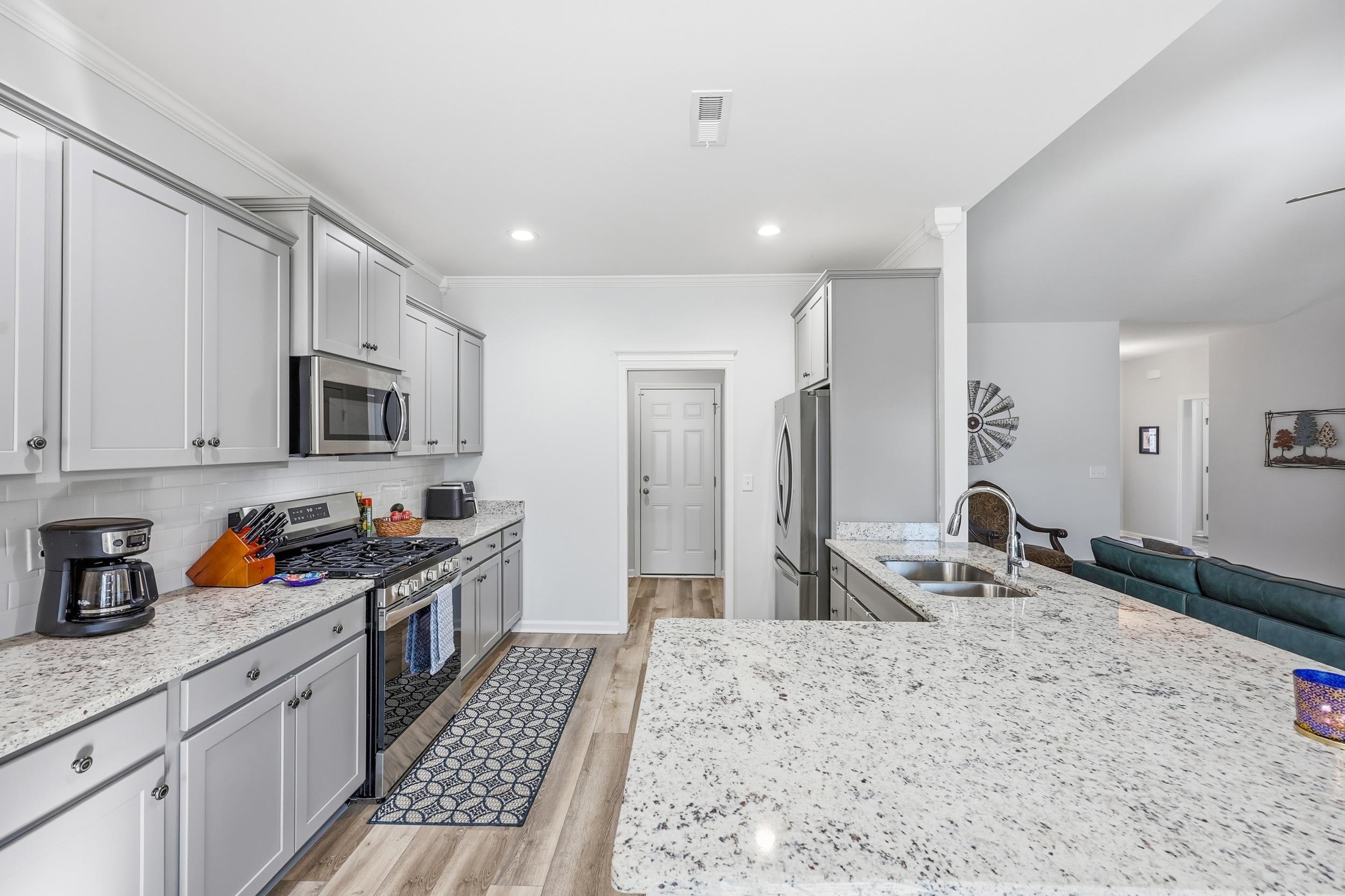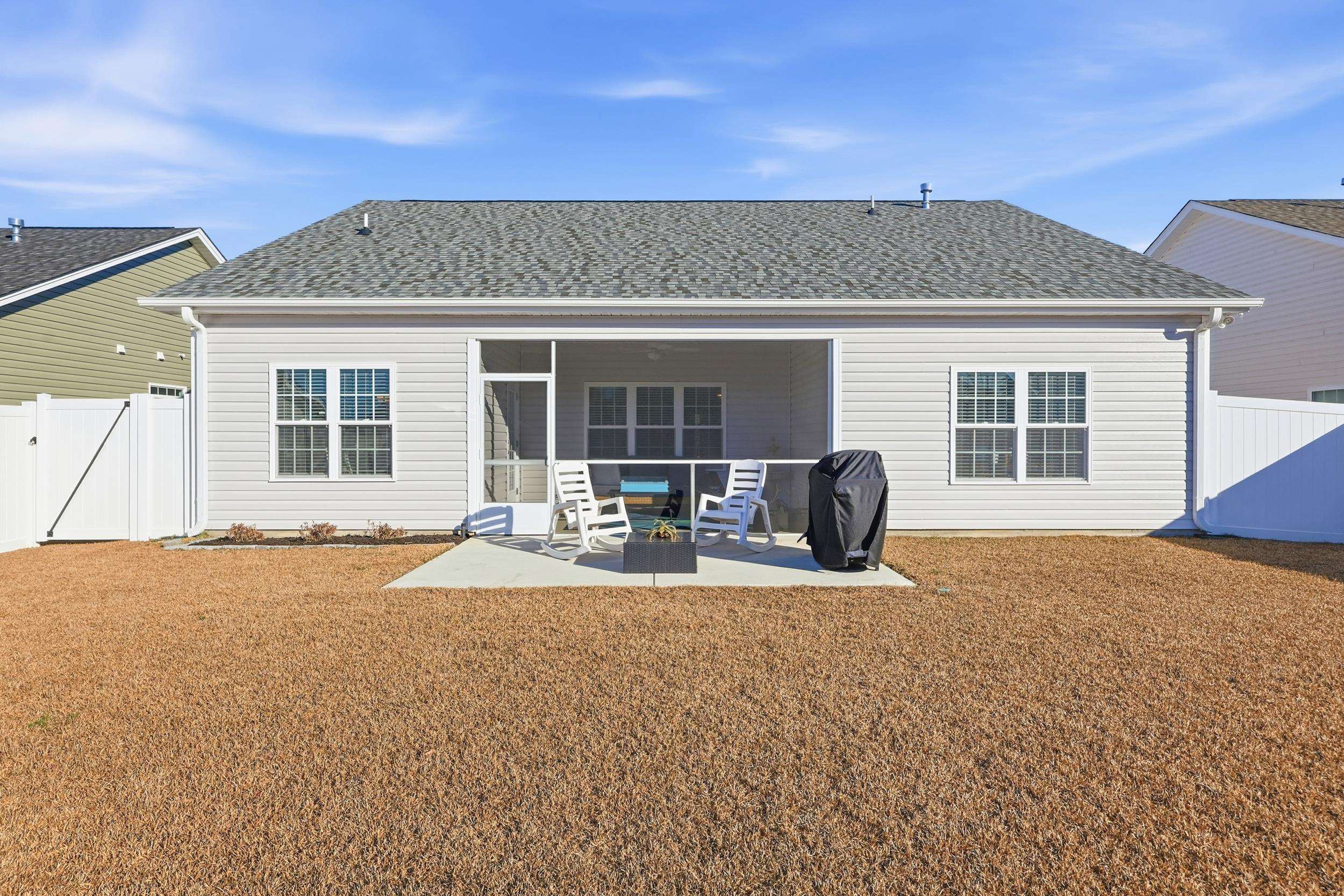 **Motivated Seller** Located in the Village at Longs, this single level 3 bedroom, 2 bath home offers well planned living space with modern construction and recent owner upgrades. The open layout includes a spacious kitchen with profiled cabinets with crown molding, stainless steel appliances, gas range, smart refrigerator, large island, and solid surface countertops opening directly to the main living area. Crown molding has been added to both the living area and primary bedroom. The primary suite features a walk in closet and private bath, with two additional bedrooms providing flexible space. Outdoor features include a covered front porch, rear patio, screened porch, and a Rain Bird irrigation system. This beautiful home in The Villages at Longs blends modern elegance with thoughtful touches from the owner, making it truly special. Located in one of the area's most sought-after neighborhoods, you are just a short 20-minute drive from the pristine beaches of Cherry Grove Beach and Sunset Beach, as well as the charming waterfronts of Little River and North Myrtle Beach, offering the perfect mix of suburban peace and coastal living.