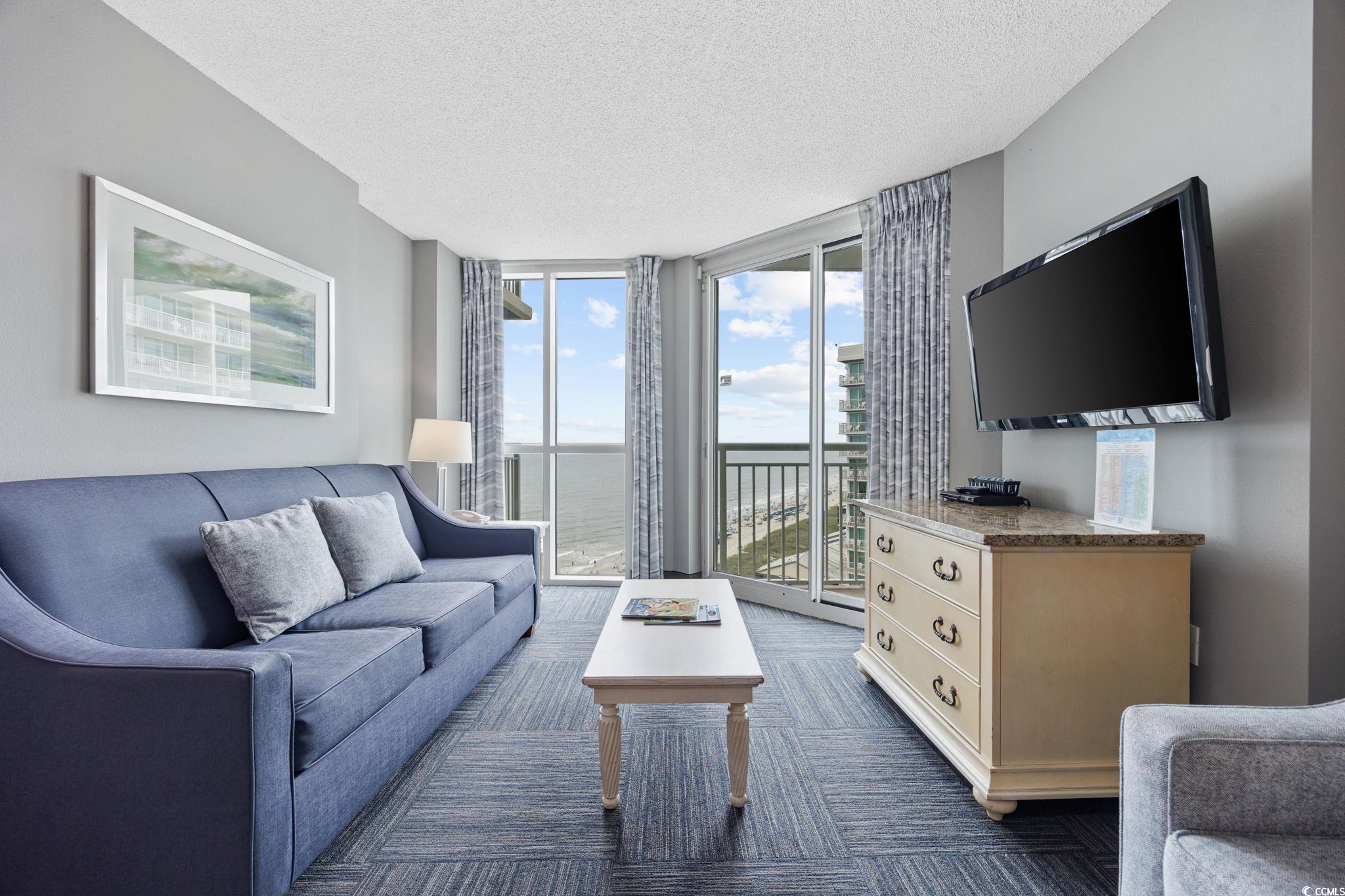 Welcome home to your FULLY FURNISHED oceanfront 2BR-2BA condo at Avista Ocean Resort in the Ocean Drive section of North Myrtle Beach! This beautifully furnished unit on the onsite rental program is the perfect beach getaway and/or investment opportunity, with great potential for rental income. Step inside to a full kitchen featuring granite countertops and all major appliances including a microwave, refrigerator, stove, and dishwasher. There’s a laundry closet with a stackable front-load washer and dryer, INCLUDED with the sale, for your convenience. The open-concept living and dining area includes tile in the wet areas and carpet in the living room and bedrooms. The living room is highlighted by large floor-to-ceiling sliders and windows, offering an abundance of natural light and breathtaking ocean views overlooking the amenities. The spacious master bedroom also features sliding doors leading out to the balcony, where you can enjoy relaxing views of the ocean. The bathroom includes a tub/shower combo. Avista Ocean Resort offers outstanding amenities including multiple indoor and outdoor pools, lazy rivers, hot tubs, a kiddie pool, and a seasonal poolside grill/bar. Located just a few blocks from the shops, restaurants, and entertainment of Ocean Drive’s Main Street, and close to golf, shopping, and more. The HOA fee includes water/sewer, unit electric, cable, internet, telephone, pest control, pool and building maintenance, building insurance, and HO6 contents insurance. Don’t miss this opportunity to own a piece of paradise!