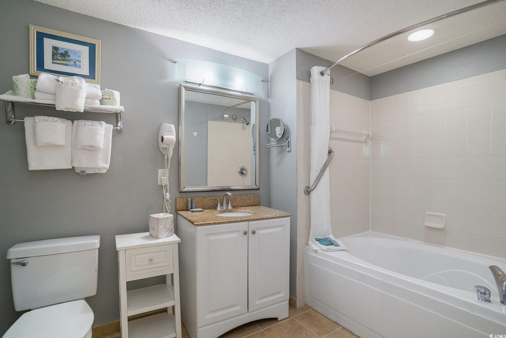 Direct oceanfront penthouse one-bedroom condo in The Avista Resort, located in the Ocean Drive section of North Myrtle Beach. This condo features high ceilings exclusive to the penthouse level, which really open up the already spacious floor plan. From the private balcony, you’ll enjoy sweeping ocean views. The condo is fully furnished and accessorized, with personalized artwork and tasteful decor added by the owners. Interior features include granite countertops in both the kitchen and bathroom, a fully equipped kitchen, and a washer/dryer combo. Enclosed climate-controlled corridors — a rare feature in North Myrtle Beach — provide extra comfort and convenience as you make your way to and from the resort's indoor pools and amenities. Avista is a direct oceanfront resort consisting of two 16-story towers that arc on either side of a 5-story centerpiece. This central building includes the large art-deco lobby, onsite convention and meeting facilities, a full-service restaurant, lounge, and a fitness center. The lobby also houses the check-in area for the excellent onsite rental management company, making this unit a great option for rental income. Outdoor oceanfront water amenities include two pools, a lazy river, a kiddie pool, and two hot tubs. There is also a poolside grill that operates seasonally. Year-round indoor amenities include a pool, a lazy river, and a hot tub. The Avista’s location is just a few blocks from the shops, restaurants, and nightlife of Ocean Drive’s Main Street, and it’s an easy drive to all the attractions and golf courses along the Grand Strand. The HOA fee includes water, sewer, electric, cable, internet, and telephone, along with building insurance and HO6 contents insurance. All information is deemed correct, but it is the responsibility of the buyers and their agent to verify all details.