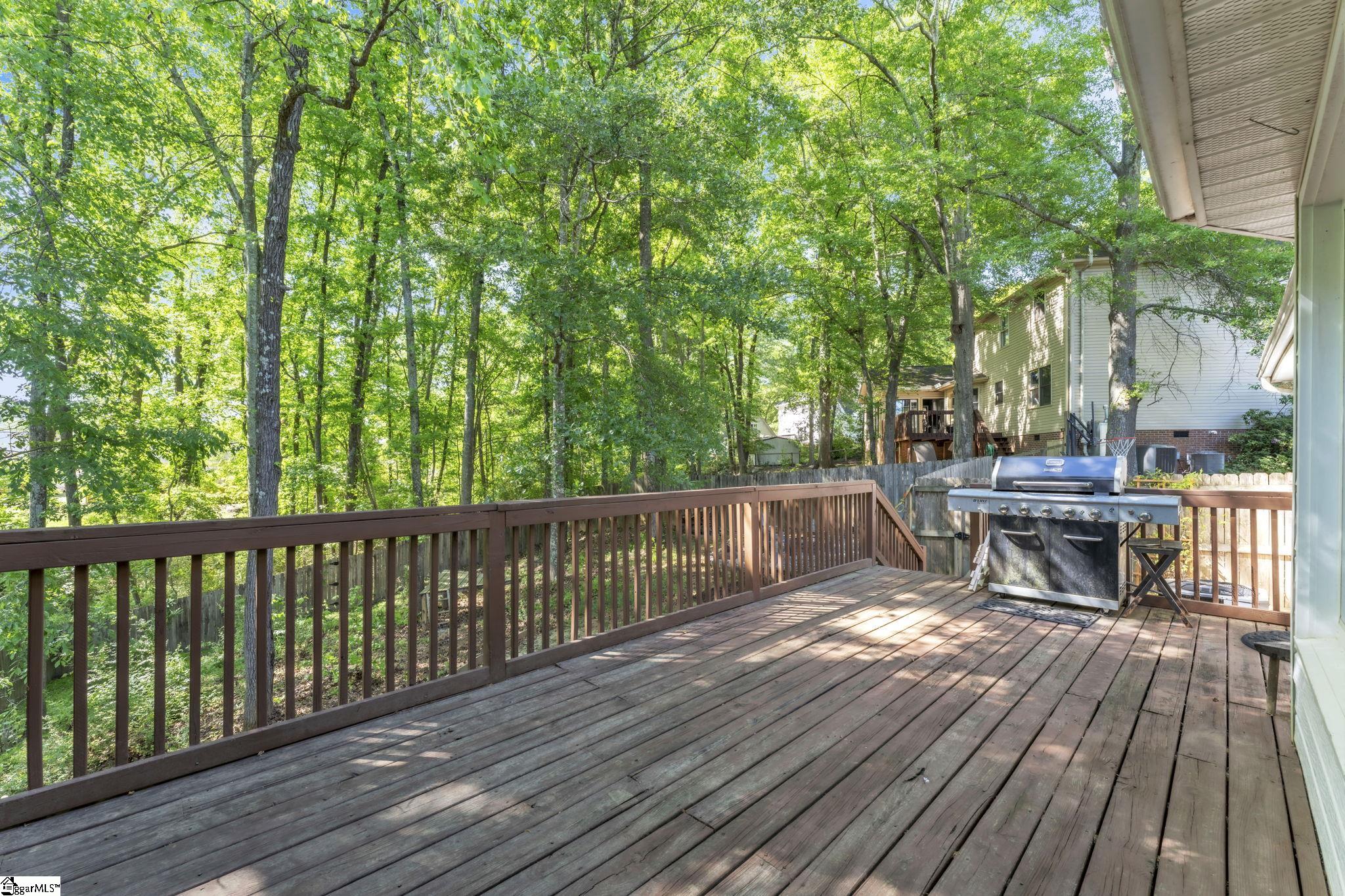 Welcome to 304 Wagoncreek Drive, a well-maintained home in tucked away in the established Wagon Creek neighborhood offering a great blend of space, privacy, and thoughtful updates in a convenient Simpsonville location. From the moment you arrive, you’ll notice the inviting front porch and side-facing garage, giving the home strong curb appeal and a more traditional feel. Inside, the main level features hardwood floors throughout, a spacious living room centered around a full masonry fireplace, and a formal dining room that works just as well for everyday living as it does for hosting. The kitchen offers plenty of workspace with updated finishes, stainless steel appliances, and a bright breakfast area overlooking the backyard. Upstairs, hardwood floors continue throughout all four bedrooms. The primary suite offers ample space along with a full bathroom, while the fourth bedroom includes its own full bathroom, making it a great setup for guests or added privacy. Where this home really stands out is outside. The screened porch and large back deck overlook a wooded backyard, creating a private setting that’s hard to find. Whether it’s morning coffee on the porch or evenings around the fire pit, this space is easy to enjoy year-round. Also, check out the fully finished room in the garage that can be a perfect flex space! Additional updates include a new roof installed in 2026 and an HVAC system replaced in 2022, offering added peace of mind for the next owner. Located less than a mile from Downtown Simpsonville (you could literally walk to it), a few mins from I-385, and everyday shopping and dining, this home offers both convenience and a setting that feels tucked away. The new buyer is also eligible to get pool memberships at either at Poinsettia or Powderhorn pools!