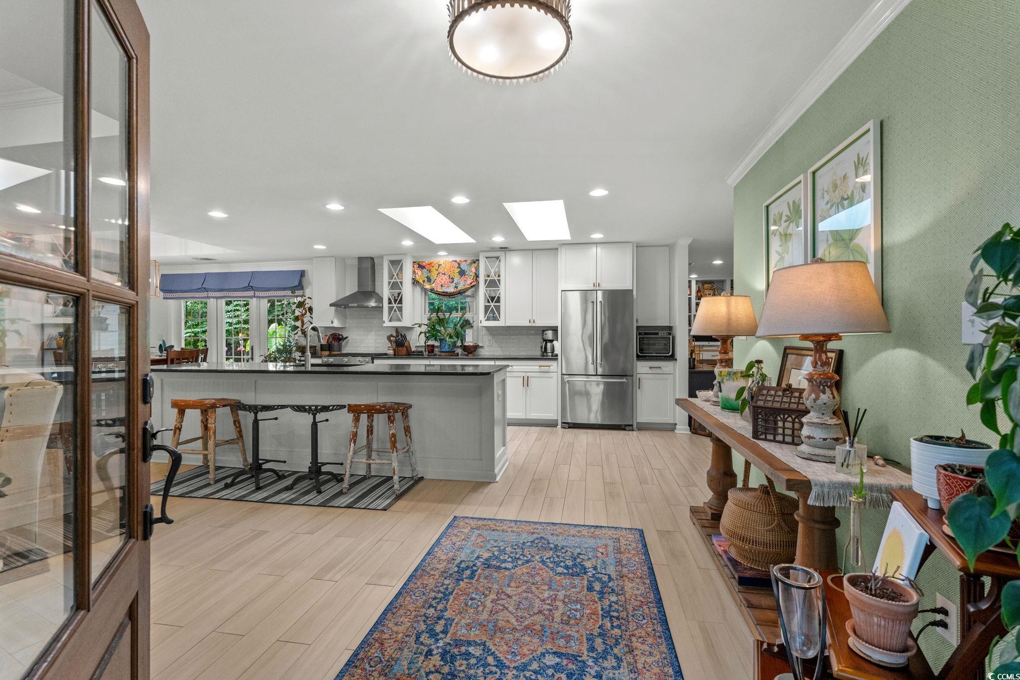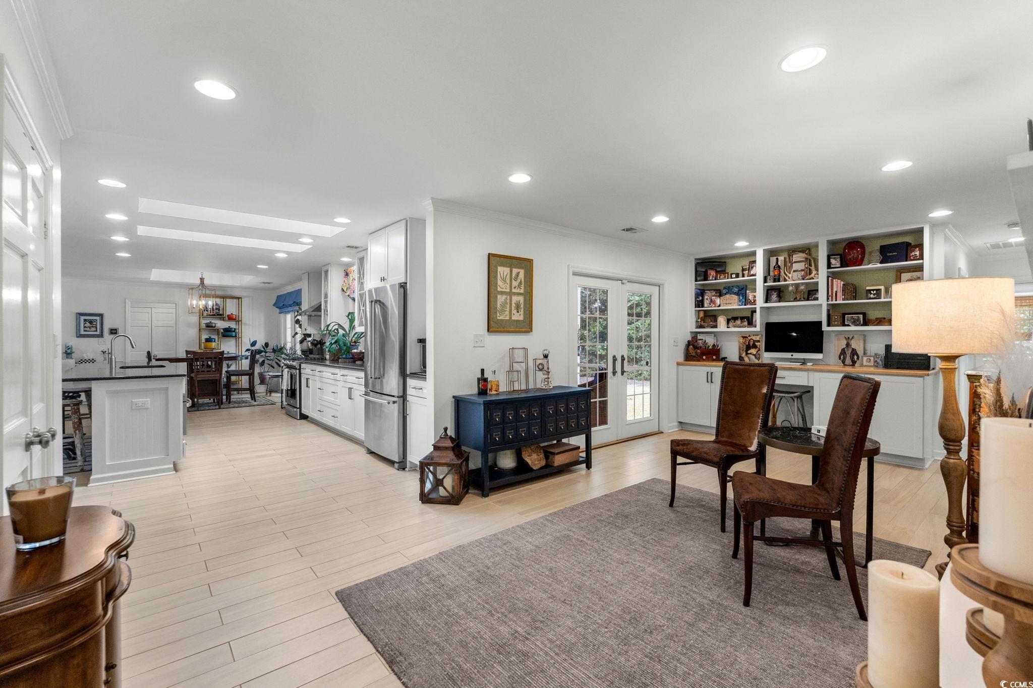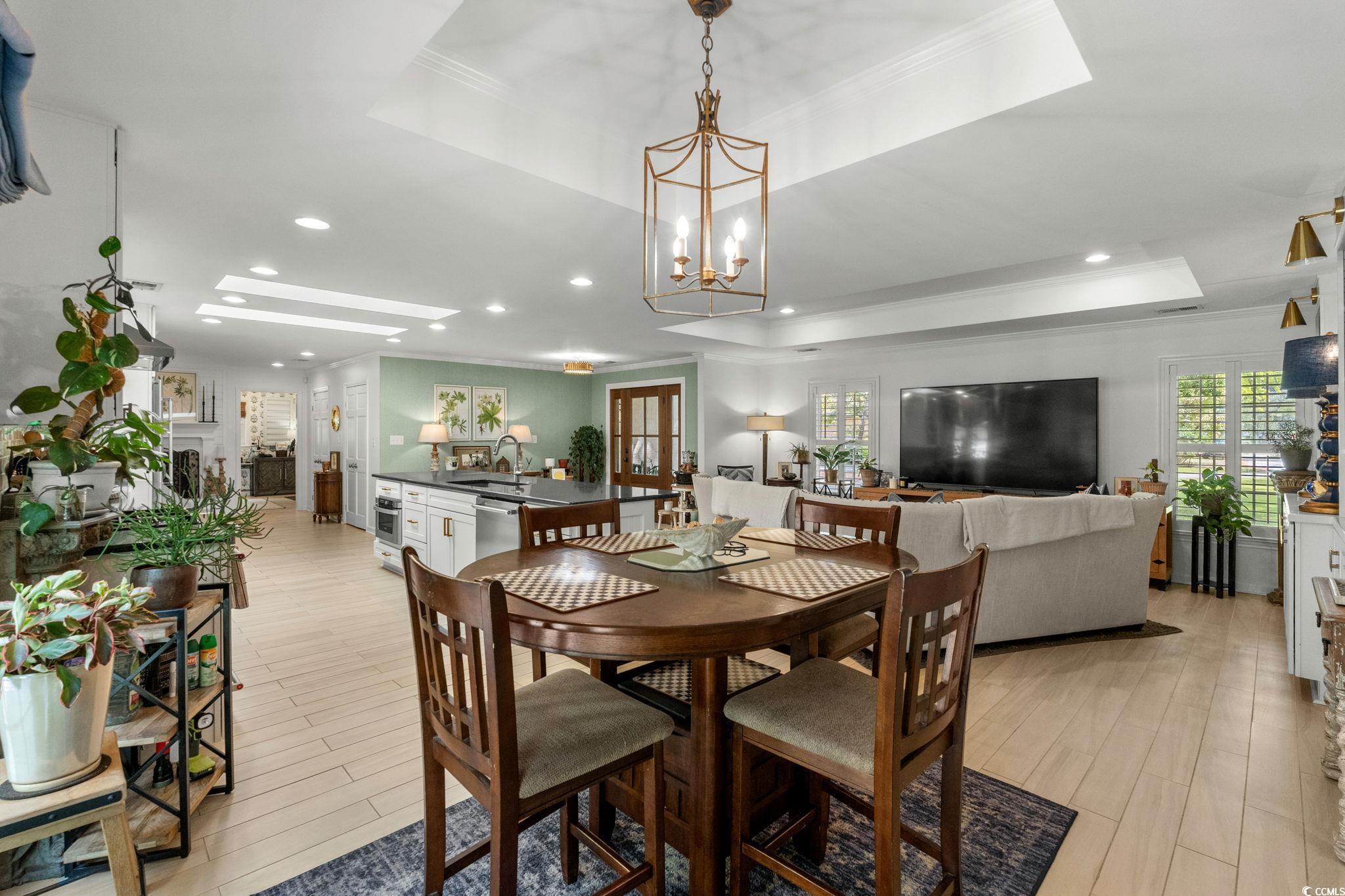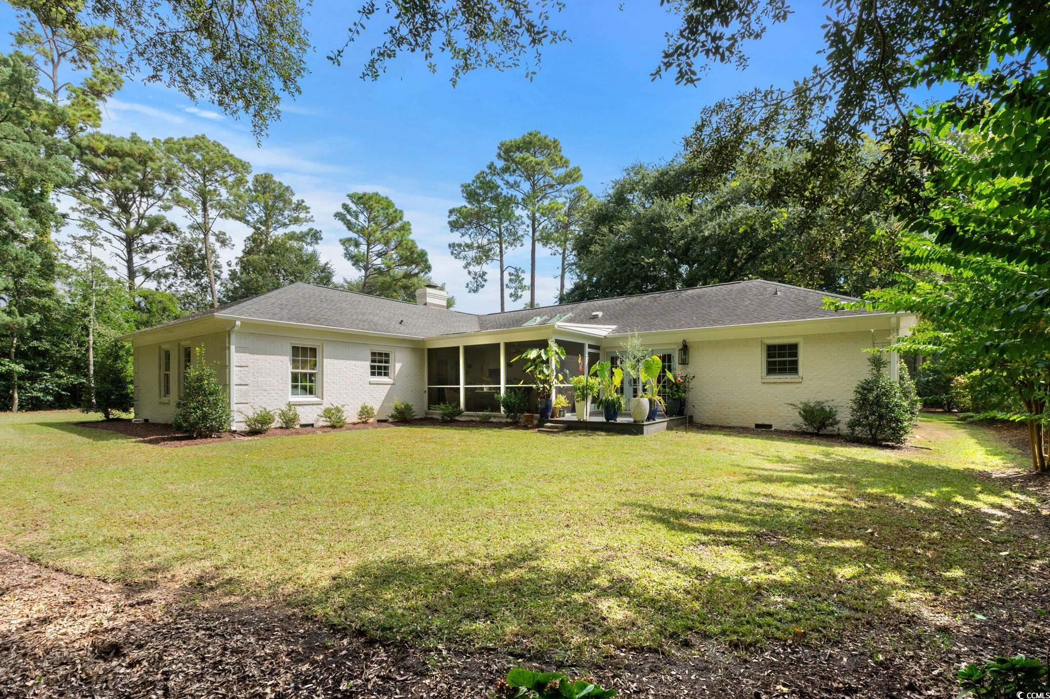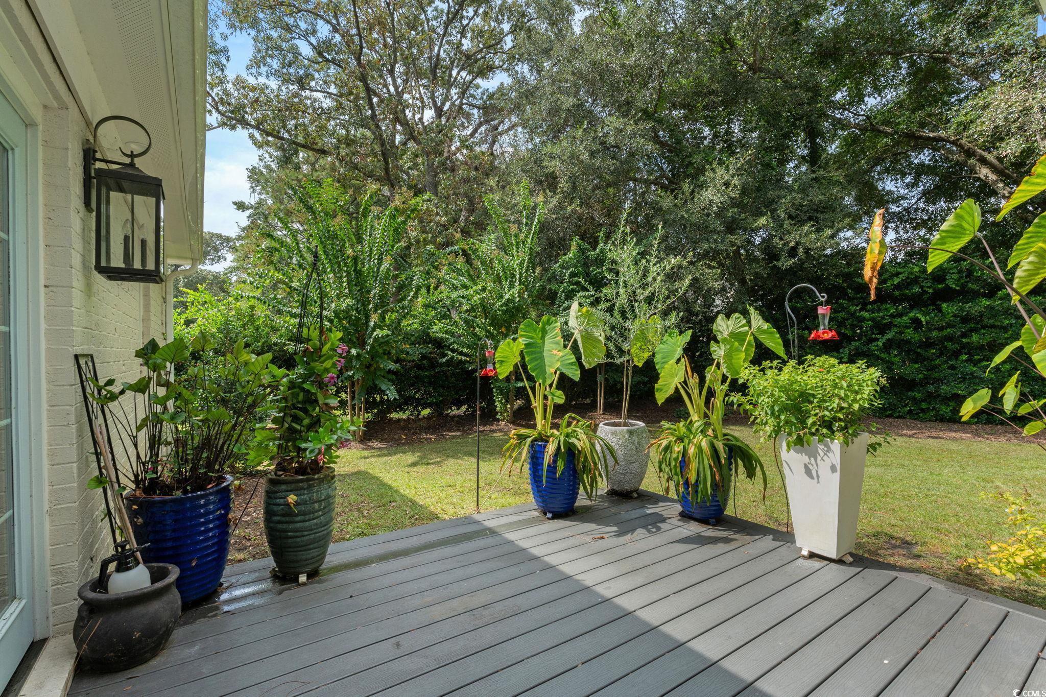 Welcome to a true gem in the heart of The Dunes Club—one of Myrtle Beach’s most coveted and sought-after communities. Perfectly positioned on a private half-acre homesite at the end of a quiet cul-de-sac, this residence makes a striking first impression with its majestic oak, mature landscaping, and timeless curb appeal. Step inside to find a light-filled open floor plan designed for both comfort and style. Thoughtful details abound, including crown moulding, recessed lighting, skylights, custom built-ins, and split bedrooms for privacy—all on one convenient level. This 4-bedroom, 2.5-bath home has already been revived with a substantial 2016 renovation by a previous owner bringing modern elements such as new windows and doors, roof, electrical, plumbing, appliances, and encapsulated crawl space. Additional enhancements in 2021 and beyond have continued to elevate both interior and exterior appointments. At the heart of the home, the beautifully appointed granite kitchen shines with abundant cabinetry, generous counter space, and a massive center island with bountiful seating—perfect for everyday living and entertaining. The kitchen flows seamlessly into the surrounding living areas, complemented by flexible spaces like a den/study or dining room, a welcoming foyer, and a practical mudroom with a drop zone and laundry. Outdoor living is equally inviting with a screened porch and spacious deck overlooking the private backyard. With plenty of room to create your dream retreat, this lot offers exceptional potential for an in-ground pool and/or outdoor oasis. An oversized side-load garage with sink and storage adds both convenience and function. Currently fueled by propane for the kitchen range/oven and fireplace, natural gas is also available and ready for connection by the new owner. Don’t miss this chance to own this exceptional Myrtle Beach address and embrace the coastal lifestyle The Dunes Club has to offer—just a short walk or golf cart ride to the beach and currenty home to the OneFlight Myrtle Beach Classic Golf Tournament.