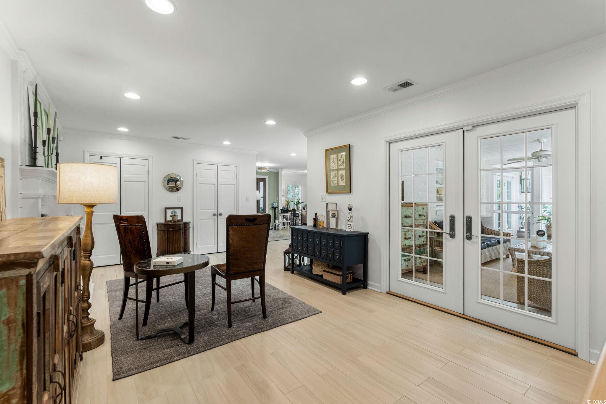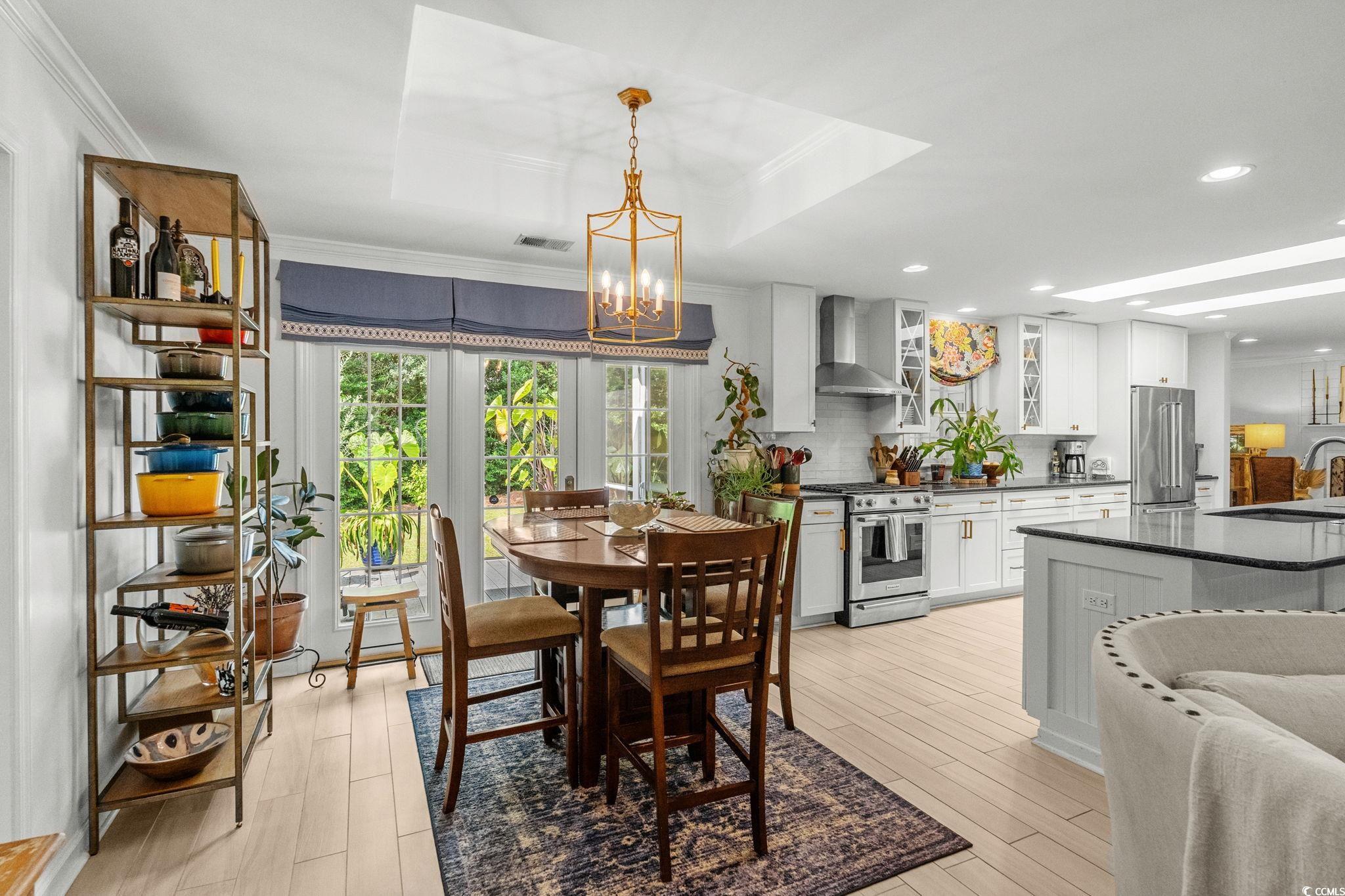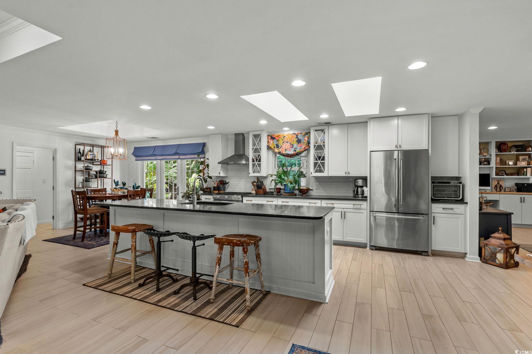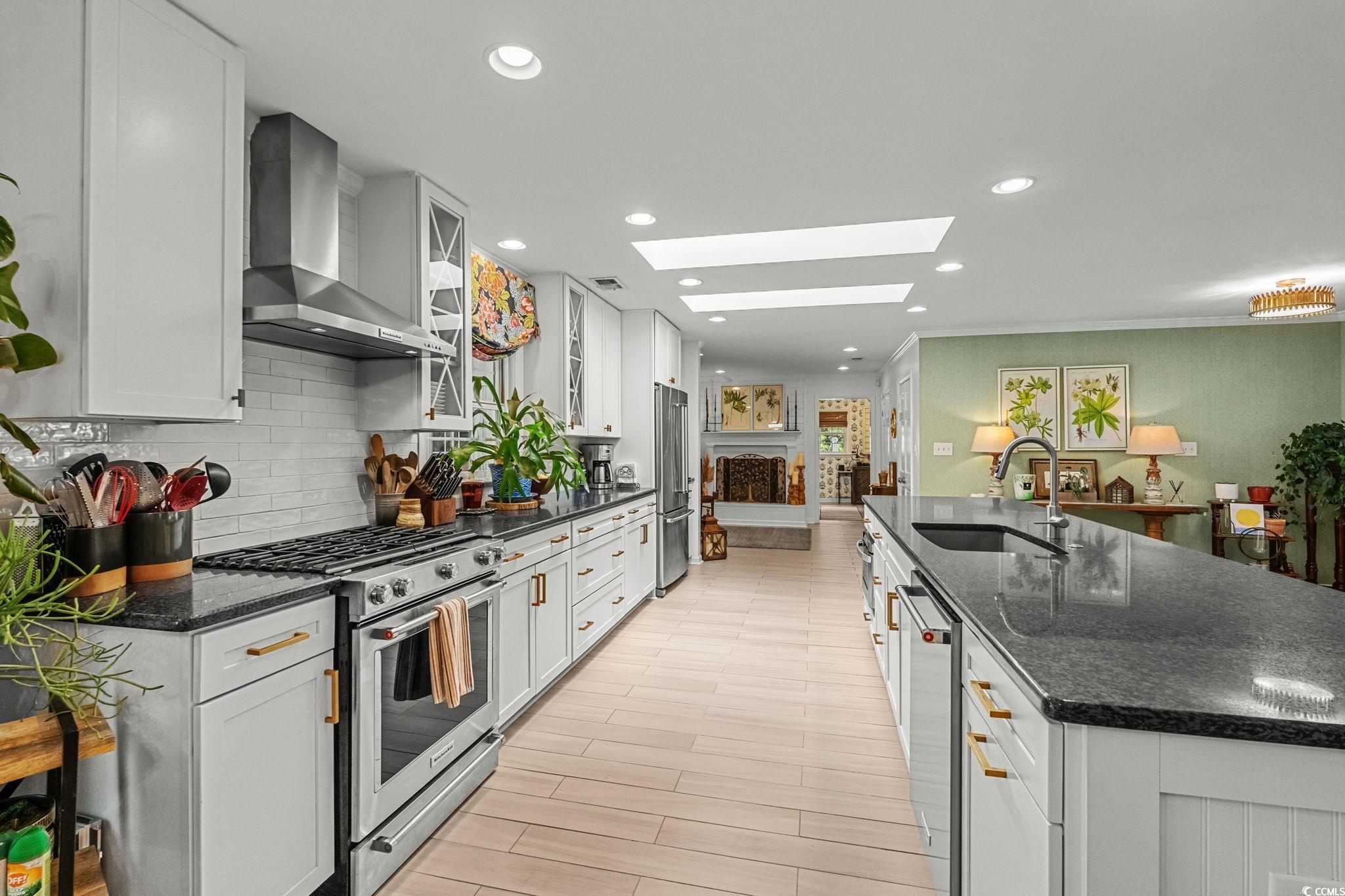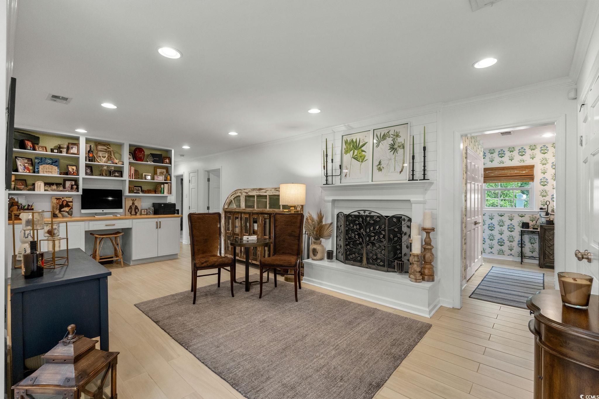 Welcome to a true gem in the heart of The Dunes Club—one of Myrtle Beach’s most coveted and sought-after communities. Perfectly positioned on a private half-acre homesite at the end of a quiet cul-de-sac, this residence makes a striking first impression with its majestic oak, mature landscaping, and timeless curb appeal. Step inside to find a light-filled open floor plan designed for both comfort and style. Thoughtful details abound, including crown moulding, recessed lighting, skylights, custom built-ins, and split bedrooms for privacy—all on one convenient level. This 4-bedroom, 2.5-bath home has already been revived with a substantial 2016 renovation by a previous owner bringing modern elements such as new windows and doors, roof, electrical, plumbing, appliances, and encapsulated crawl space. Additional enhancements in 2021 and beyond have continued to elevate both interior and exterior appointments. At the heart of the home, the beautifully appointed granite kitchen shines with abundant cabinetry, generous counter space, and a massive center island with bountiful seating—perfect for everyday living and entertaining. The kitchen flows seamlessly into the surrounding living areas, complemented by flexible spaces like a den/study or dining room, a welcoming foyer, and a practical mudroom with a drop zone and laundry. Outdoor living is equally inviting with a screened porch and spacious deck overlooking the private backyard. With plenty of room to create your dream retreat, this lot offers exceptional potential for an in-ground pool and/or outdoor oasis. An oversized side-load garage with sink and storage adds both convenience and function. Currently fueled by propane for the kitchen range/oven and fireplace, natural gas is also available and ready for connection by the new owner. Don’t miss this chance to own this exceptional Myrtle Beach address and embrace the coastal lifestyle The Dunes Club has to offer—just a short walk or golf cart ride to the beach and currenty home to the OneFlight Myrtle Beach Classic Golf Tournament.