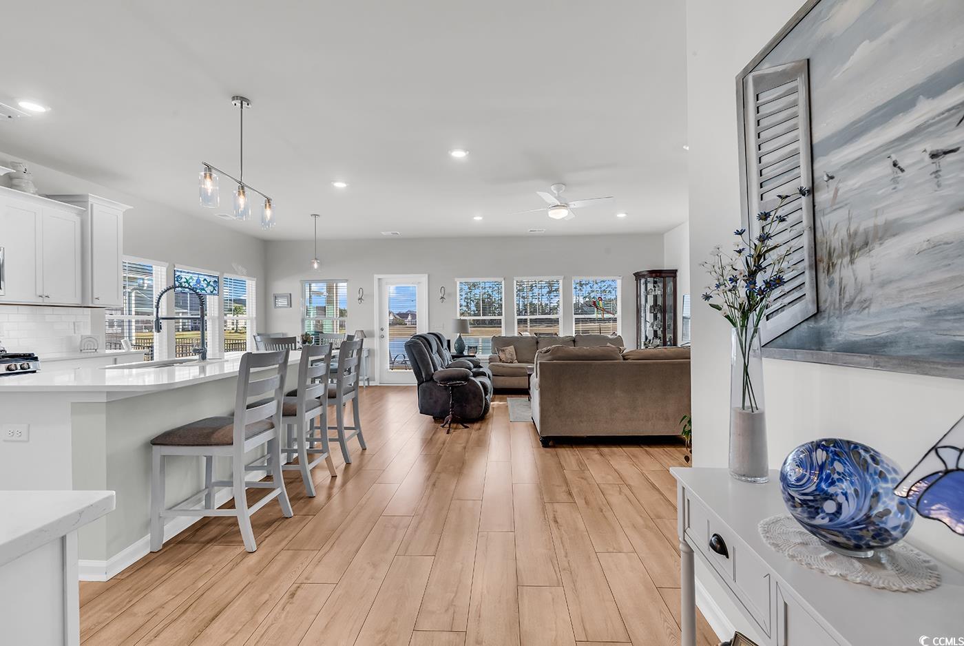 MUST SEE TO APPRECIATE SCHEDULE TODAY !!! Constructed in 2022 and meticulously maintained, this nearly new single-level residence encompasses three bedrooms, two full bathrooms, and a two-car garage with additional storage, situated on a desirable dead-end street within The Isle of Bella Vita community. This property boasts a scenic pond view, a versatile layout, and numerous upgrades throughout, making it move-in ready and designed for both comfort and contemporary style. Upon arrival, one is welcomed by an inviting front porch accompanied by well-maintained landscaping. A newly installed storm door provides access to the entryway. The two guest bedrooms are conveniently located at the front of the residence and share a full bathroom accessible from the main hallway. The primary suite, characterized by its elegant tray ceiling, includes a spacious walk-in closet and an en-suite bathroom featuring a large, tiled, glass-enclosed shower. Abundant windows in the primary bedroom and the main living area allow for natural light and provide a picturesque view of the pond at the rear of the property. The upgraded kitchen features white cabinetry, high-quality quartz countertops, stainless steel appliances, a walk-in pantry, and an oversized center island. Luxury vinyl plank flooring extends throughout the primary living areas, including several of the bedrooms. The home is fitted with fifteen window blinds and ceiling fans installed in each room, as well as both porches. Additionally, new lighting fixtures have been incorporated in the central hallway and above the kitchen island, enhancing the home's open-concept design. Located just beyond the main living area, the extra-large extended screened-in back porch creates a pleasant atmosphere, particularly during warm summer days. This property reflects a significant pride of ownership. It includes various features that simplify the purchasing process, such as a tankless water heater, gutters, a landscaped yard with white stone, an automatic irrigation system, and a finished and painted garage with pull-down stairs for attic access, providing extra storage space. The attic also contains essential items for hurricane protection. Set within a natural gas community that imposes a low homeowners' association fee, which includes access to a pool and cabana, The Isle of Bella Vita offers a prime location just minutes from shopping, dining, championship golf courses, and highly rated educational institutions. Myrtle Beach International Airport and local beaches are located approximately 15 minutes away.