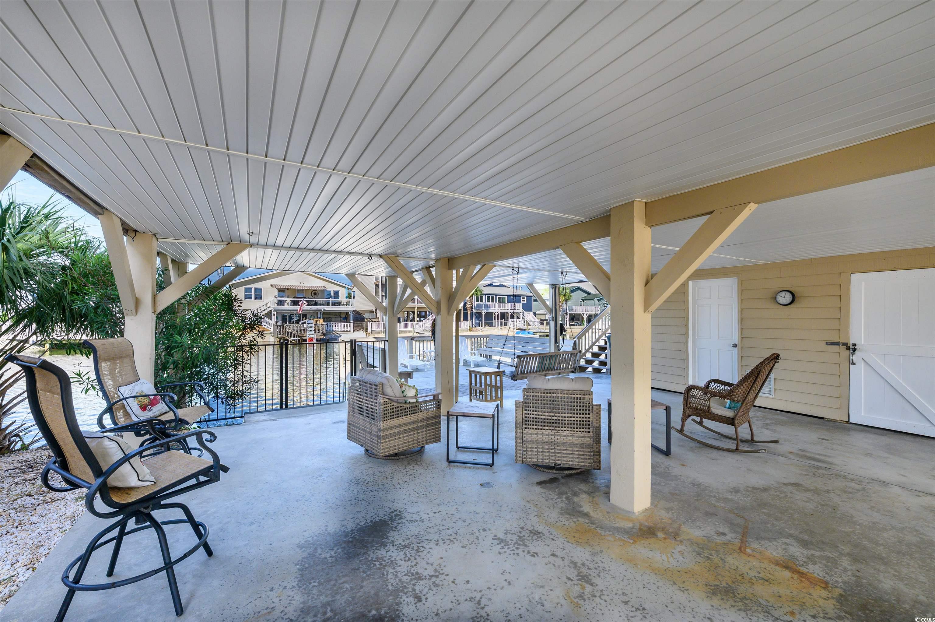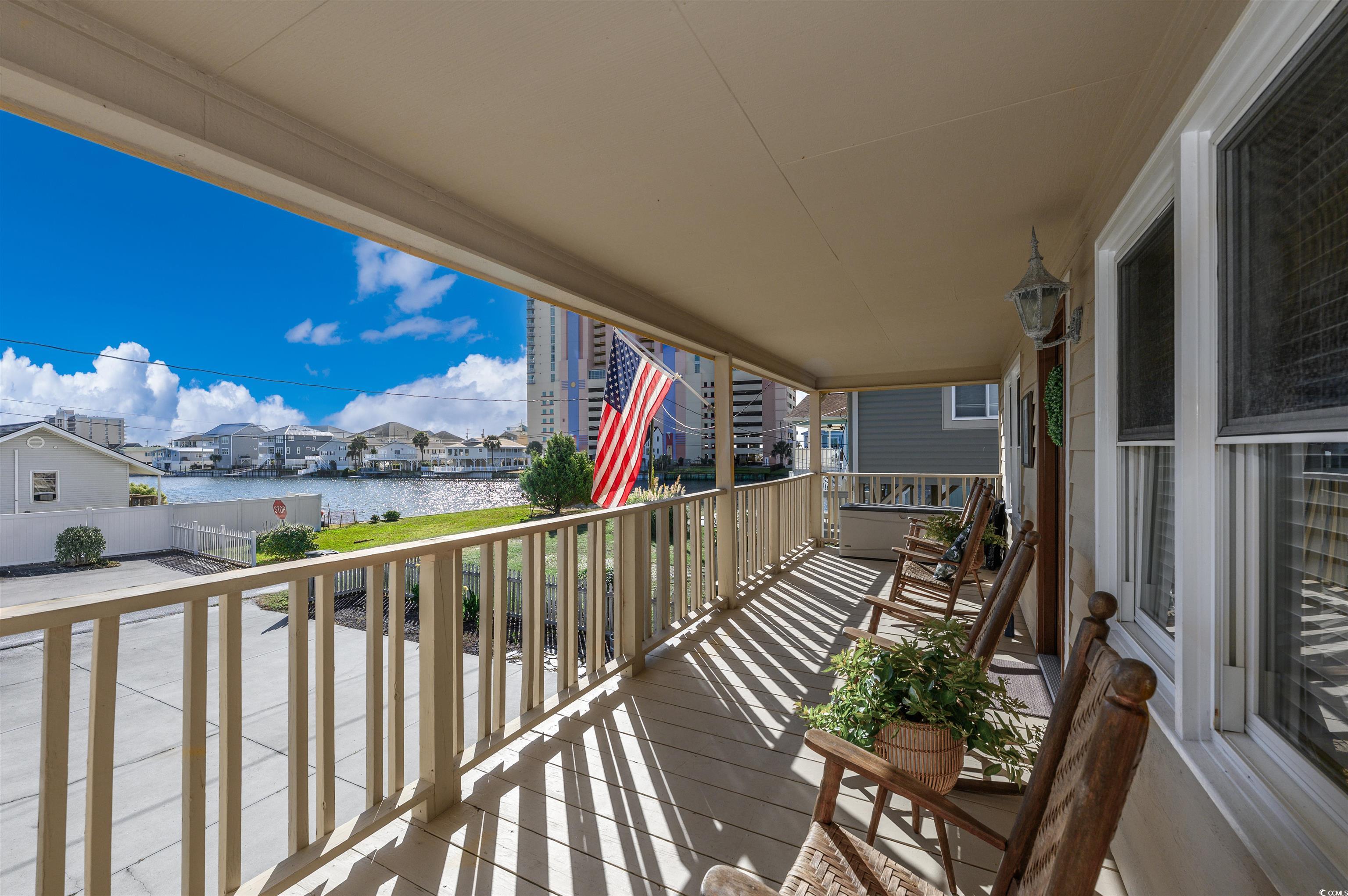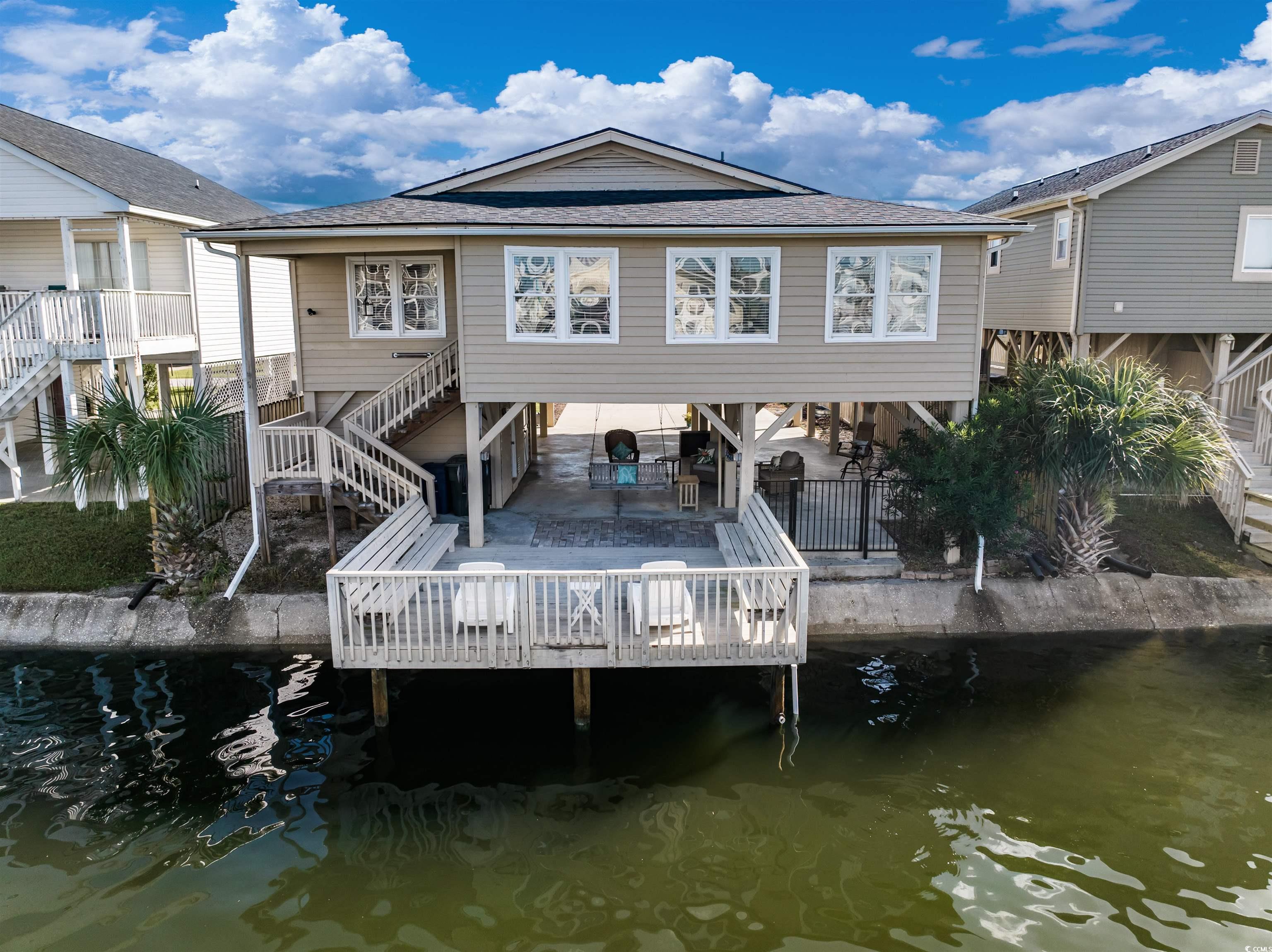 Looking for your perfect oasis at the beach - this is it! This beach house has it all and you and your guests will fall in love. It is the timeless beach house vibe mixed with updated modern conveniences. As soon as you pull up to the home, you will immediately begin to relax. Enjoy the ocean breeze while you rock your cares away and sip coffee on your freshly painted front porch. Or if you are feeling athletic and ambitious, grab some time on the water with your favorite water sport right in your backyard - paddle board, canoe and more. The home sits directly on the water in the Cherry Grove channel area so your access to fun is a snap. Although this home has not been on the rental market in the past (awesome condition and never rented) - this home will definitely "show you the money" on a rental program boasting 4 bedrooms, with water views from most all angles AND just steps to the beach. Being a raised beach house, this property has so many entertaining spots. As you enter the new stain glass front door upstairs, you are welcomed into the open concept living room and dining room with plenty for game night activities. The all white and upgraded kitchen also has an open concept so you do not miss a thing while you are whipping up your favorite gourmet meal. The kitchen has white custom cabinets, quartz countertops and plenty of space to let your culinary skills go wild. The kitchen also includes a new stainless undermounted double kitchen with Moen faucet. With the classic beach house footprint, there are 2 bedrooms with a shared bathroom on both sides of the home. The bathrooms have been upgraded to include barn doors entry to conserve space and add character. The porches, Carolina Room and deck overlooking the water (only 3 years old) will provide so many great spots for reading your favorite book, sipping on your favorite cold beverage and connecting with nature. The brick pavers to the deck are ecologically friendly. After a great day on the beach enjoying the waves, step into the downstairs outdoor shower to rinse the sand away and drop your cooler, chairs and beach towels in the downstairs laundry area before starting the evening entertainment. Under the home, there is so much fun to gather for family picnics, football parties and more. Light up the grill for burger night or try your hand at creating a seafood boil. This well-maintained home includes double insulated windows, a termite bond and the HVAC include a an ultraviolet light and twice yearly service plan. The Cherry Grove community is a peninsula in North Myrtle Beach located on the north end. It is the ideal spot to gather for fun. The beach wraps around to the Inlet with views of Waites Island the last beach in South Carolina. Take a relaxing stroll on the beach to hunt for shells and shark’s teeth. Fishing will become one of your favorite past times with convenient access to the public boat ramp located just at the end of 53rd Ave North and Cherry Grove Fishing Pier located at 53th Ave North. You can ride in style in a low speed golf cart to the beach, restaurants, putt-putt courses and nightlife. The infamous Boulineau's grocery and shops are so close with ice cream treats, local seafood supplies and beach souvenirs and you don't even have to get in your car. The City of North Myrtle Beach has so much to offer including wide beaches, boating, golfing, free summer concerts, many main street festivals thru out the year. Do not miss your chance to finally get a beach getaway for your own personal enjoyment or an income generating opportunity. At this price and location - this home will go fast.