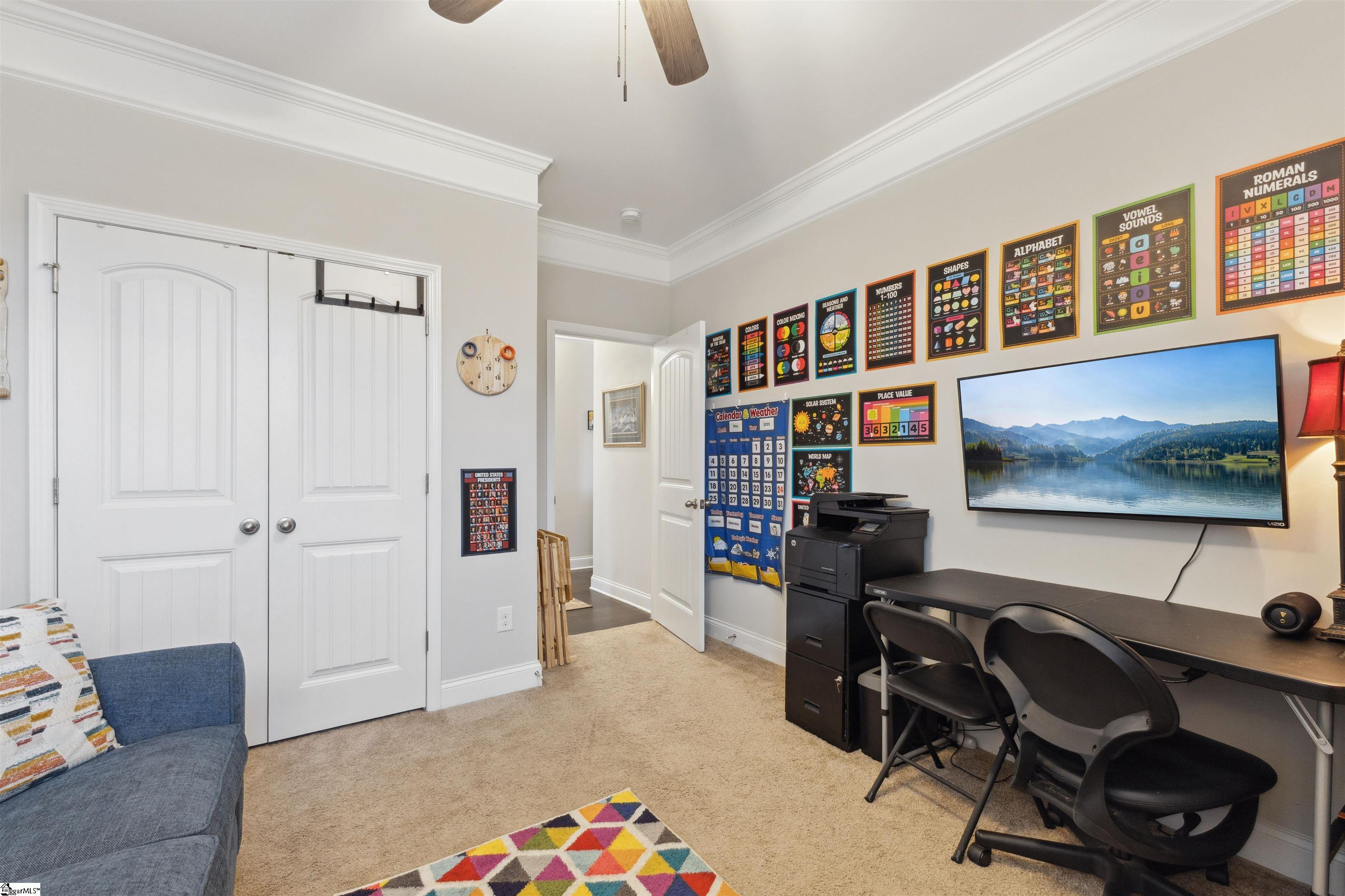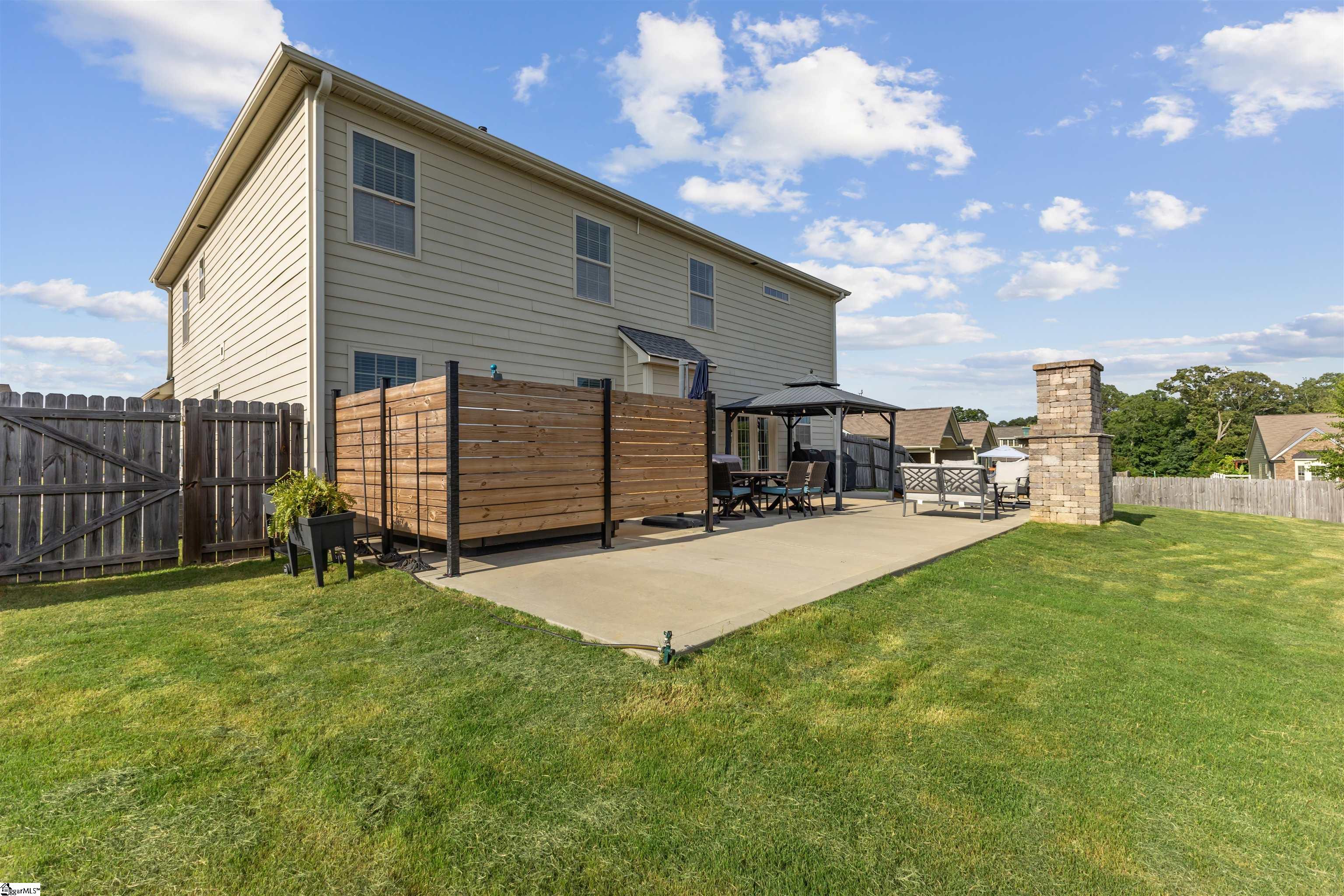 Positioned in a cul-de-sac on one of the larger lots in the neighborhood, this 5-bedroom, 3-bath home offers nearly 3,000 square feet of functional, move-in ready space with thoughtful details throughout, and a backyard that’s just as inviting! A spacious two-story foyer creates a welcoming entry and opens to a beautiful dining room, complete with coffered ceilings and a bay window. Wainscoting, crown molding, and window treatments throughout add a finished feel that carries from room to room. The open floor plan connects the main living area and kitchen with ease, featuring a gas log fireplace in the living room and a well-equipped kitchen complete with a gas cooktop, stainless refrigerator, built-in microwave, tile backsplash, pantry closet, and island seating. A main-level bedroom and full bath provide flexibility for guests, a home office, or multi-generational living, along with a walk-in laundry room with additional storage space. Upstairs, the oversized primary suite offers a comfortable retreat with a tile shower, dual sinks, linen storage, and a walk-in closet. Three additional bedrooms—each with spacious closets and ceiling fans—share a third full bath. A two-car garage adds even more storage, including ceiling-mounted racks to help keep you organized, while the extended concrete driveway provides extra parking and everyday functionality where it counts. Out back, you’ll find a fully fenced yard with room to spread out—whether that’s relaxing at the end of the day, hosting friends, or letting kids and pets play. The expansive concrete patio, stacked stone wood-burning fireplace, gazebo and lush green lawn create an inviting space that works just as well for entertaining as it does for everyday living. The neighborhood pool is an added bonus on those hot summer days! Centrally located between Greenville and Spartanburg, Duncan offers quick access to I-85 and an easy commute to Greer, BMW, and GSP Airport, with grocery stores, restaurants, parks, and everyday essentials just minutes away!
