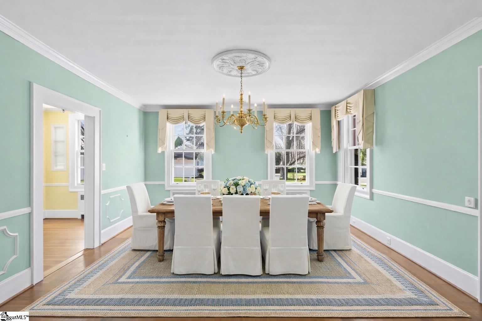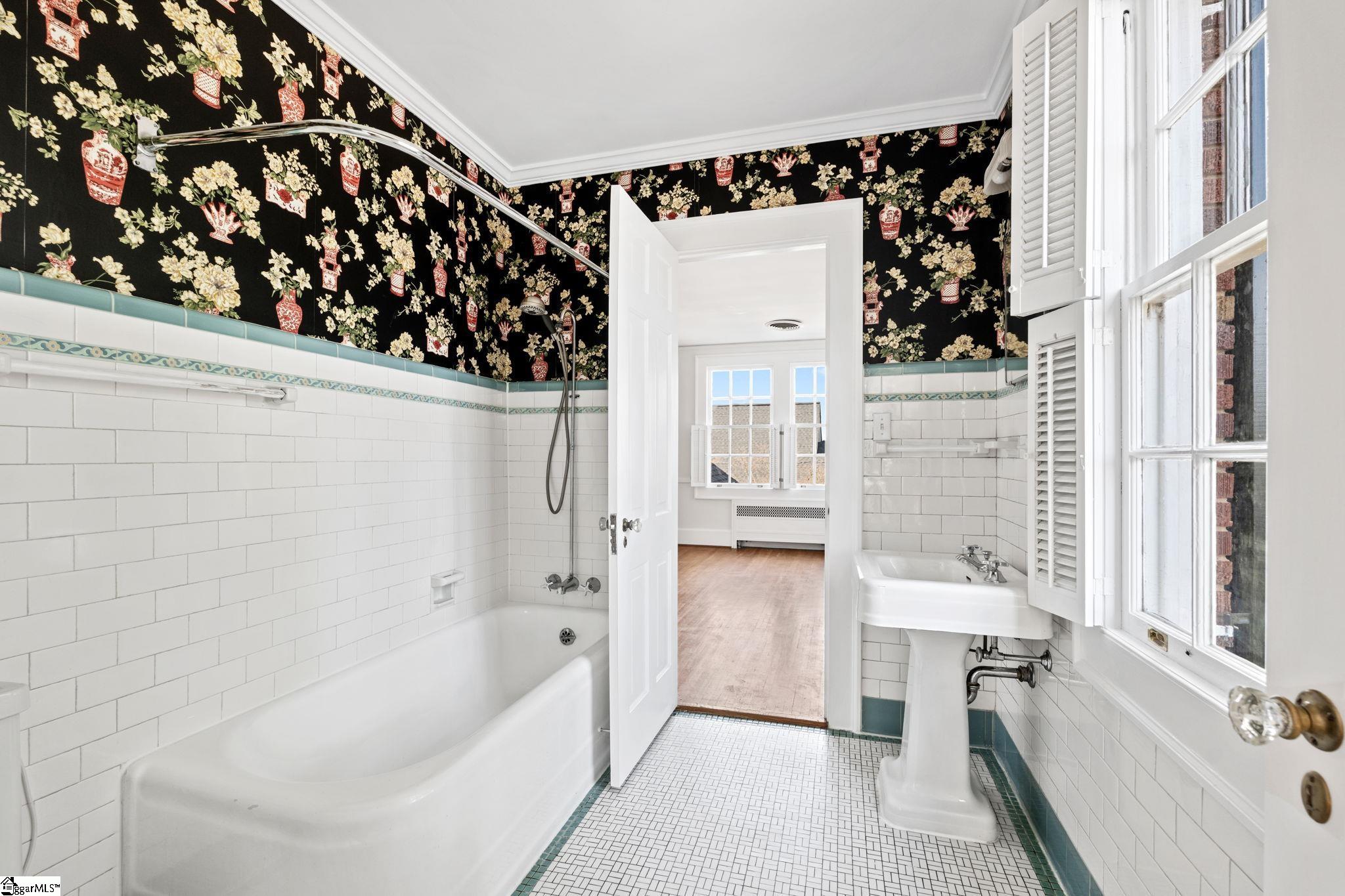 If walls could talk, what stories would the walls at 305 North Main St. tell? Built in 1935 by Greenville architect William Riddle Ward this Colonial Revival home is one of three homes in Greer with the honor of being listed on the National Historic Registry. A sidewalk at the front of the house will take you on a quick stroll to downtown Greer for a bite to eat, a stop at a boutique, or a coffee with friends. When you're ready for home sweet home this is what you'll see as you walk up the brick lined herringbone front sidewalk, the main entrance door with its glass sidelights and arched transom windows, flanked with stately columns, as well as a brand new roof! As the front door opens the foyer reveals a grand staircase, original moldings, arched glass-paneled door, and hardwood flooring. On either side of the foyer you have entertaining spaces. Both spaces have gas log fireplaces, double French doors, original moldings, hardwood flooring, and enough space to host family gatherings, book club, or be belle of the ball at your own gala. The spacious dining room and breakfast nook, with butler's pantry and built-in display nooks, are right around the corner. An amazing covered porch is off the dining room and living room with brick arches, classic Southern haint blue ceiling, and iconic cracked terracotta floor. The kitchen is in the rear of the home and has exterior access for homeowner ease, laundry room accessibility, and a large pantry right around the corner! A convenient full bath is located on the main level and boasts of period-era ceramic tile and cast-iron tub. A set of stairs in the hallway connects to the grand staircase allowing access to the second floor where you'll find four spacious bedrooms. The primary bedroom holds the homes' third gas log fireplace! Set in pairs on either side of the hallway, the bedrooms are designed in a Jack-and-Jill style with two bedrooms each sharing a full bathroom. The bathrooms, like the one on the first floor, boast of vintage ceramic tile, and original tubs, making both bathrooms classic and charming. The story doesn't stop there- the attic has a full staircase with full standing height room and even a built-in cedar chest! And the basement level has a half bath, additional storage, and is walk-out. Even the detached two-car garage was designed by the original architect! The white shed on the property was a child's playhouse and could be brought back to life for generations more to create their own stories inside its tiny walls. It's your turn to let these walls hear your story, I promise they are ready to hold space for you.